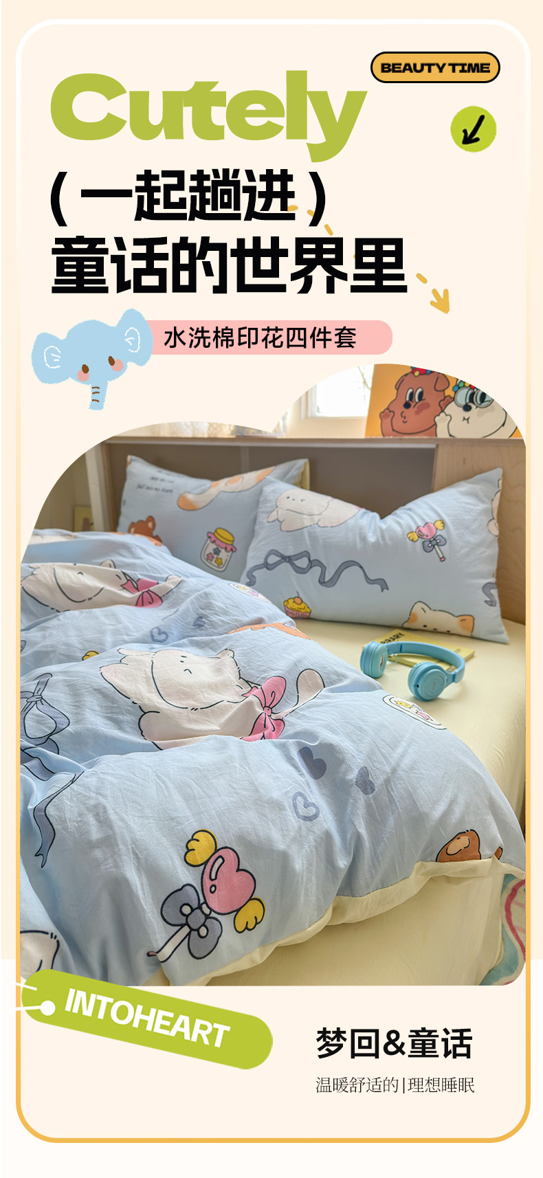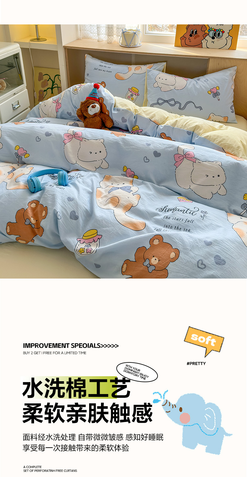 (总)冕悠家纺 2026新款超柔软105克卡通水洗棉四件套 提供买家秀,冰淇凌奶黄,粉猫奶蓝,狗狗奶黄,狗狗奶紫,留香,猫猫奶蓝,猫猫奶紫,奶酪派派对,兔兔奶黄,兔兔奶紫,星月小狗