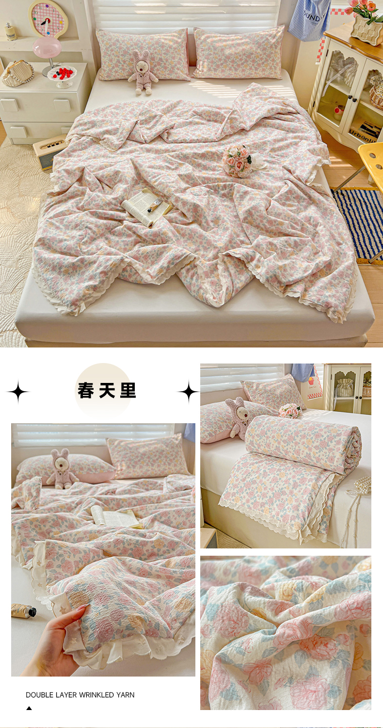 商品名称:一比一家纺 2025新款云感皱皱双层纱全棉纯棉花边单夏被夏凉被空调被系列 春天里