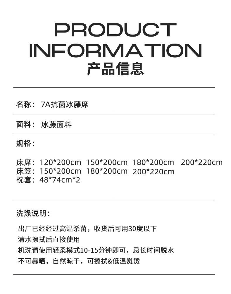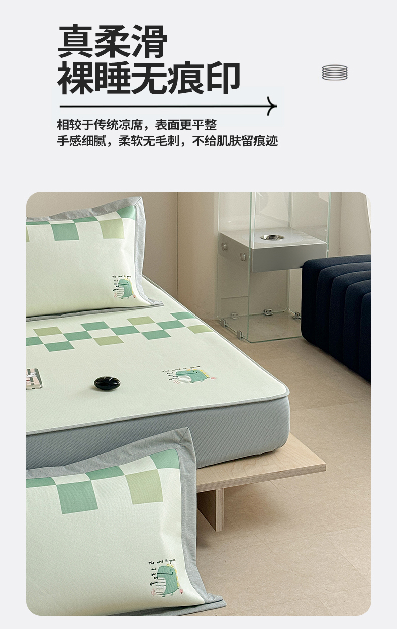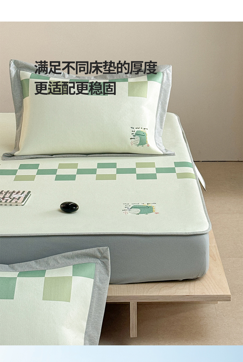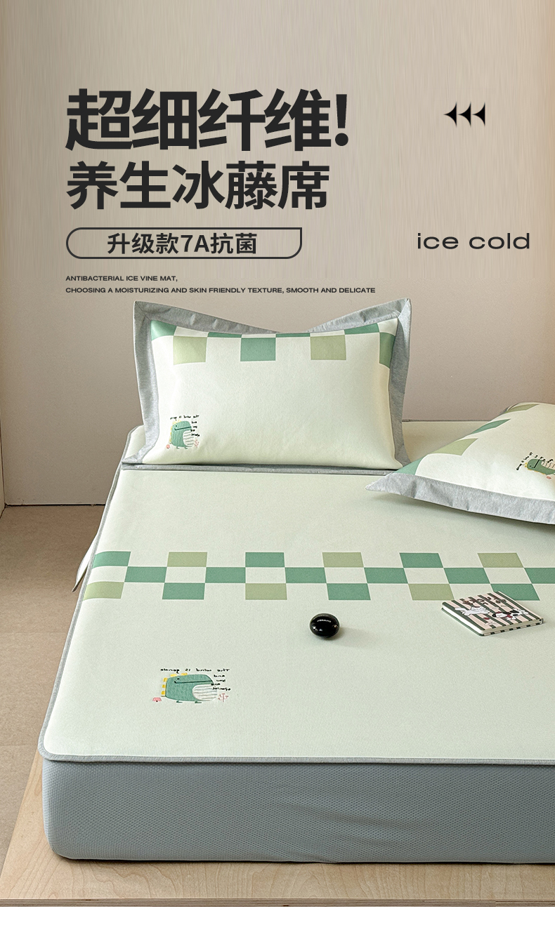 商品名称:Sweet dreams甜梦 2025新款母婴级7A抗菌养生冰藤席席子凉席-影棚2床笠款 格子恐龙