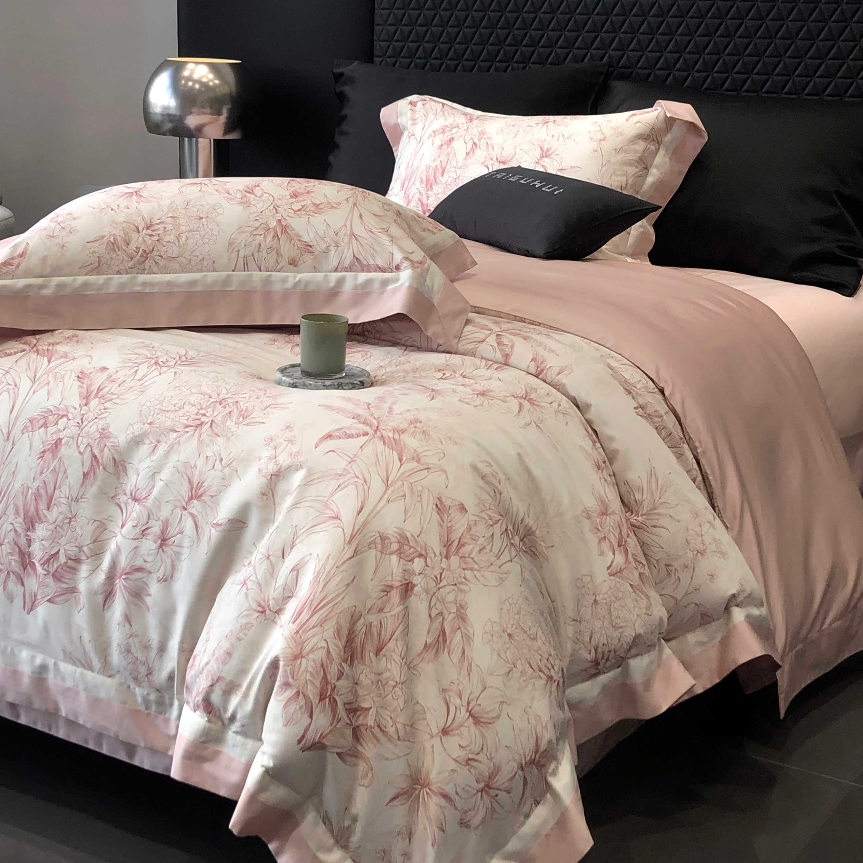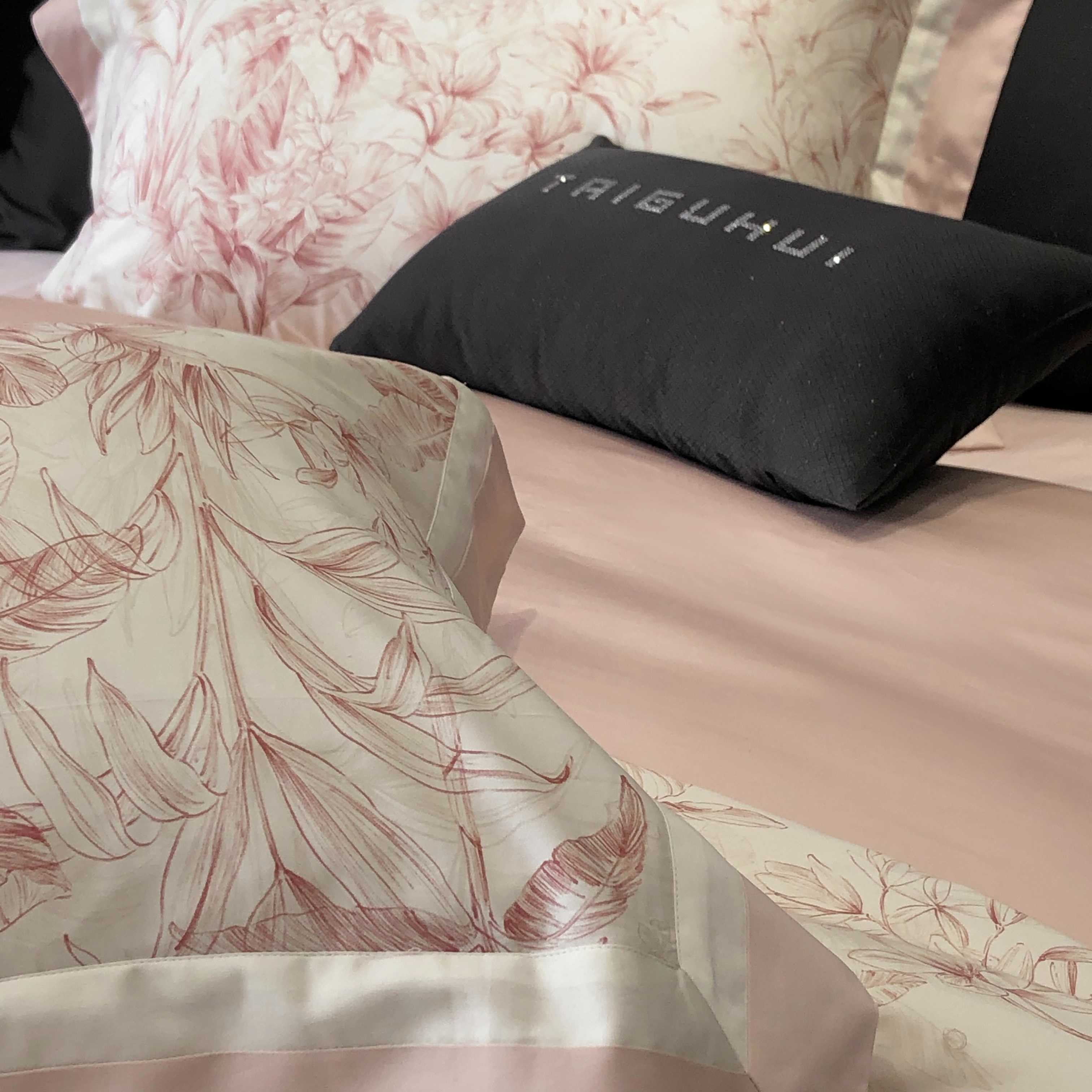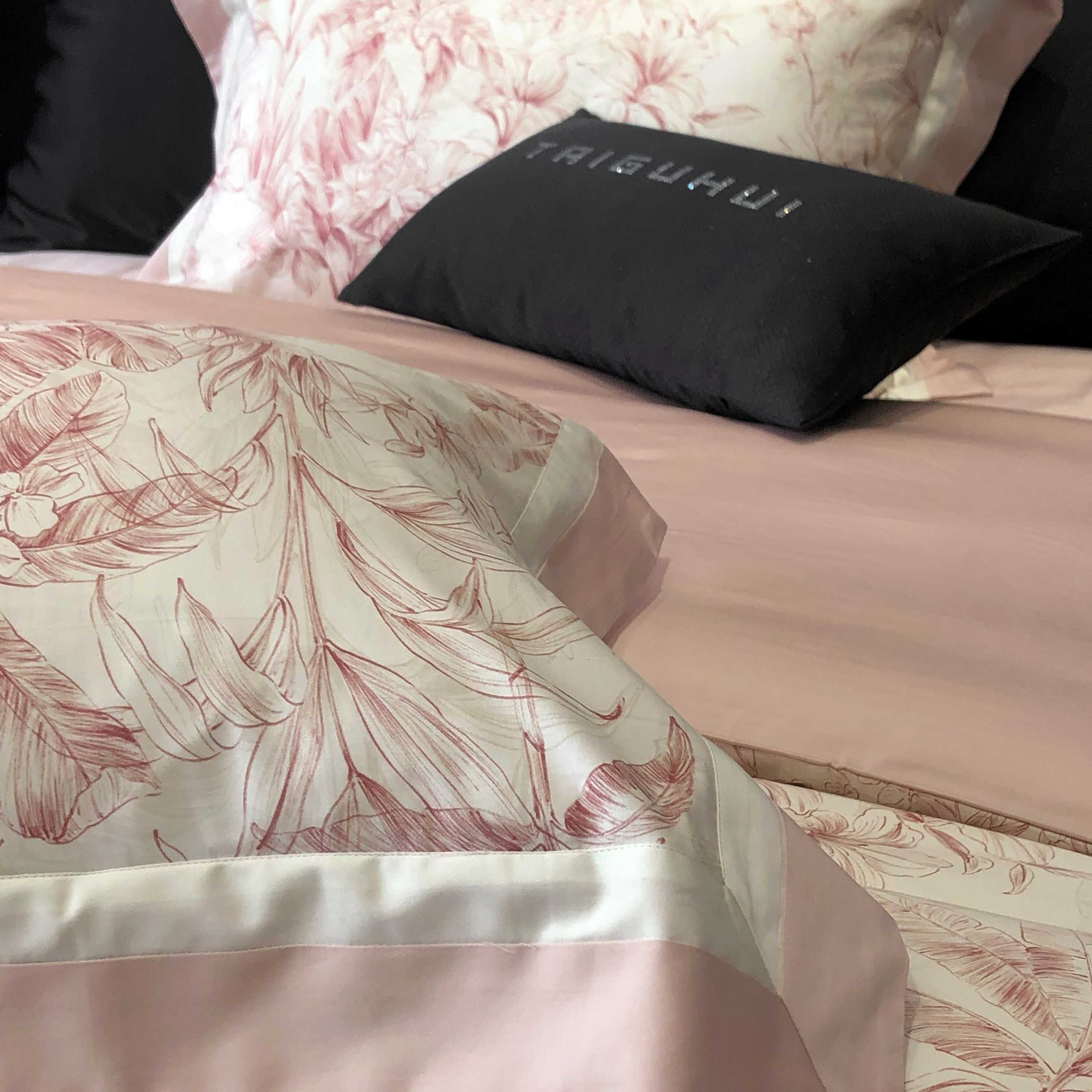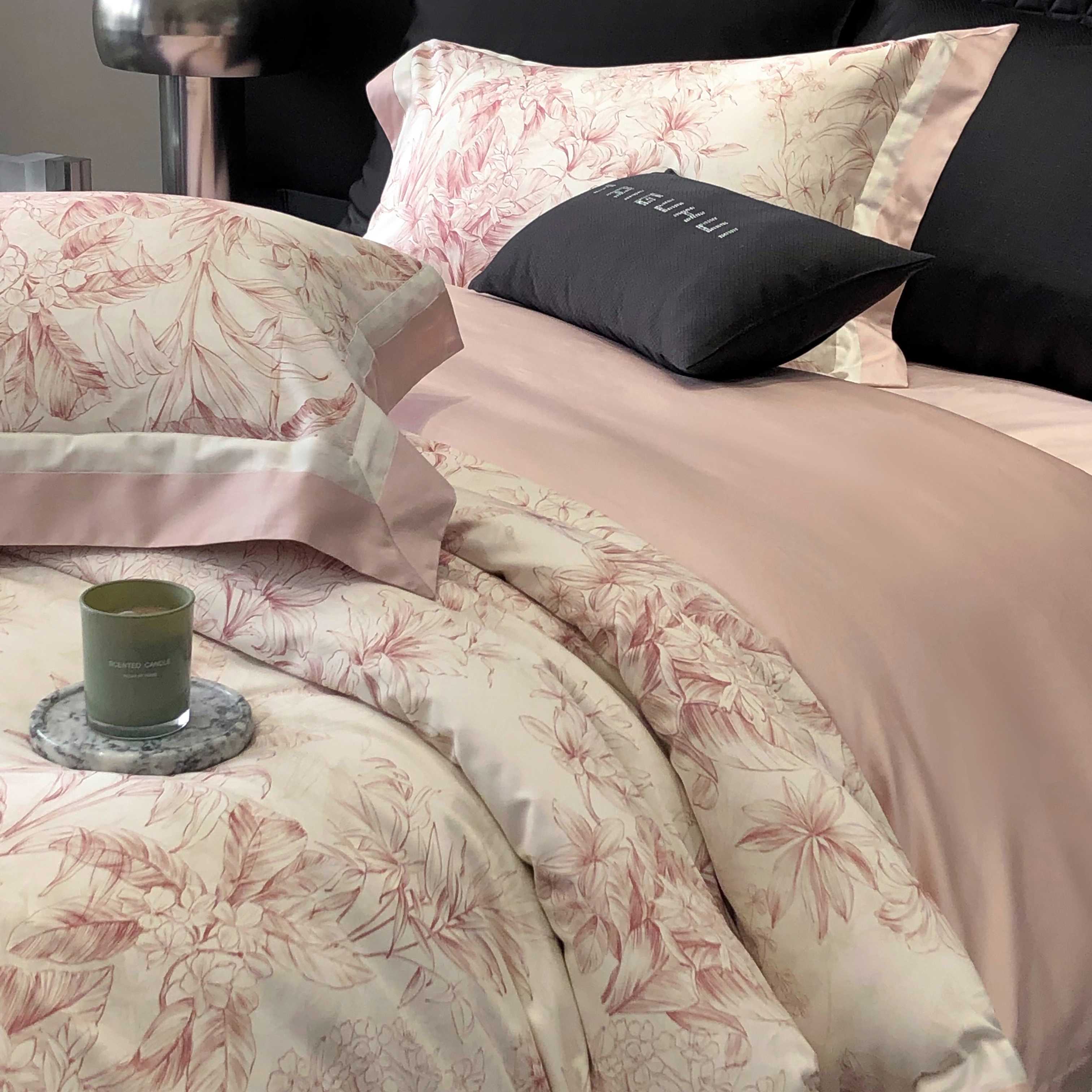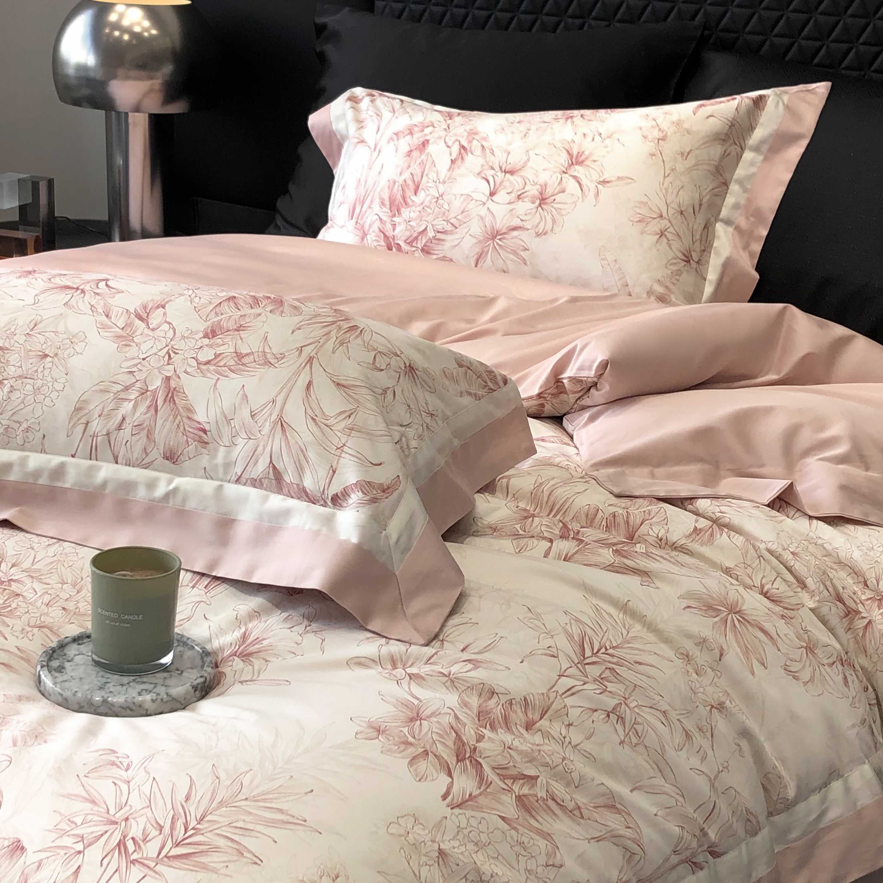 商品名称:2025新款高支高密长绒棉专版数码印花双拼系列四件套-卡梅伦【券后不低于378】 卡梅伦-粉