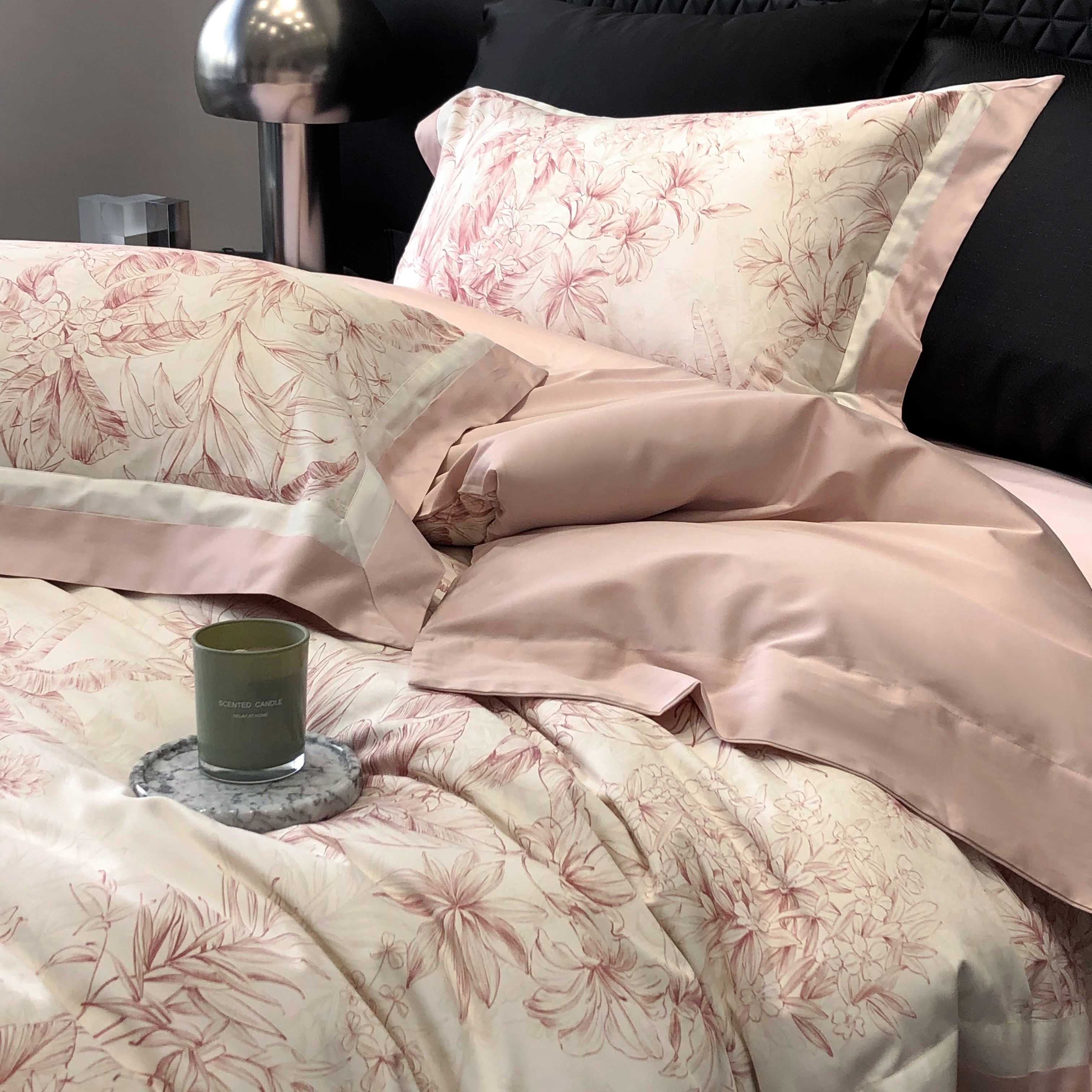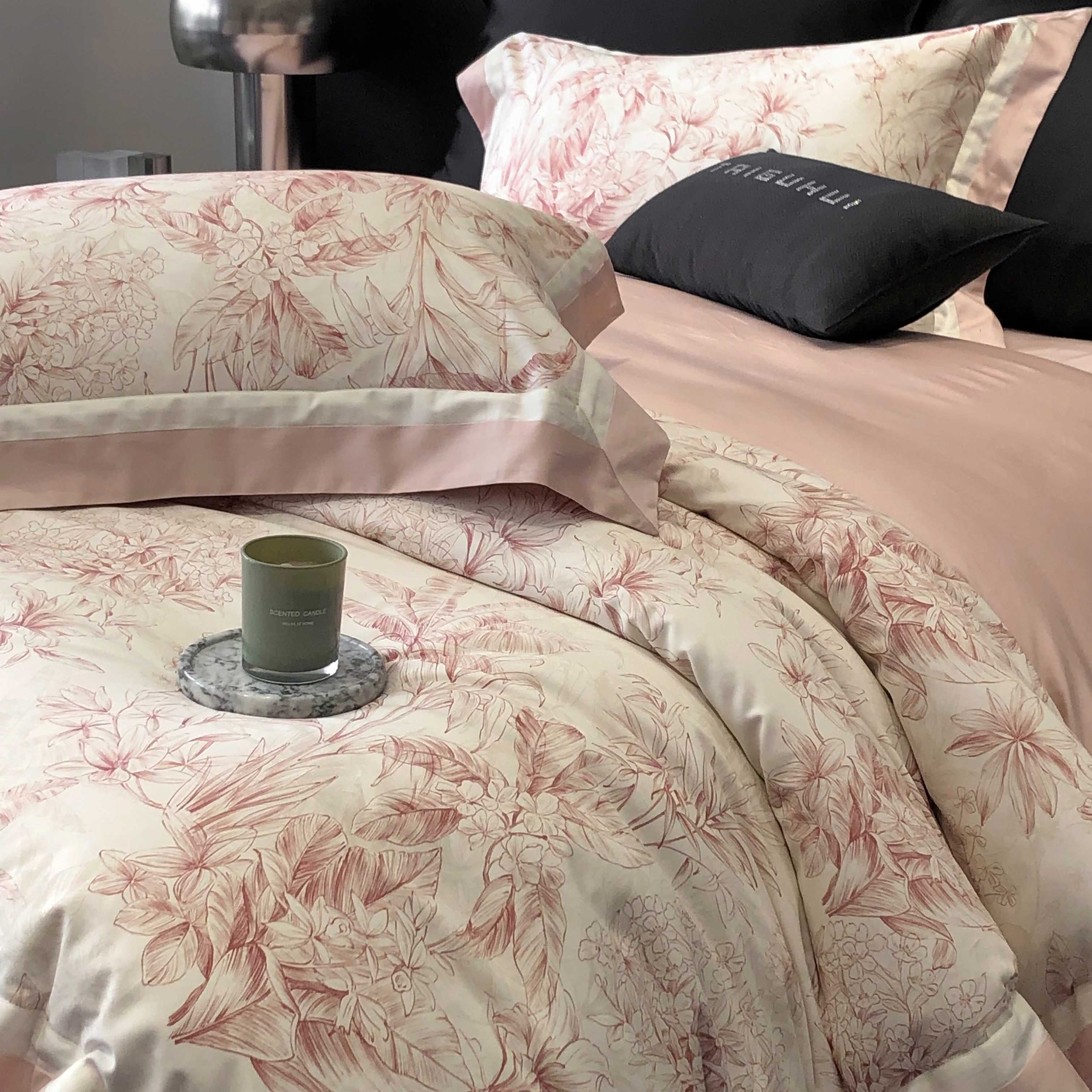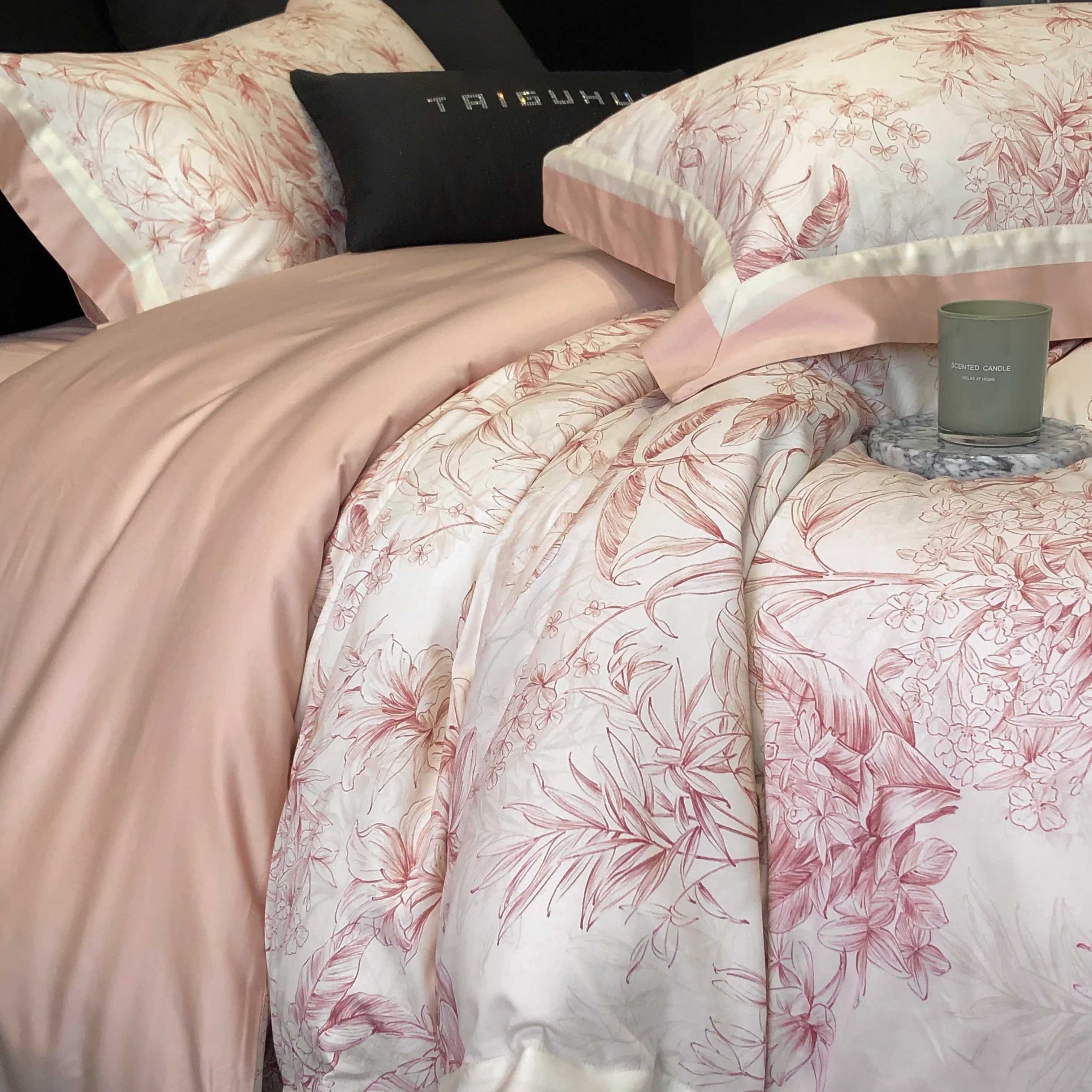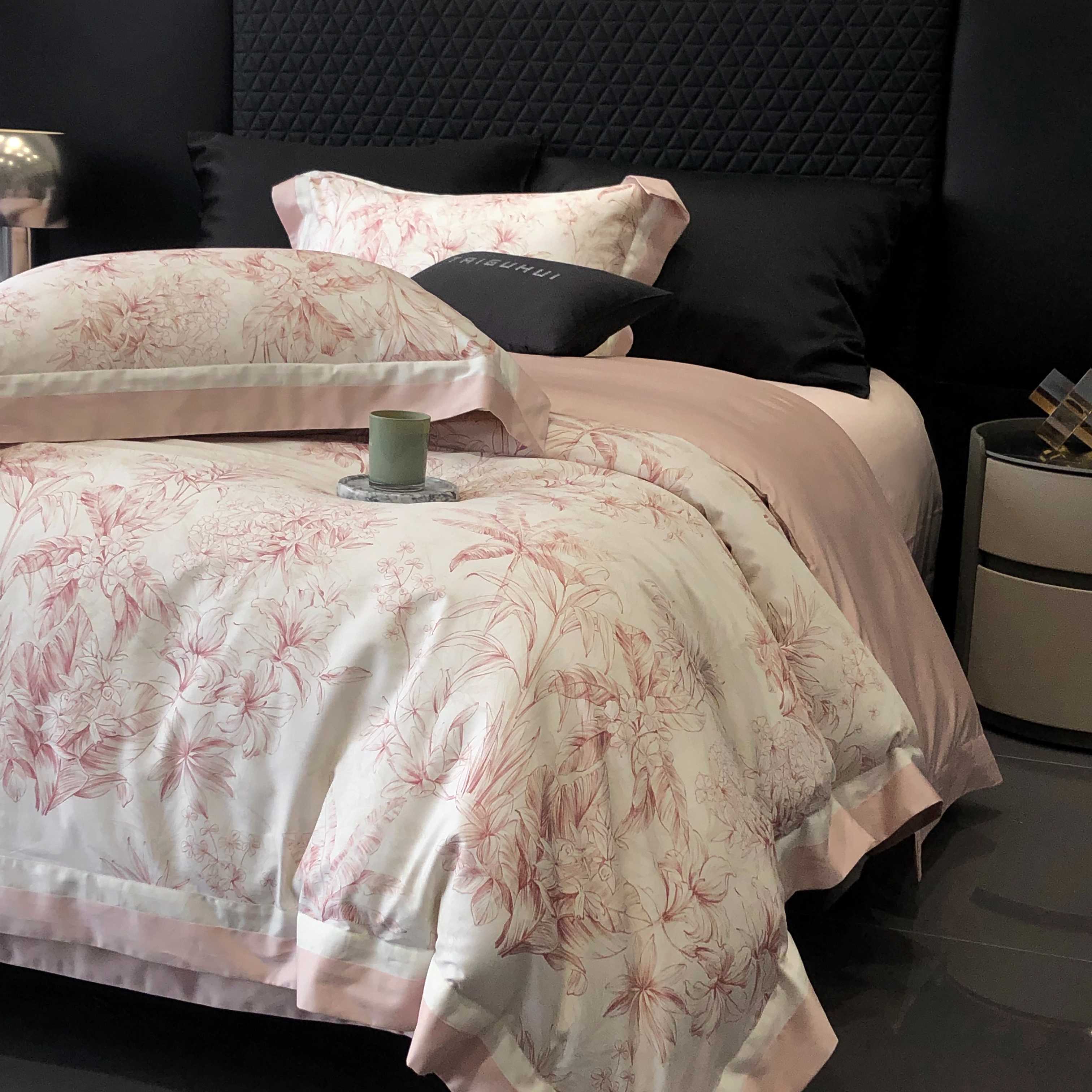 商品名称:2025新款高支高密长绒棉专版数码印花双拼系列四件套-卡梅伦【券后不低于378】 卡梅伦-粉