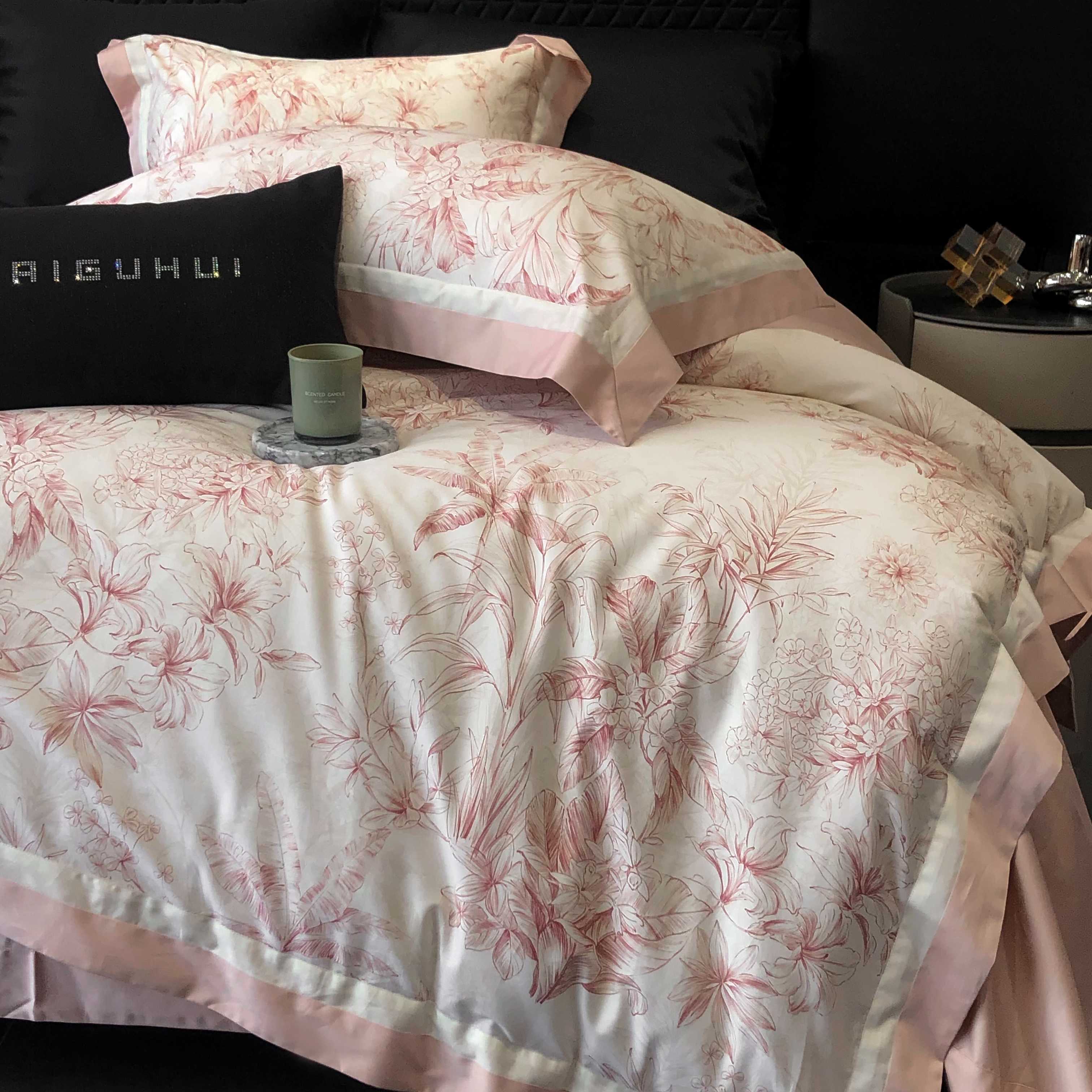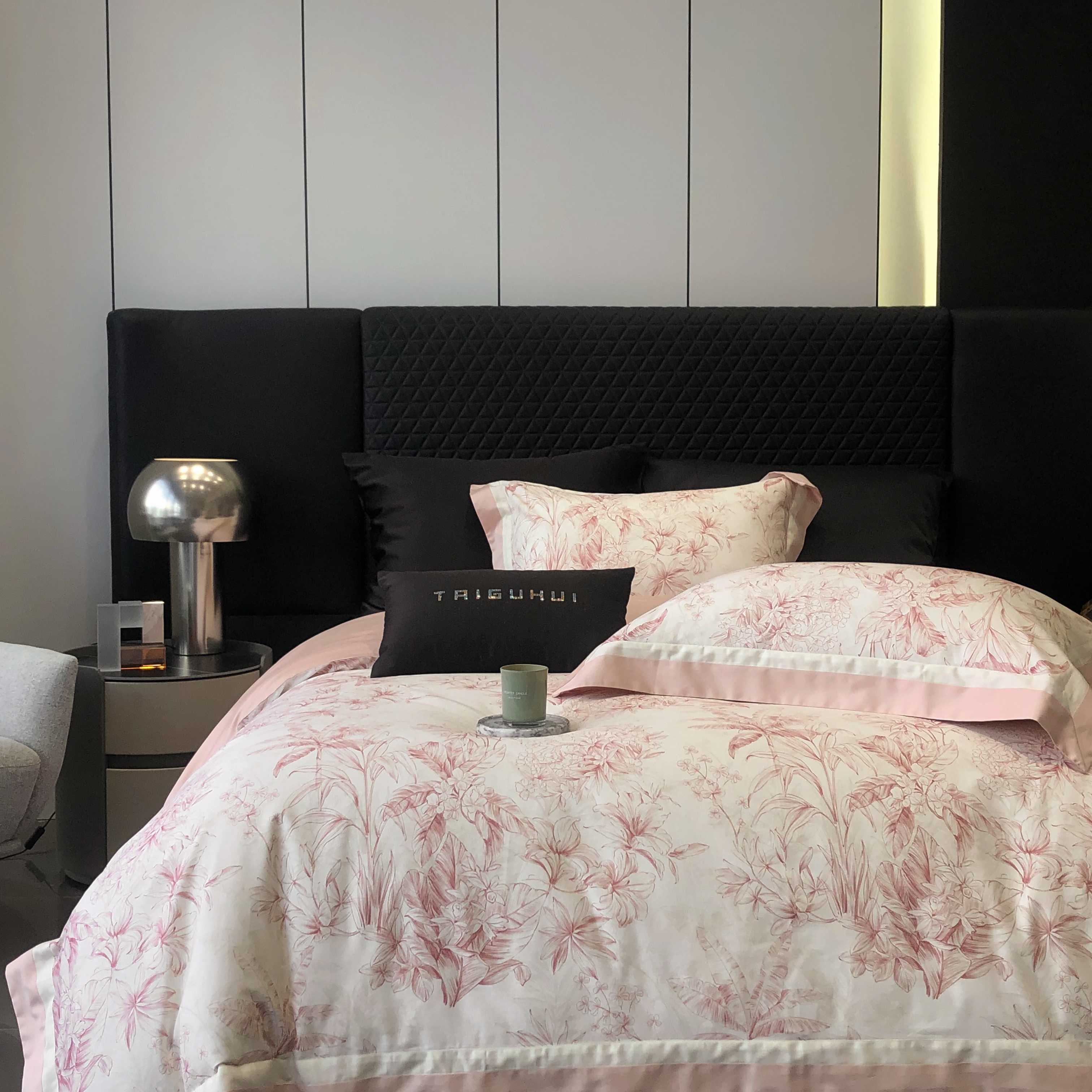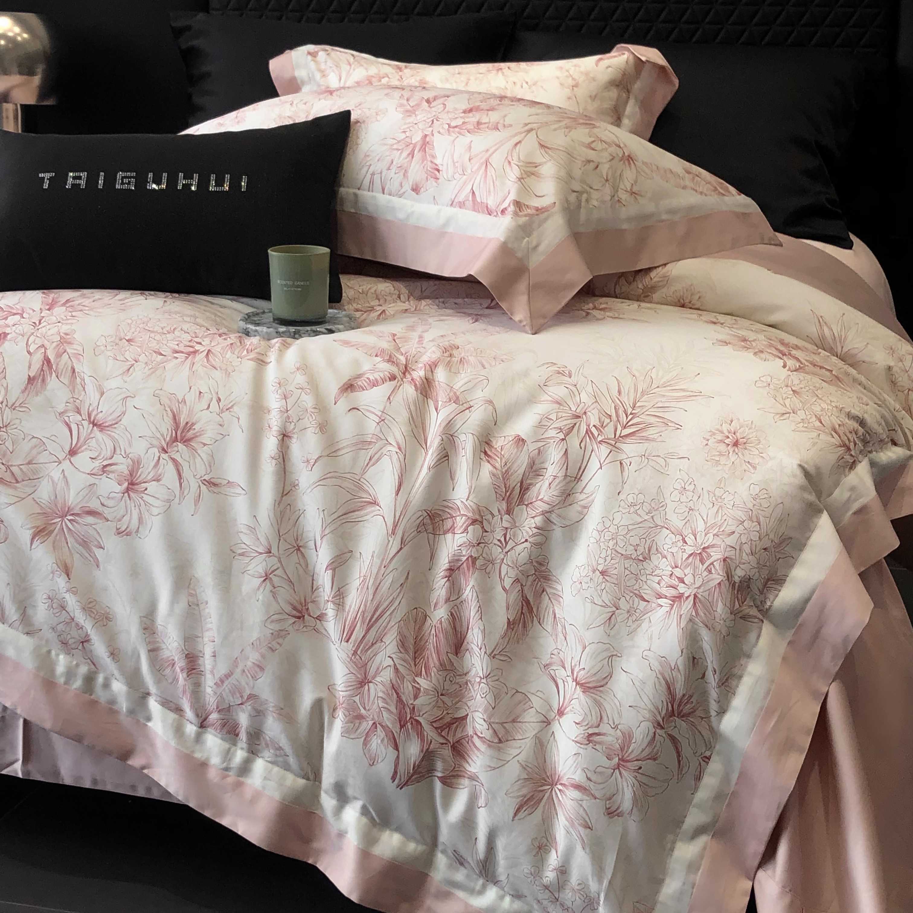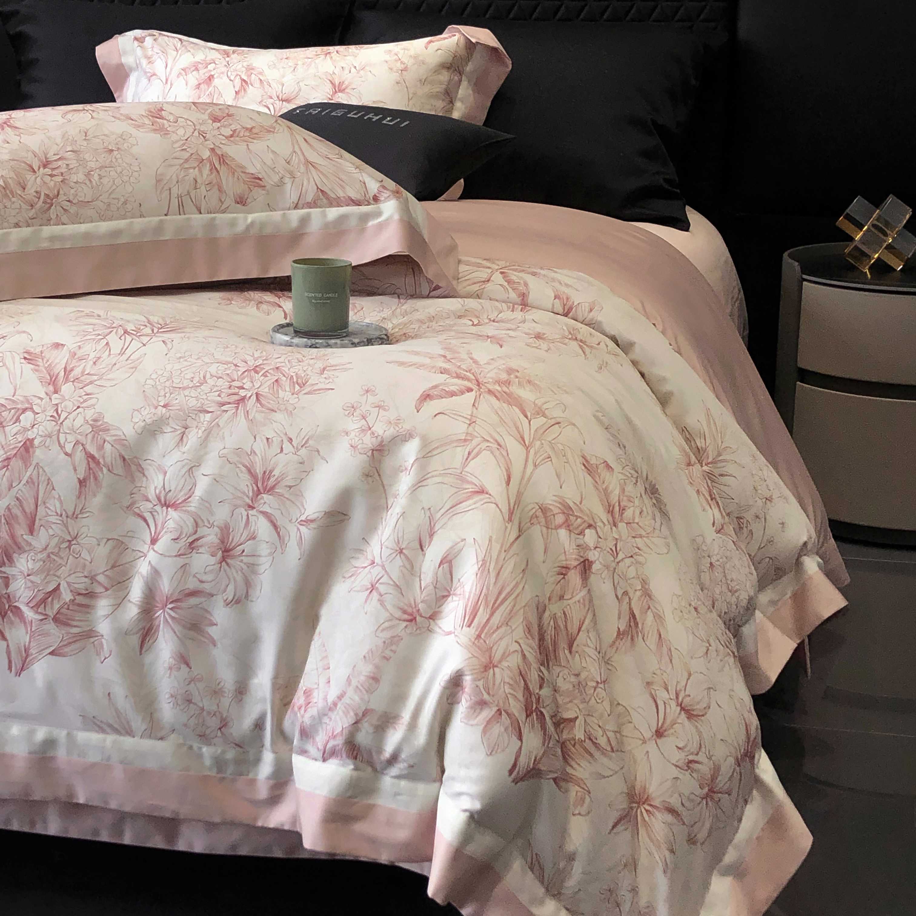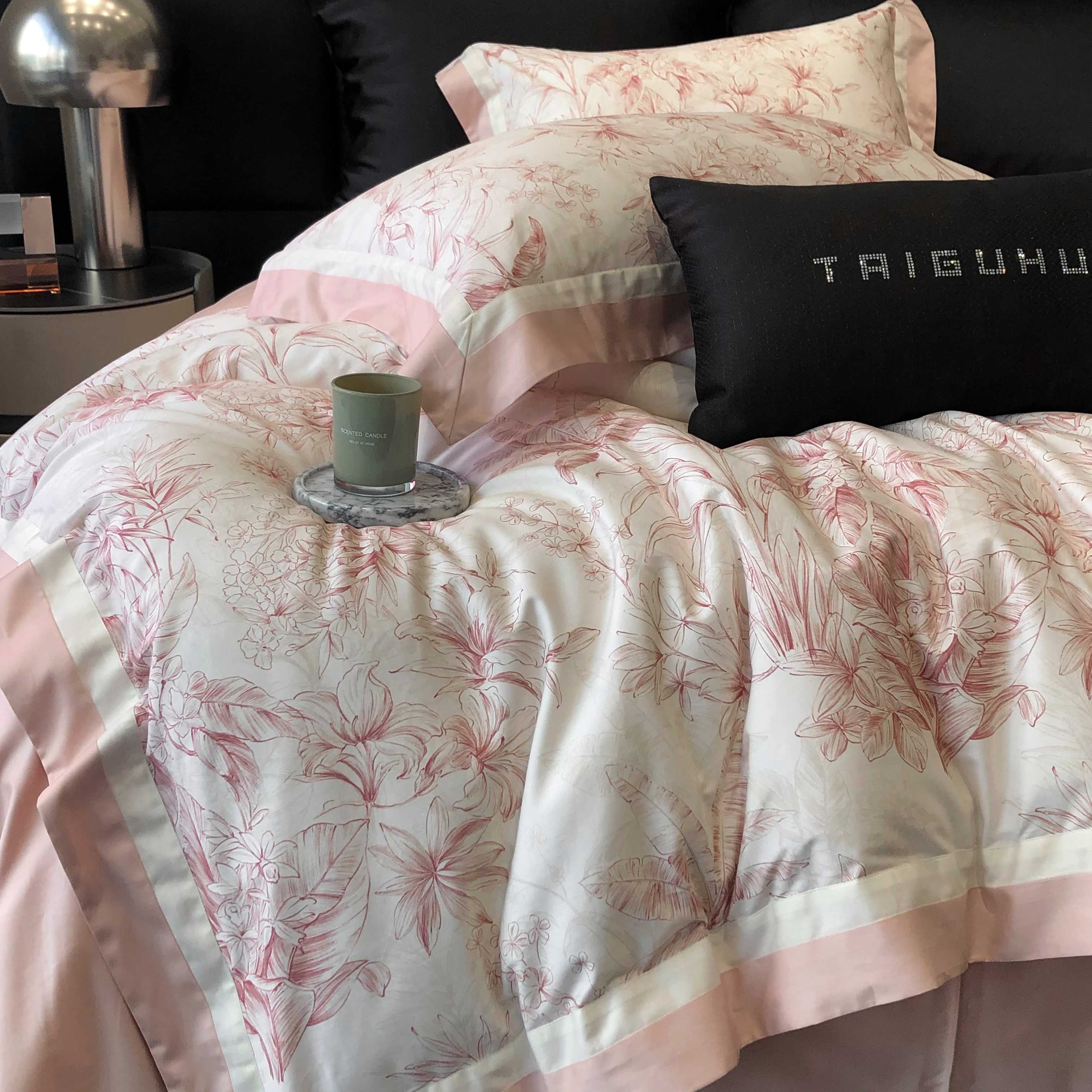 商品名称:2025新款高支高密长绒棉专版数码印花双拼系列四件套-卡梅伦【券后不低于378】 卡梅伦-粉