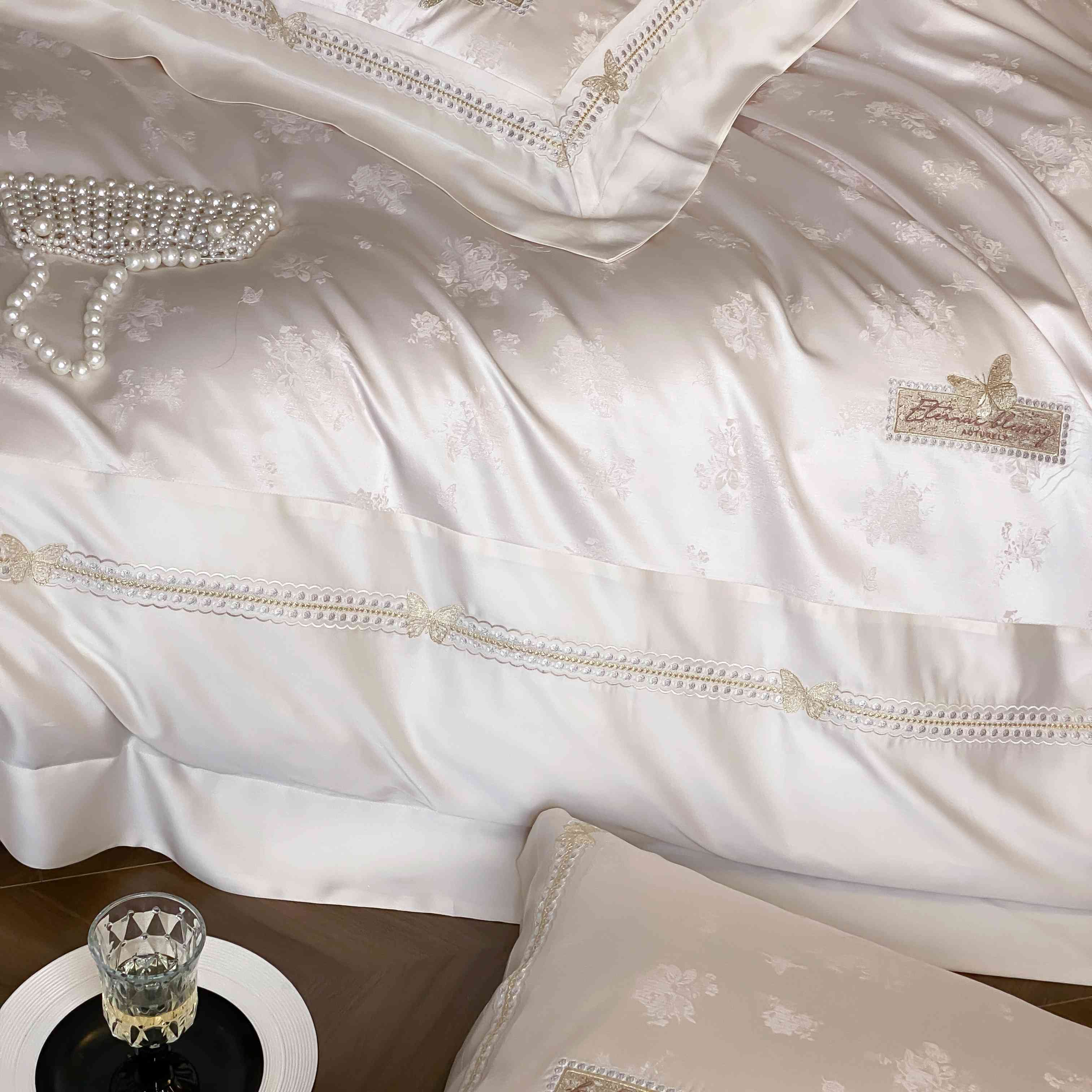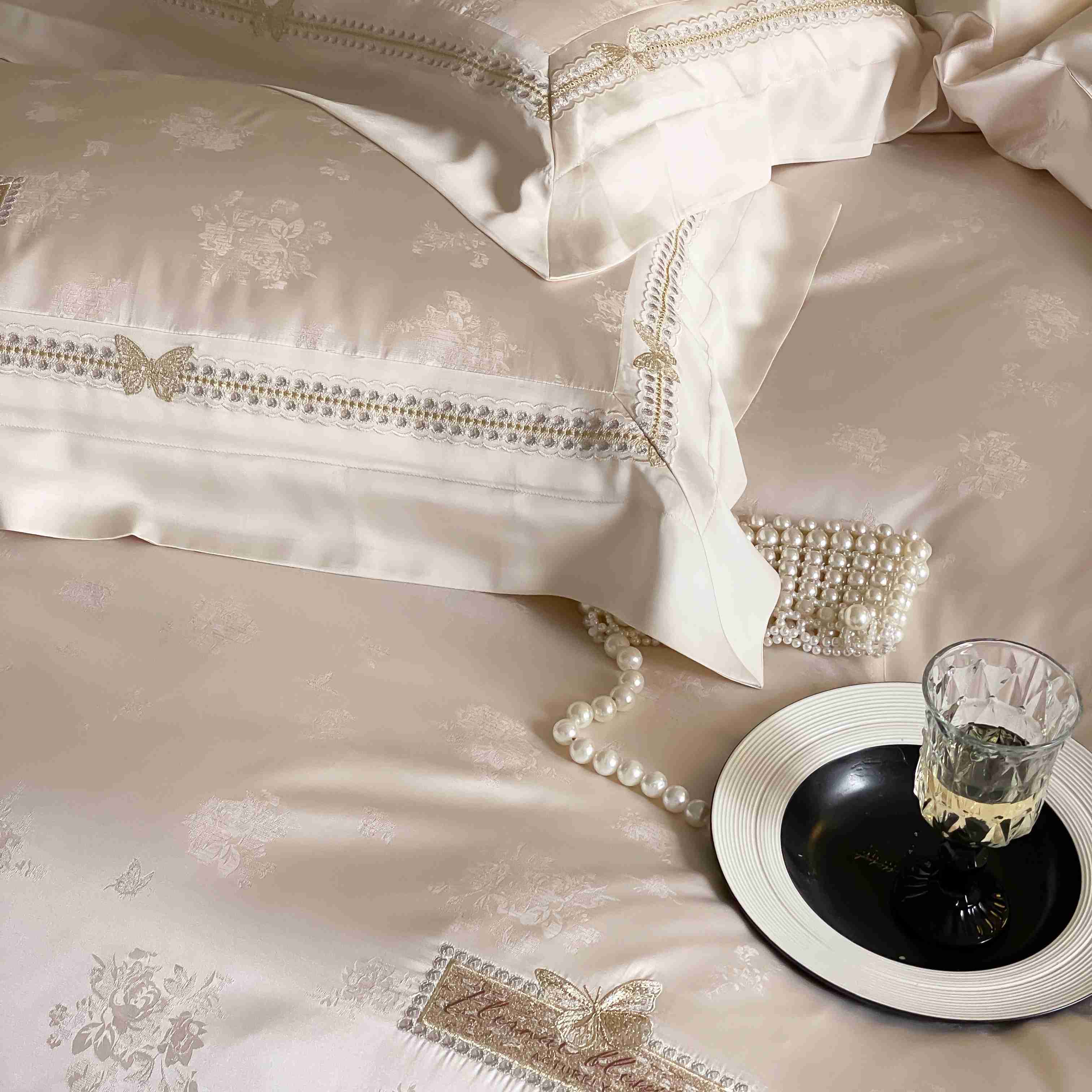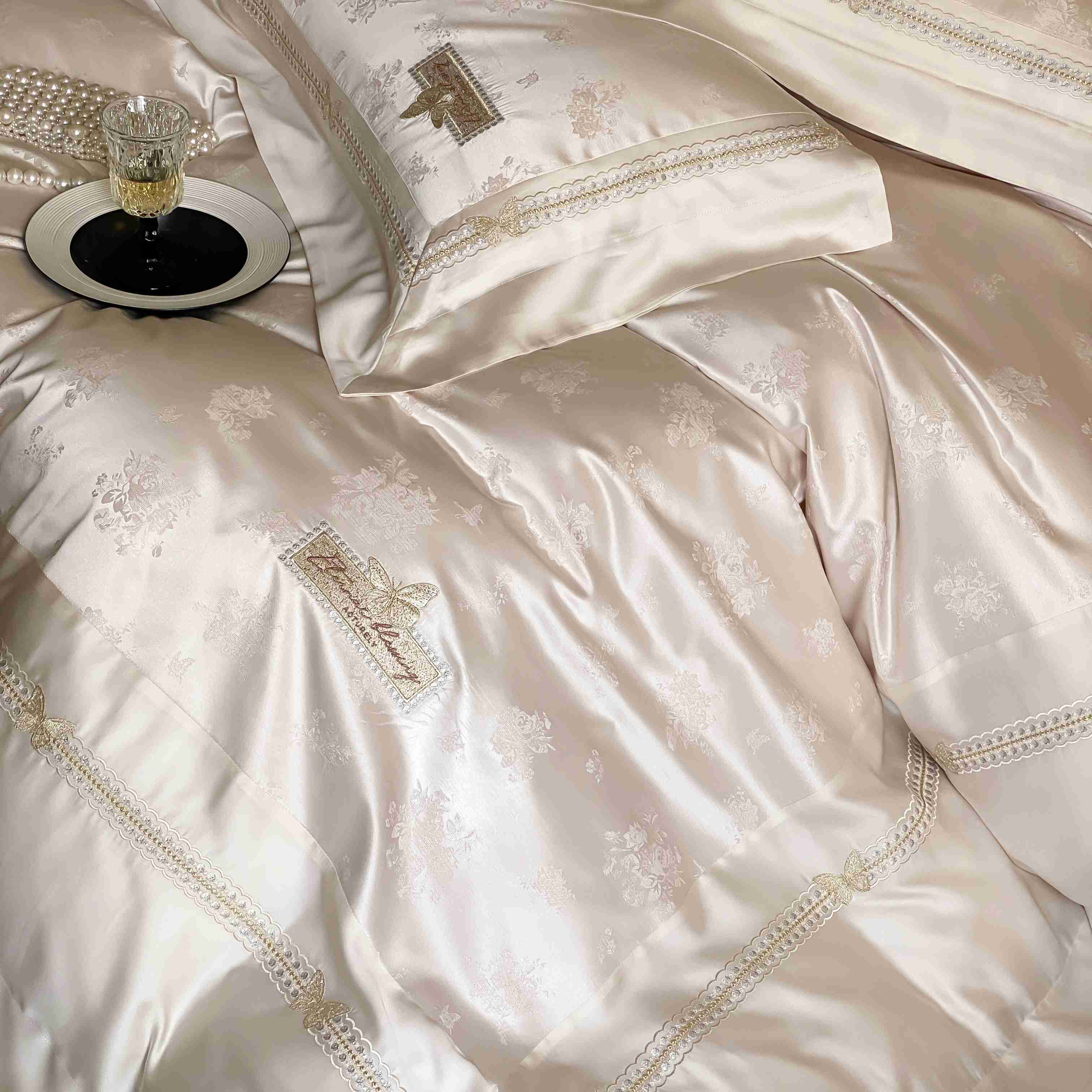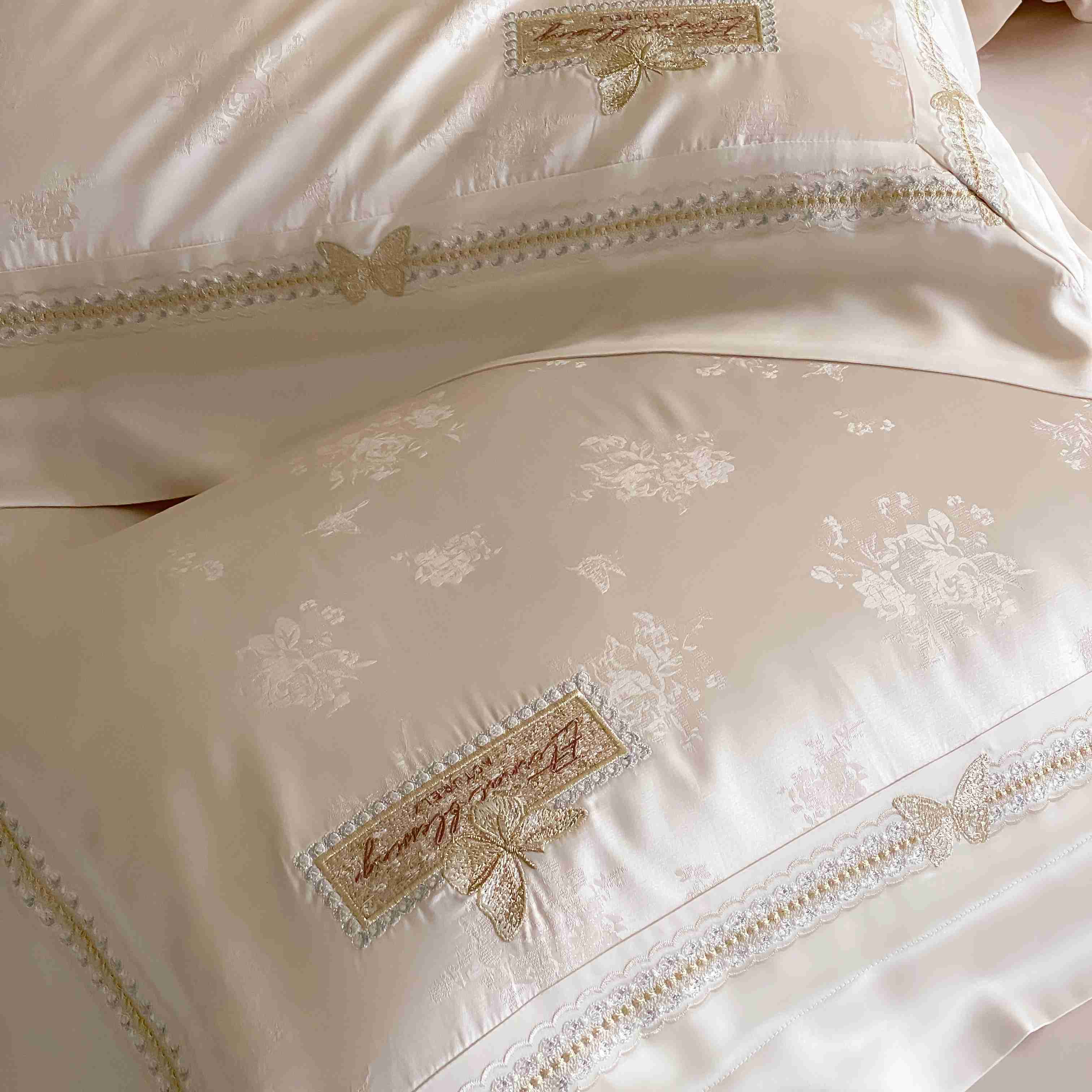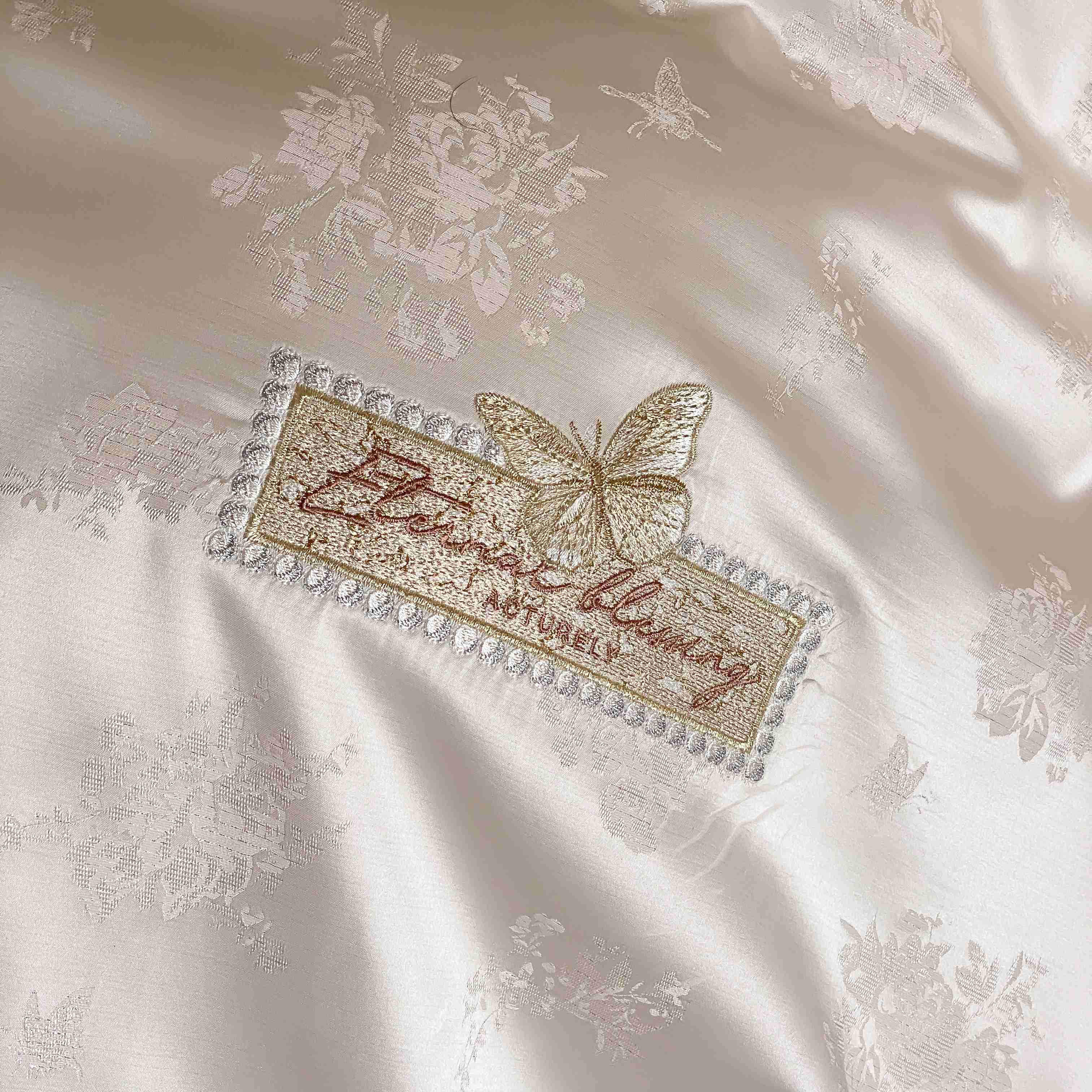 商品名称:太古汇家居 2025新款兰精天丝高精密提花-绣花“花间蝶影”系列 花间蝶影-香槟