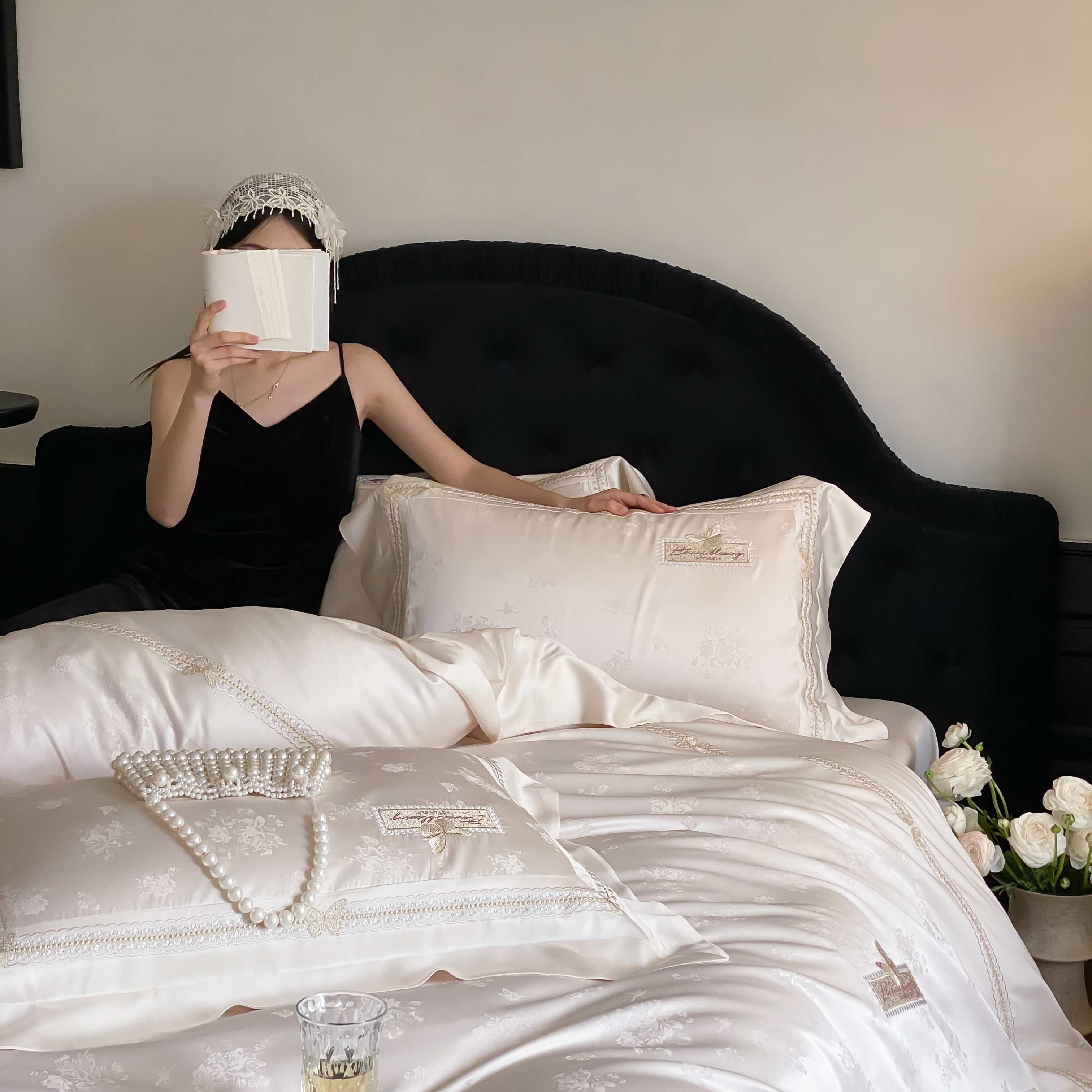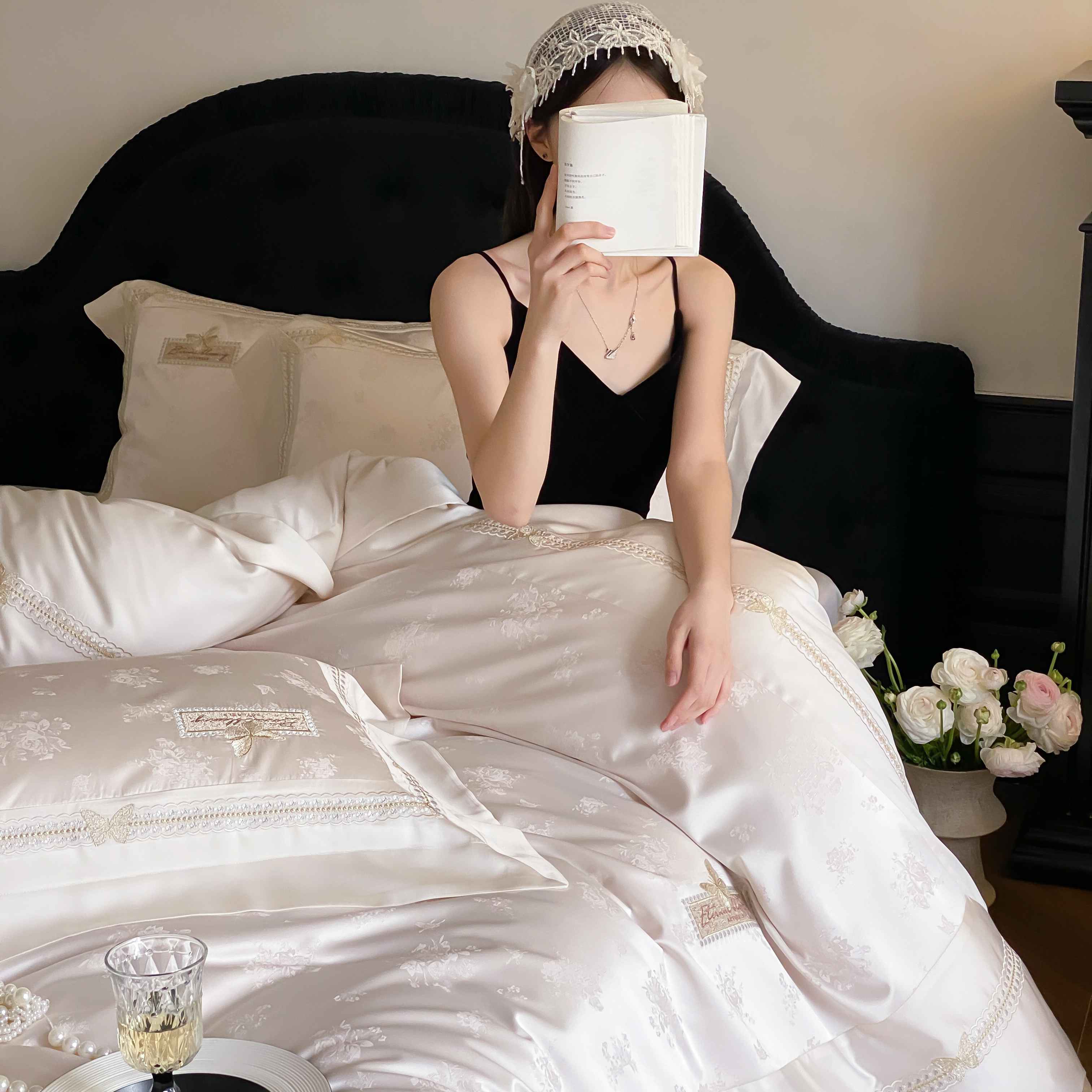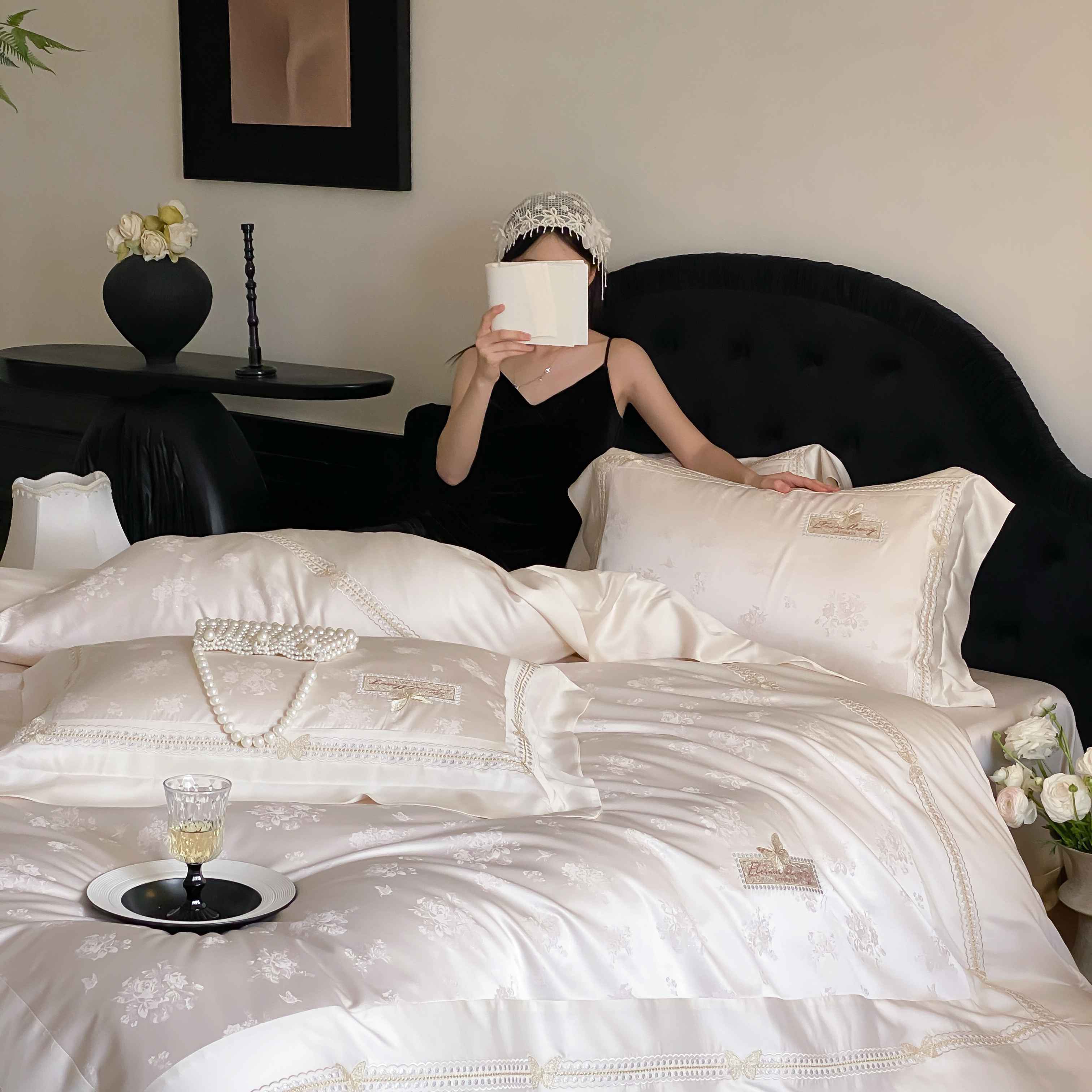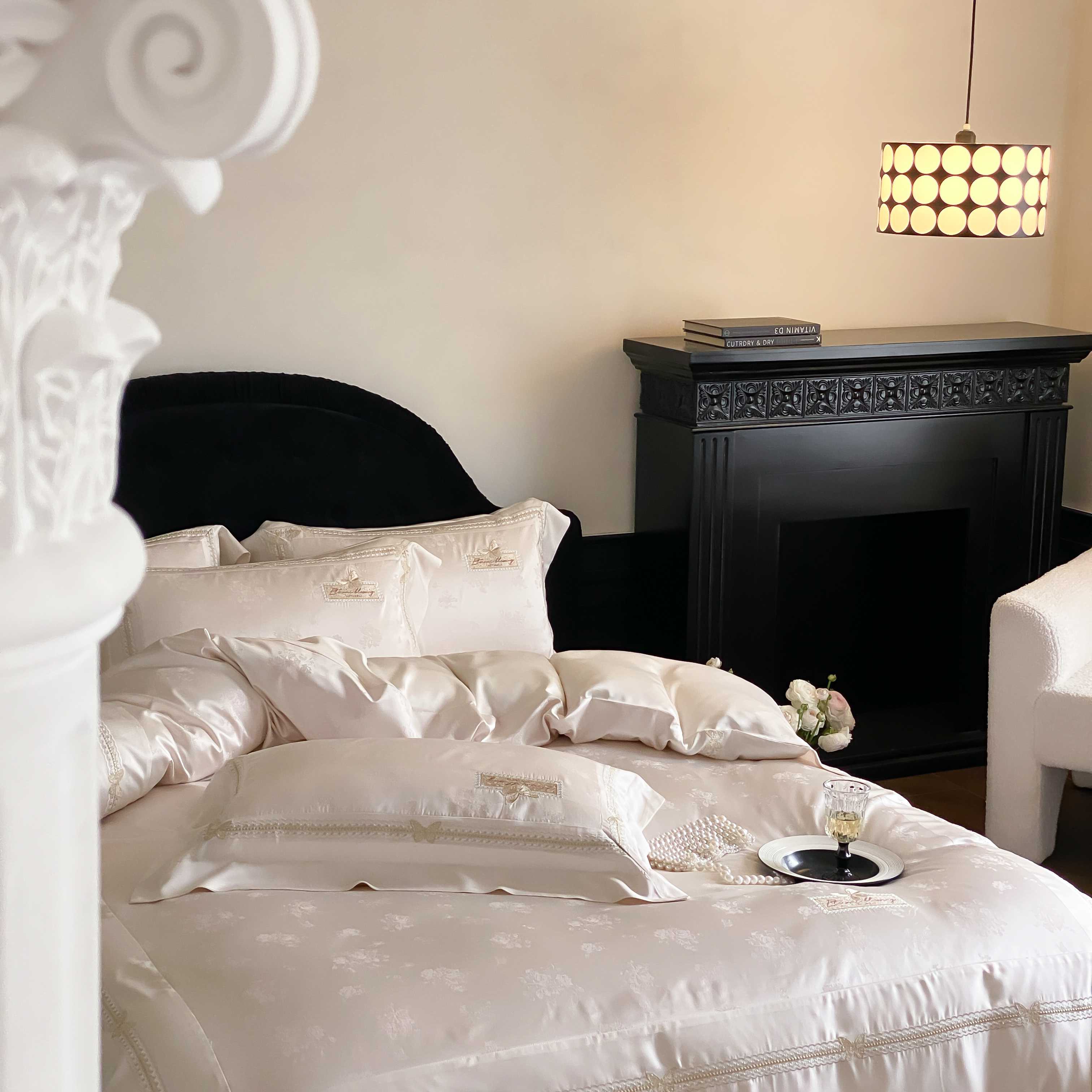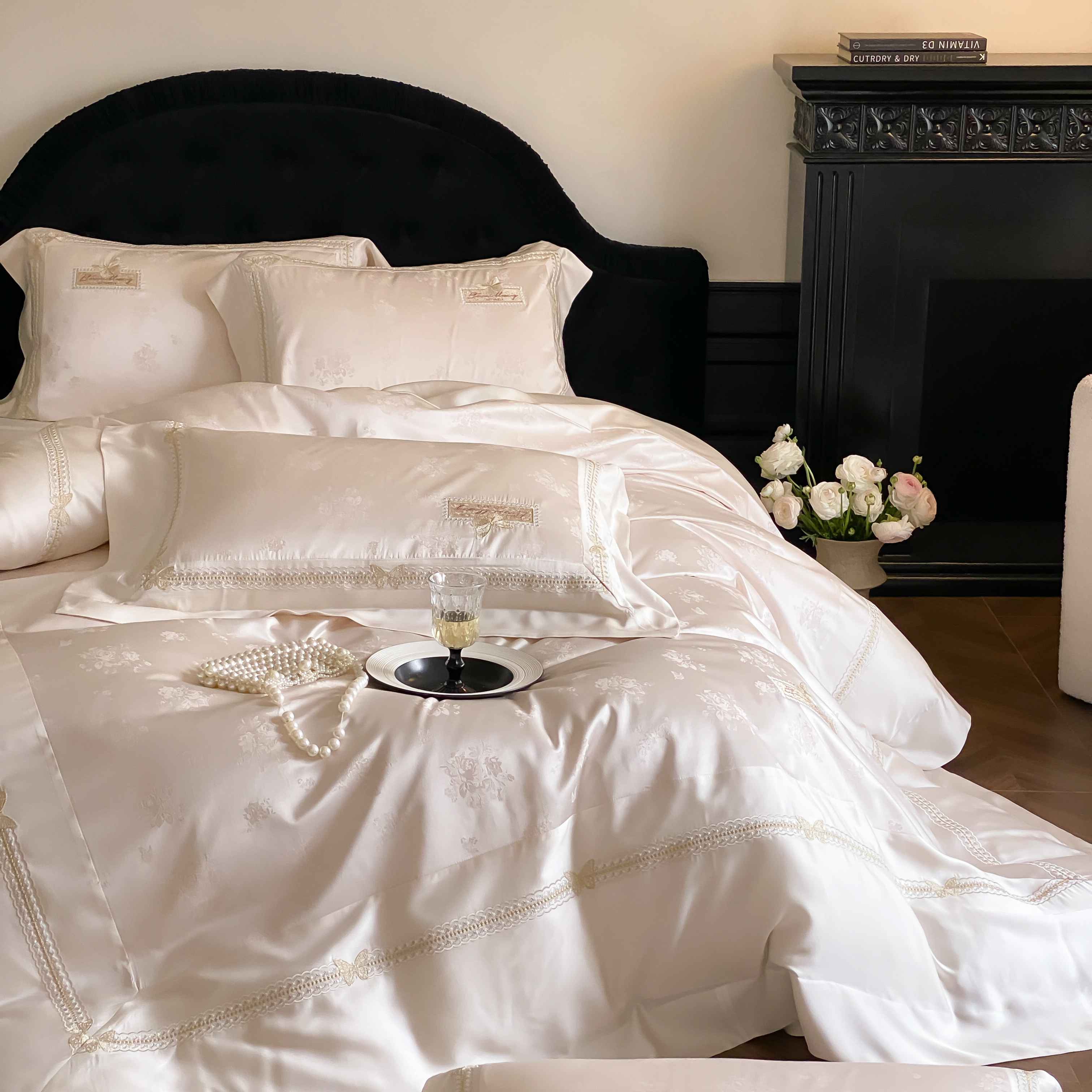 商品名称:太古汇家居 2025新款兰精天丝高精密提花-绣花“花间蝶影”系列 花间蝶影-香槟