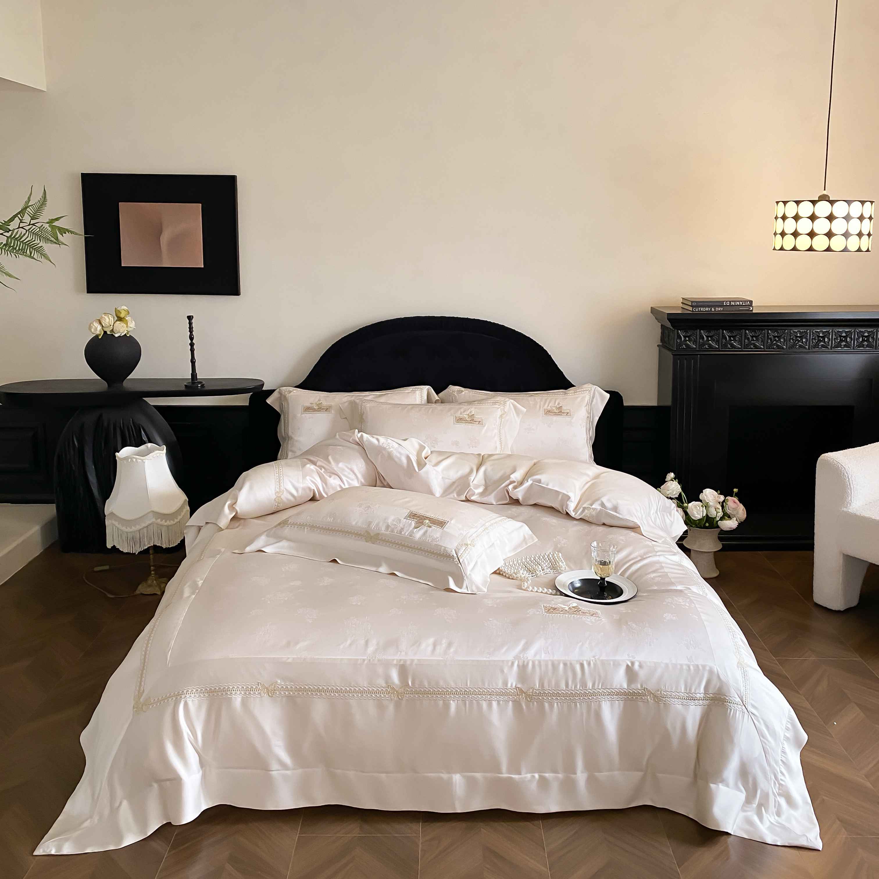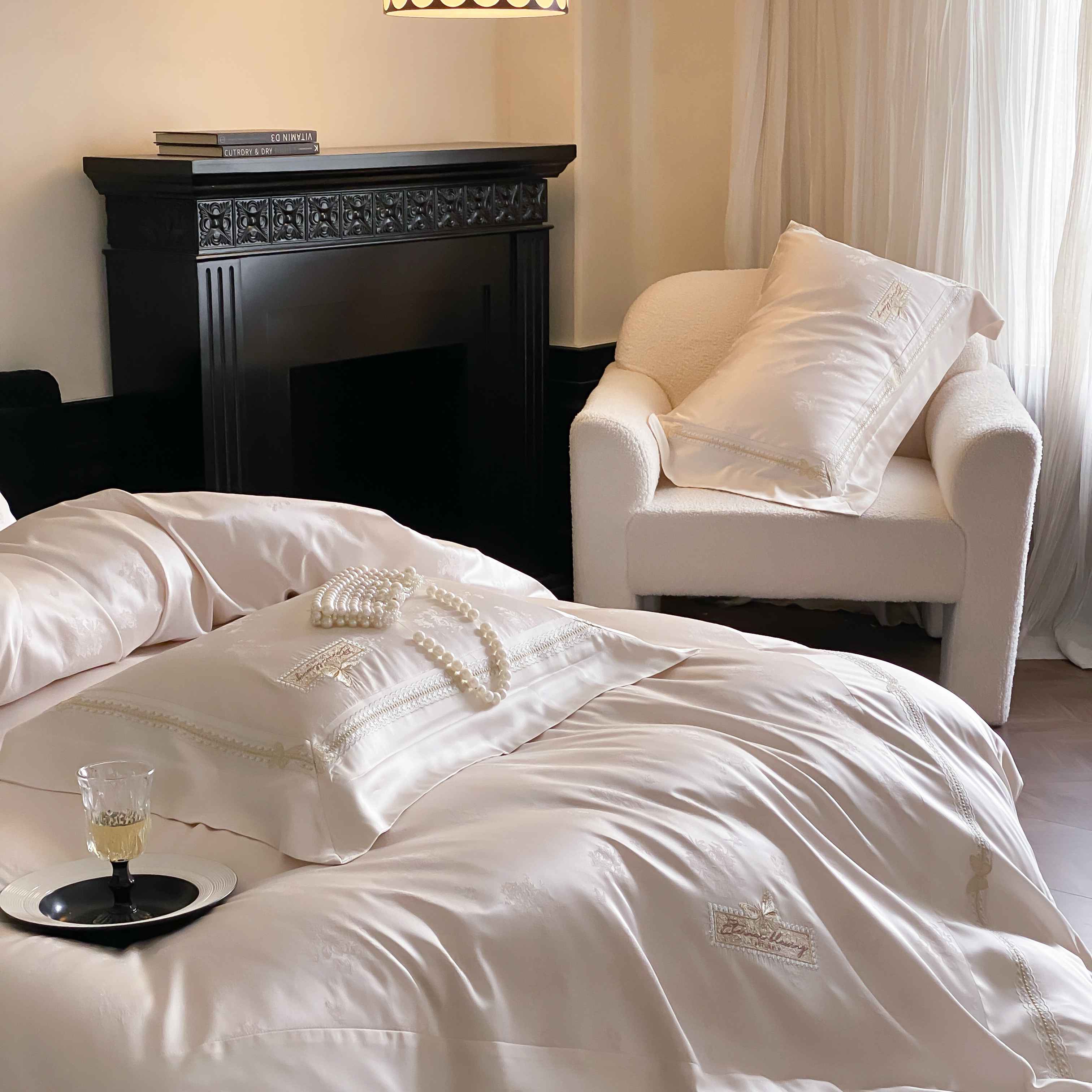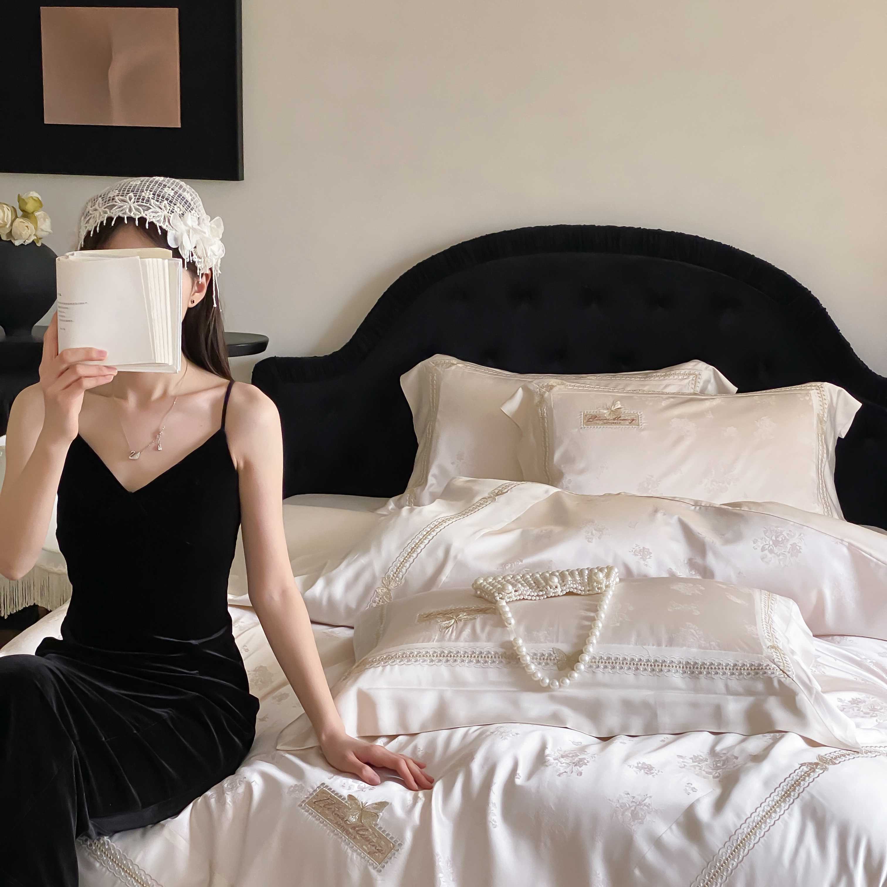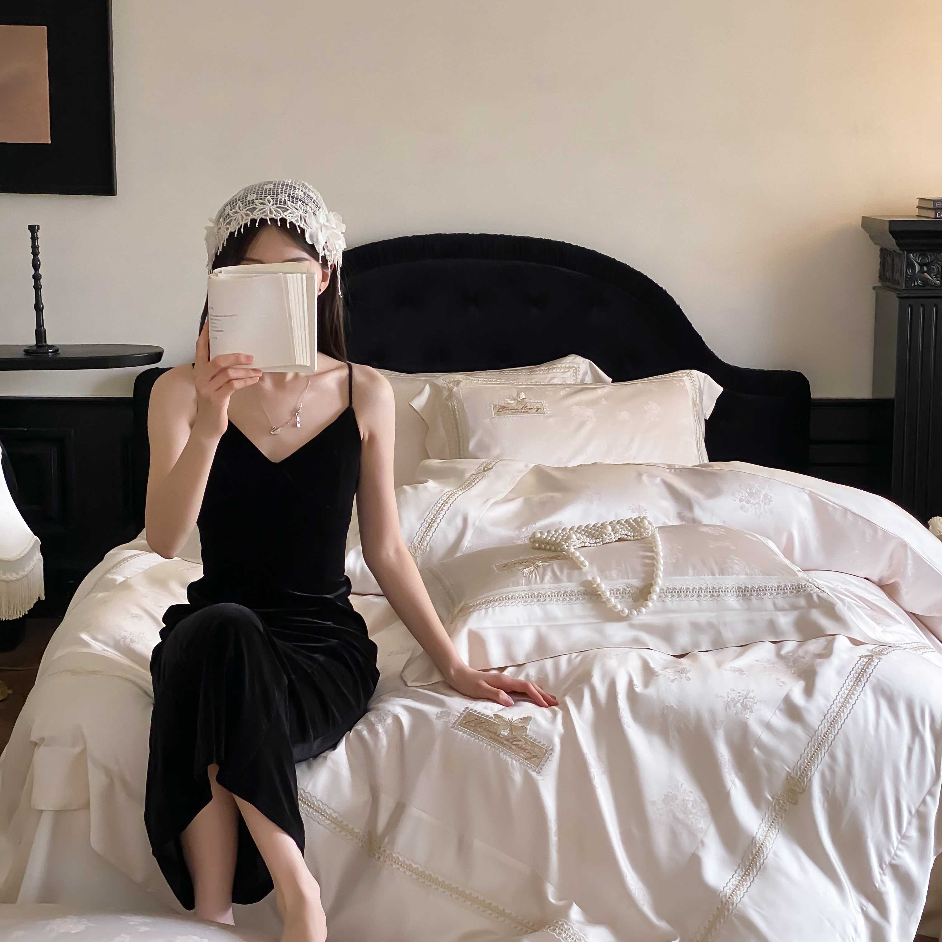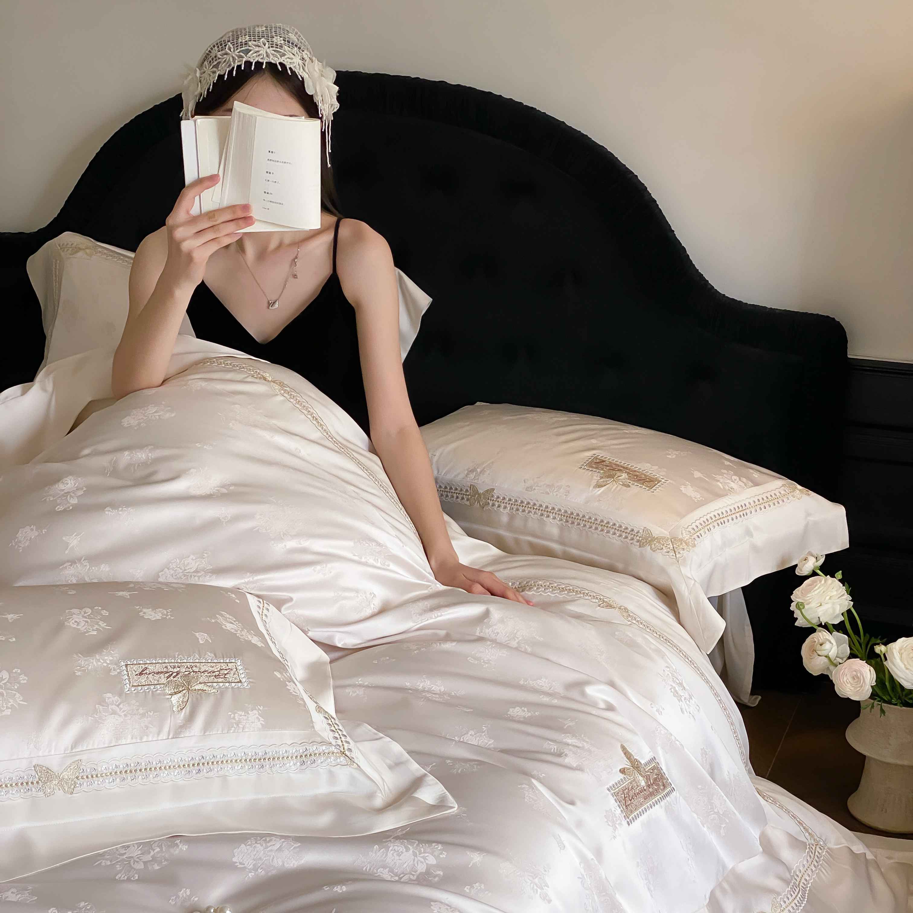 商品名称:太古汇家居 2025新款兰精天丝高精密提花-绣花“花间蝶影”系列 花间蝶影-香槟