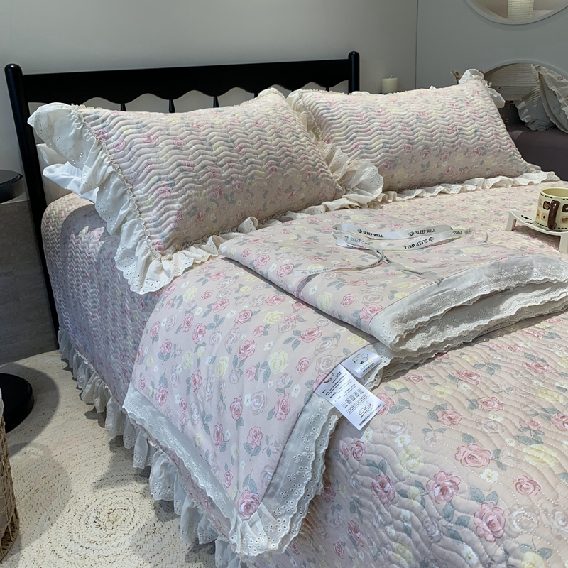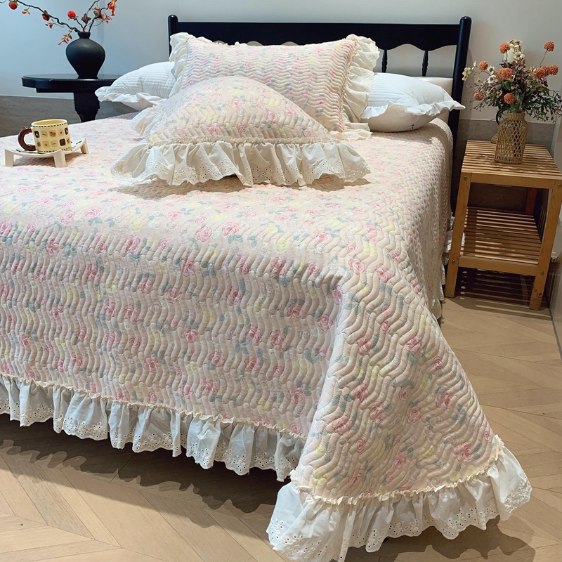 奈萝家纺 2025新款全棉蕾丝花边床盖三件套四件套纯棉花边夏被 蔷薇