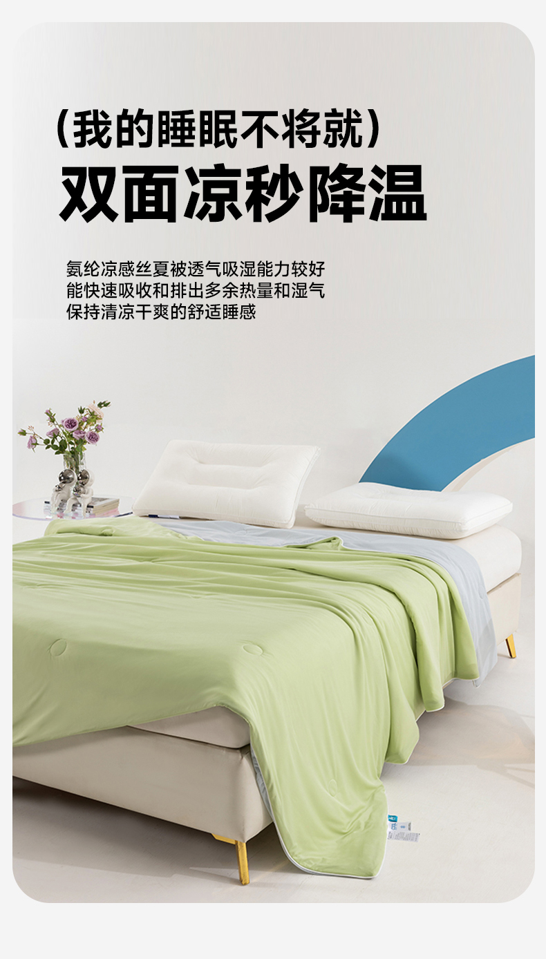 世爵2025新款氨纶纯色凉感丝夏被被子被芯变凉空调被 糖果绿拼灰