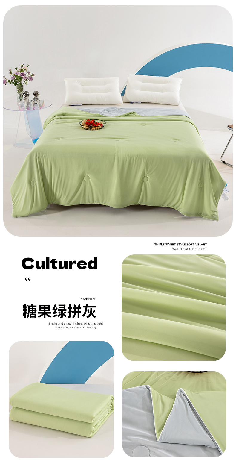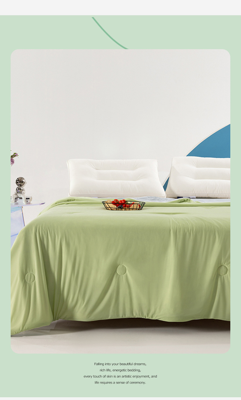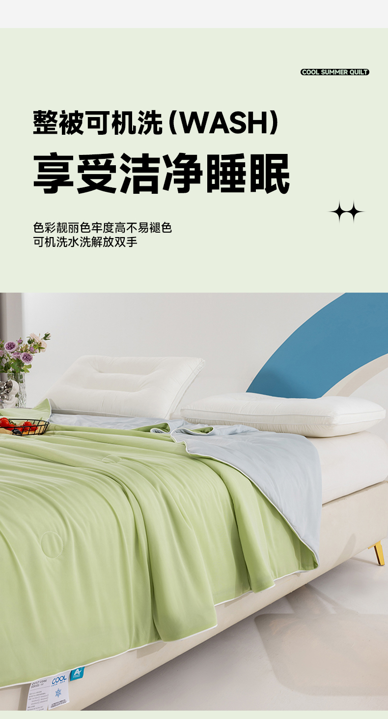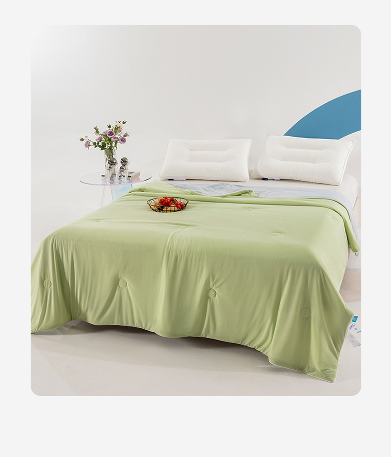 商品名称:世爵2025新款氨纶纯色凉感丝夏被被子被芯变凉空调被 糖果绿拼灰