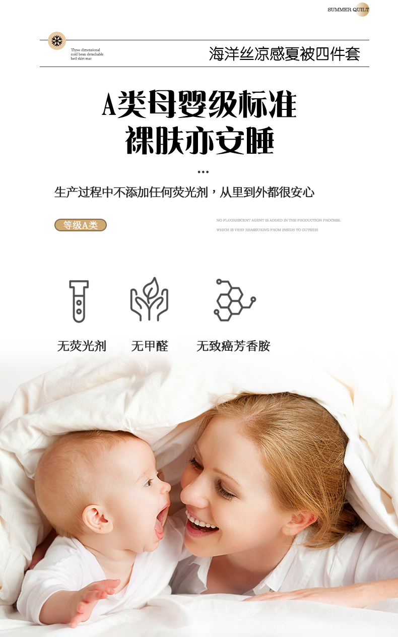(总)好儿喜家纺 2024新款A类海洋丝奥德利夏被凉席四件套,橄榄绿,奶白,浅粉,浅蓝,浅绿