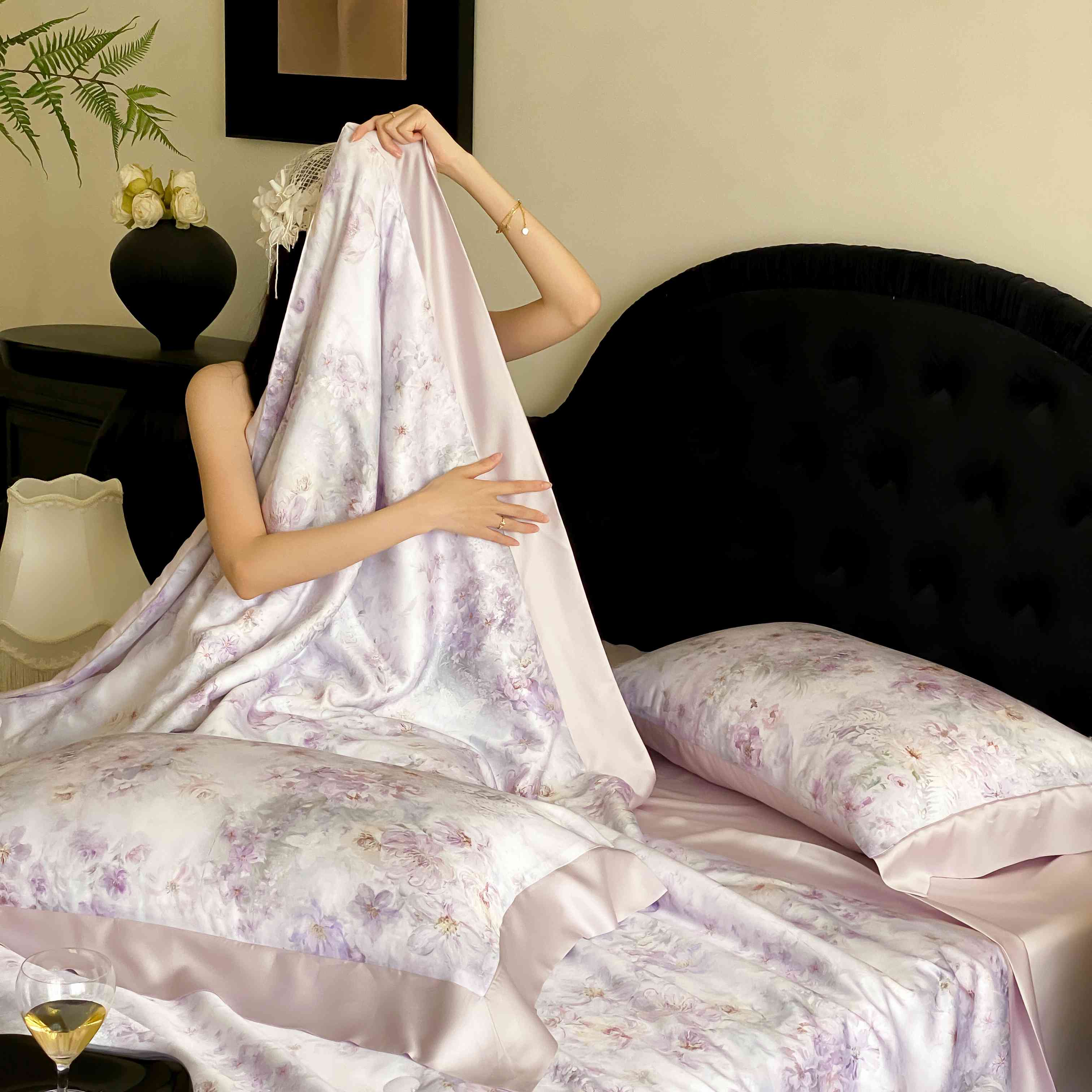商品名称:太古汇家居 2025新款兰精天丝活性数码印花夏被系列 瑾尚花语-紫色