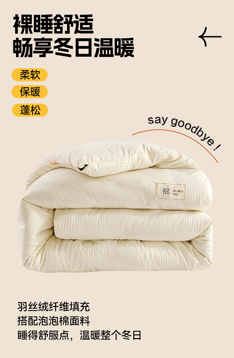 当前位置: 91家纺网 > 商品网购 > 被子 > 冬被 > (总)美尔惠家纺 2025新款泡泡纱无染超柔亲肤被芯冬被四季被被子被芯