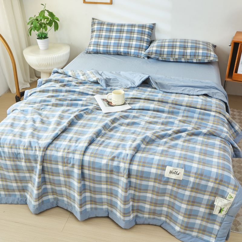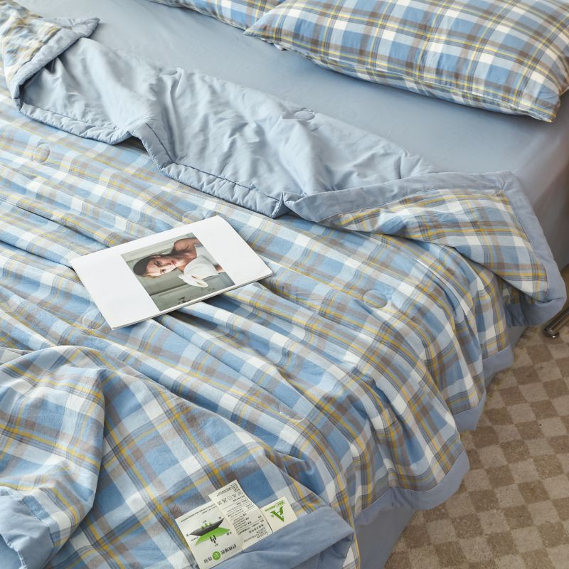 (总)美尔惠家纺 2025新款无印风A类色织水洗夏凉被双人空调被夏被夏被四件套可机洗单双人宿舍三件套,简兮-兰,冰淇淋-绿,粉黄中格,黄小格,灰白中格,蓝绿小格,蓝小格,蓝中格,牛油果双拼,条纹绿格,云舒-粉,紫粉中格