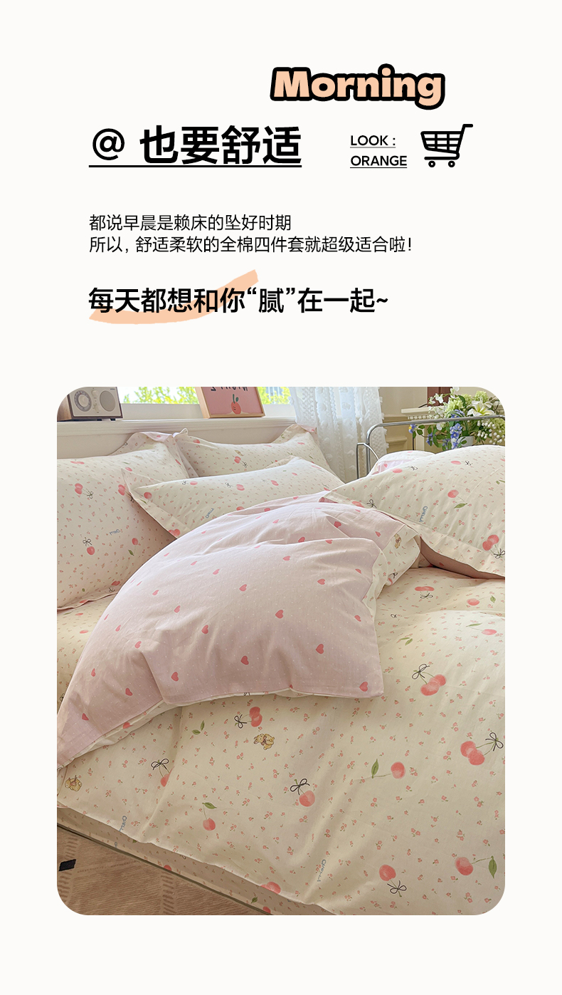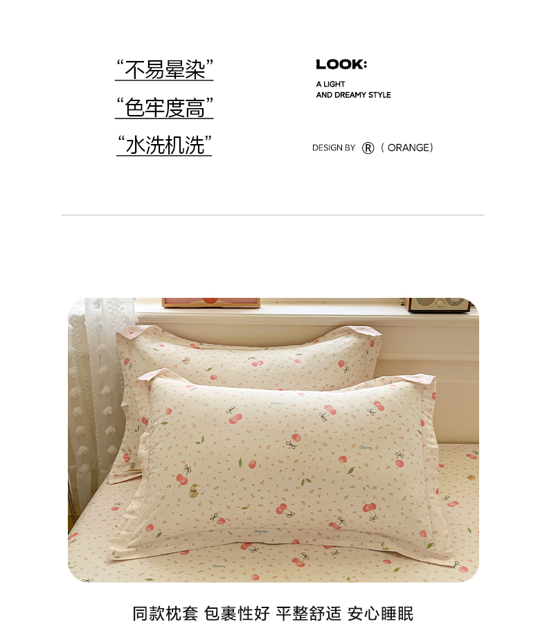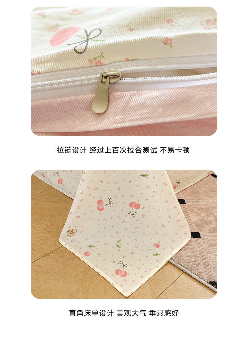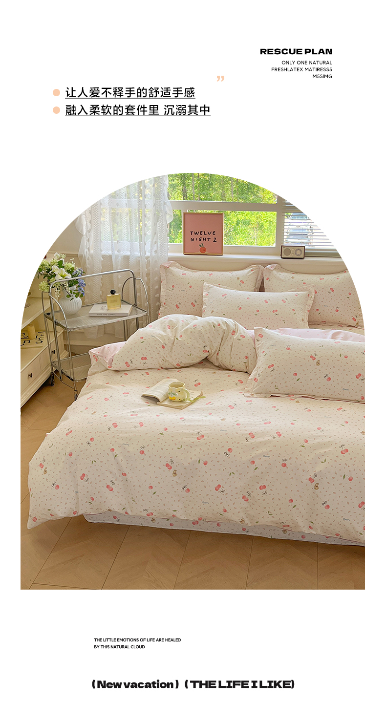 商品名称:花梦欣 2025新款全棉纯棉印花单品系列-三件套 樱桃甜宠