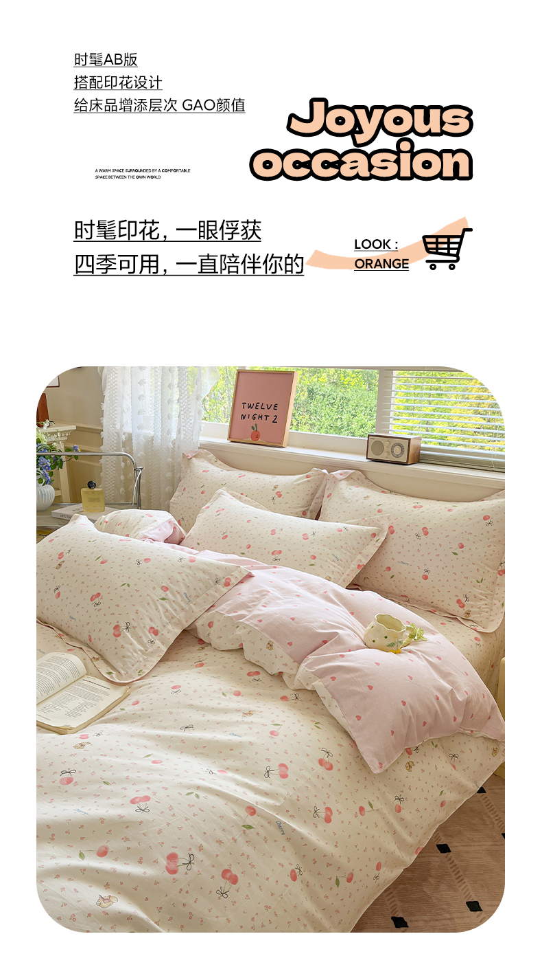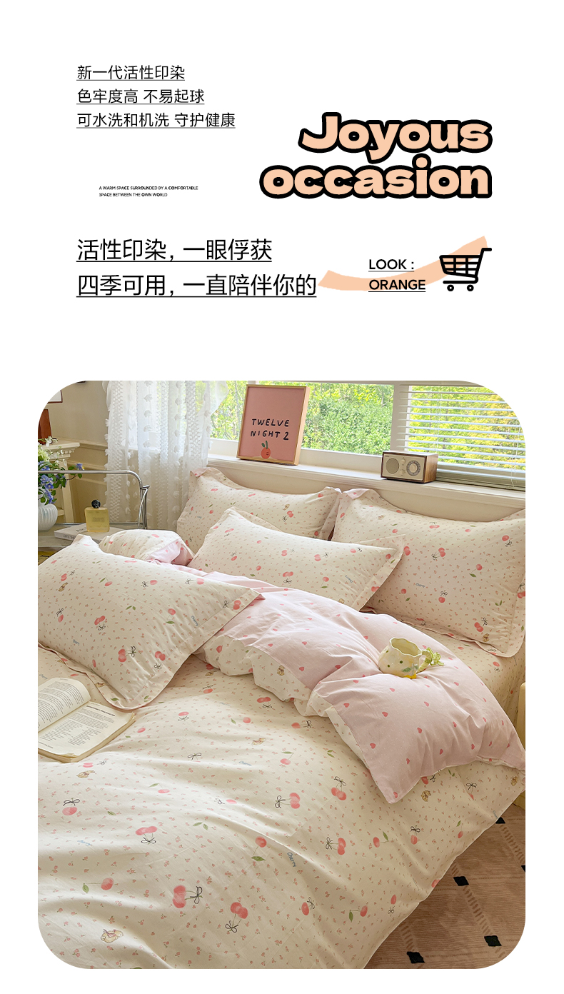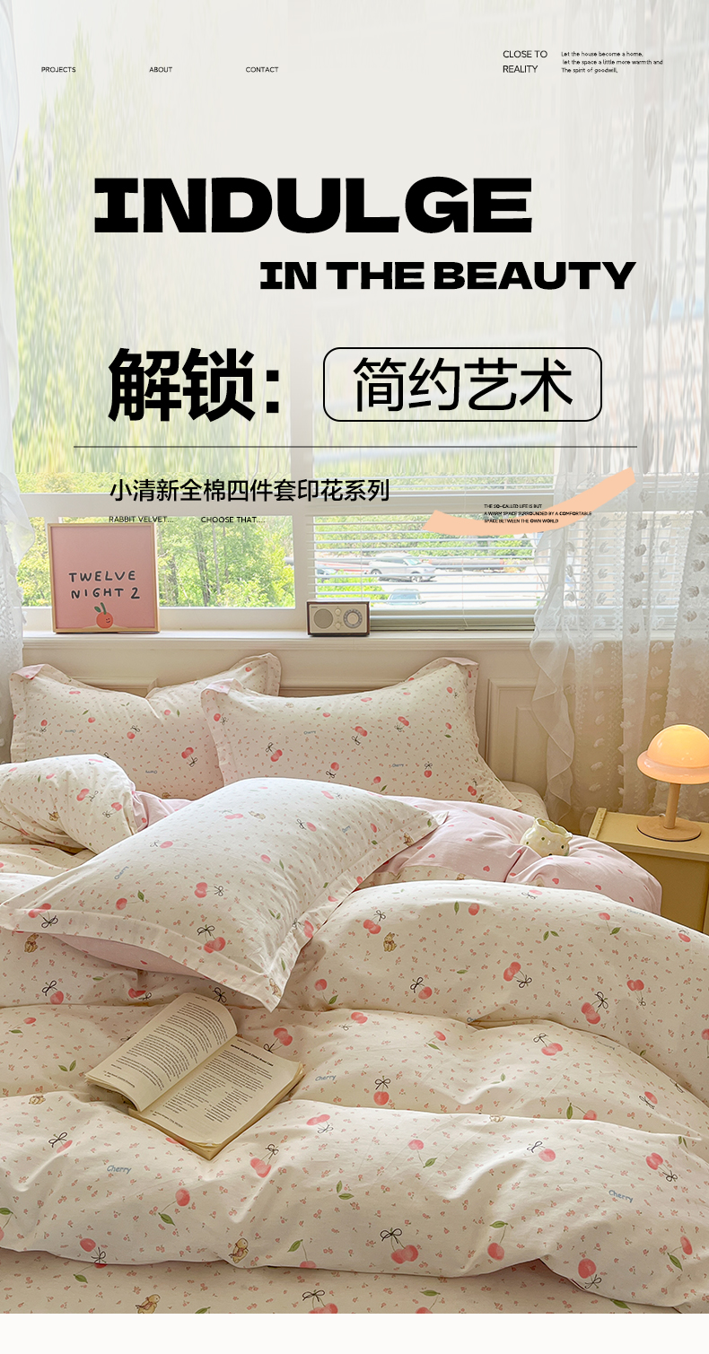 商品名称:花梦欣 2025新款全棉纯棉印花单品系列-三件套 樱桃甜宠