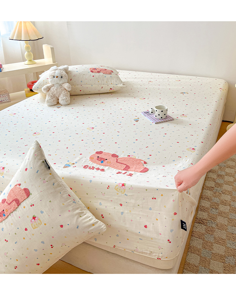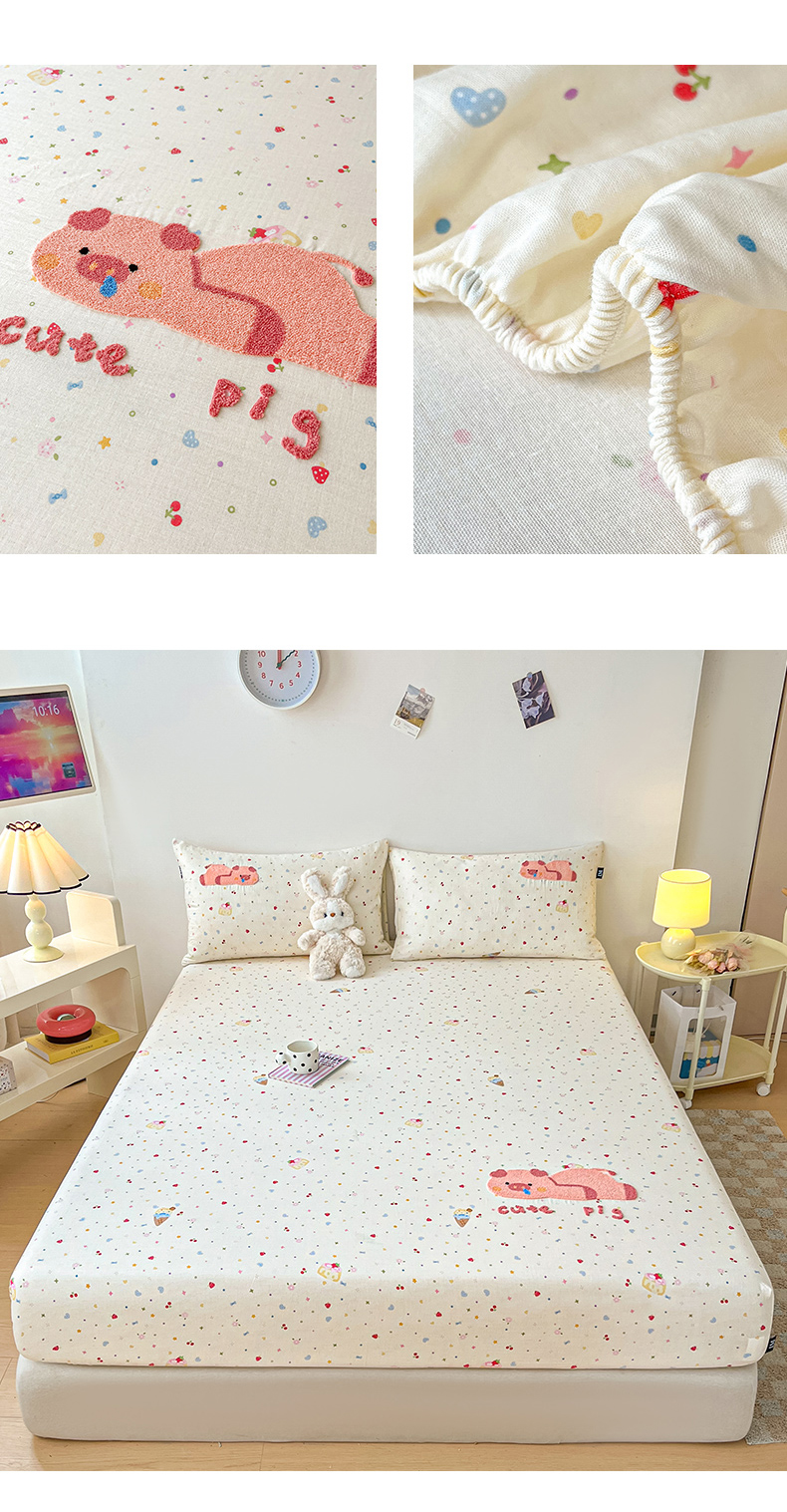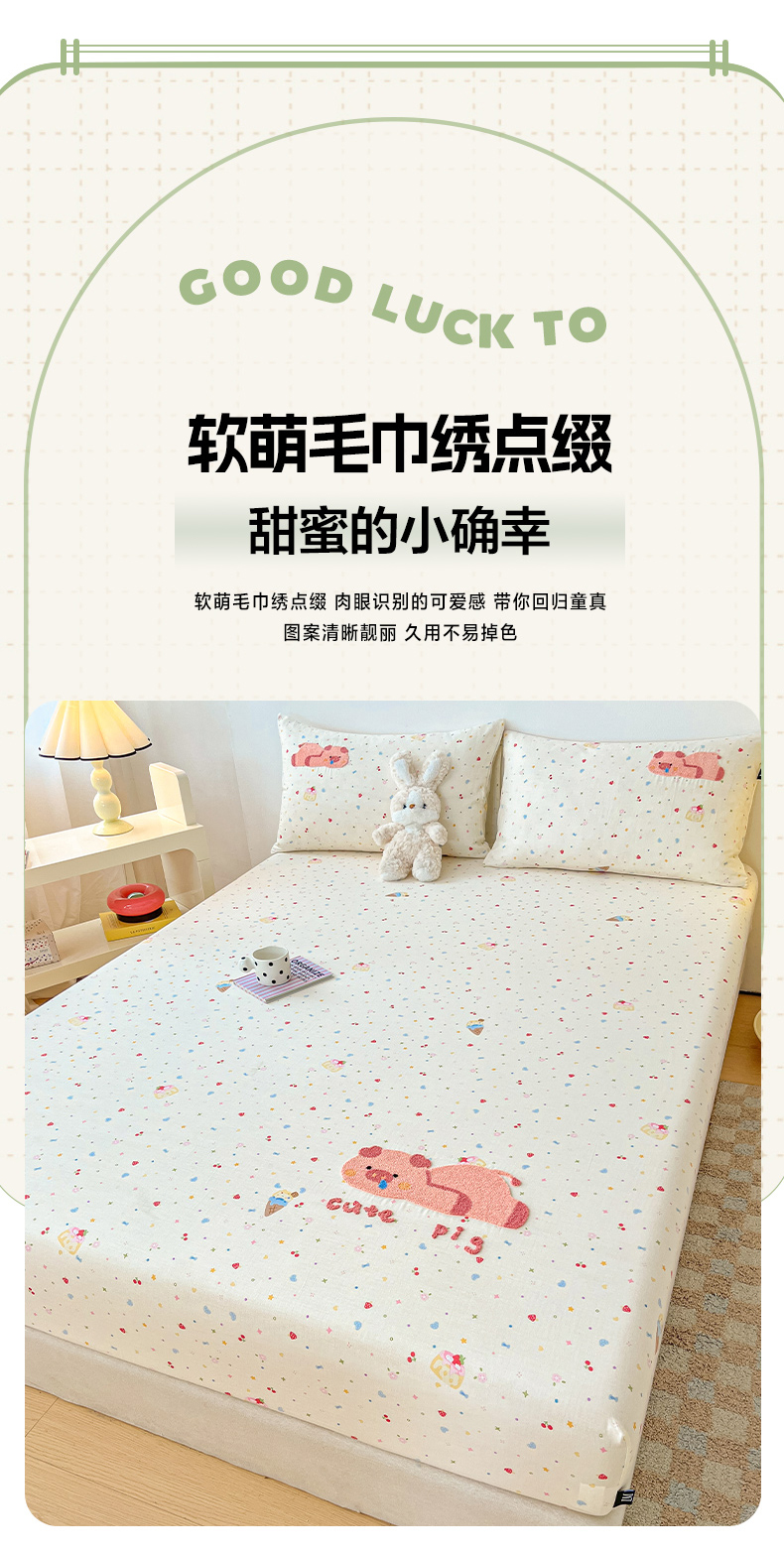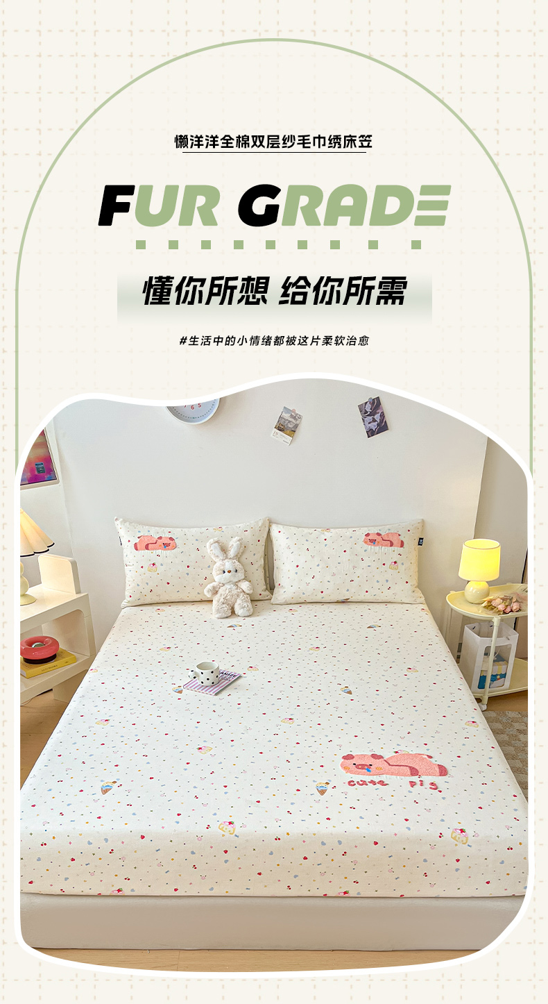 乐美家纺 2025新款懒洋洋全棉双层纱毛巾绣床笠三件套(提供买家秀) 扭扭猪