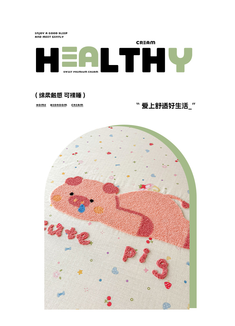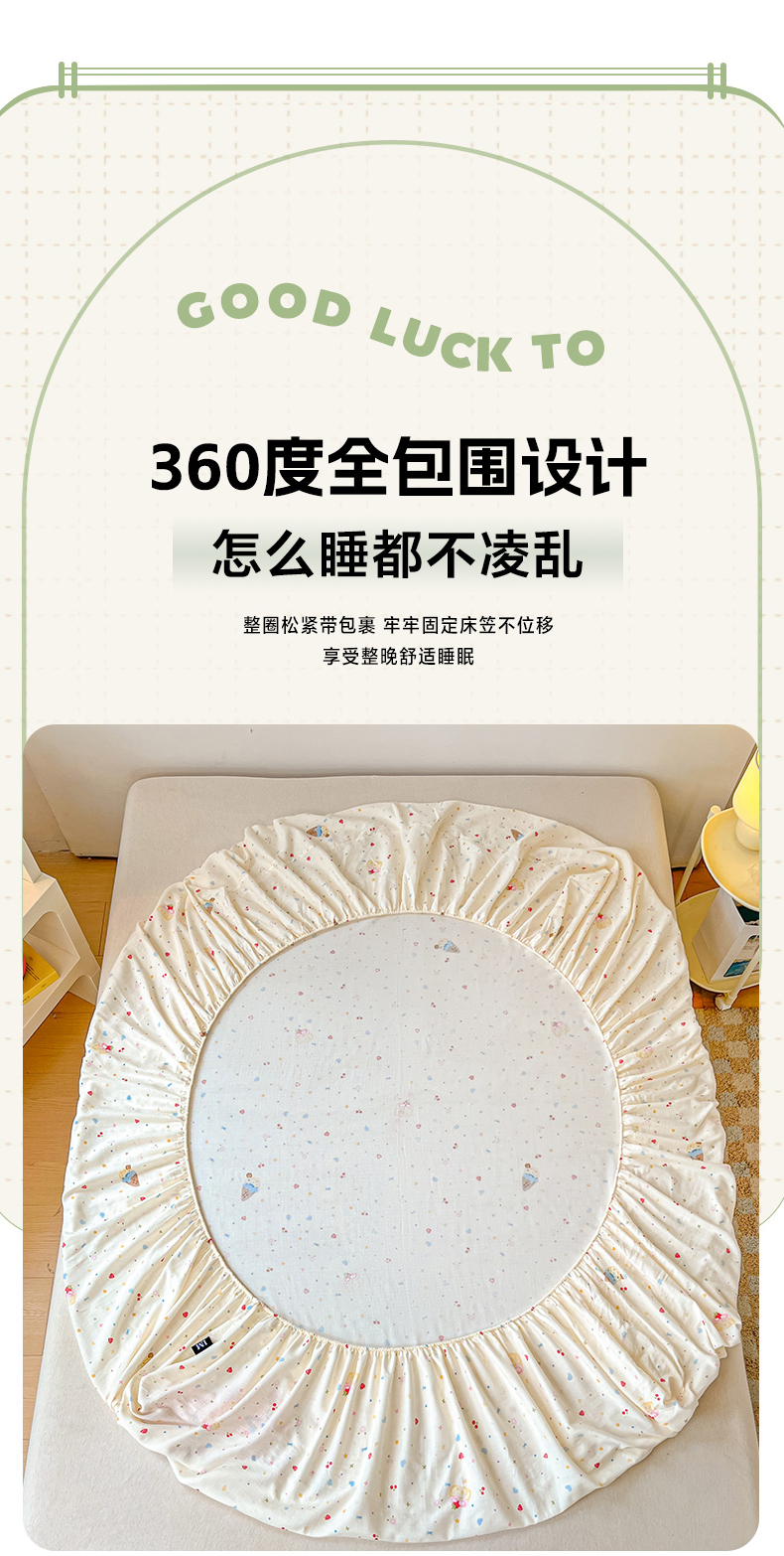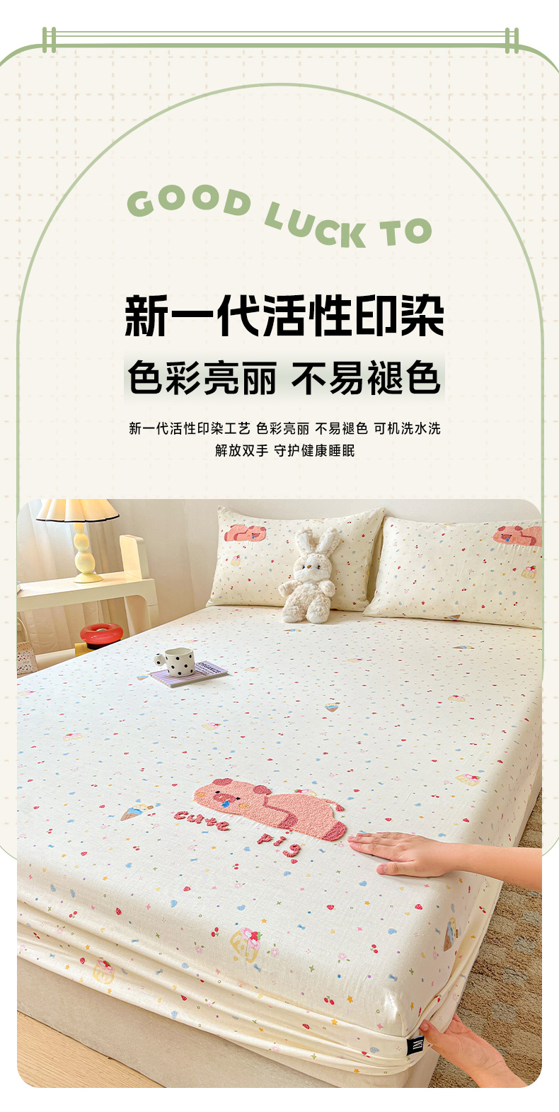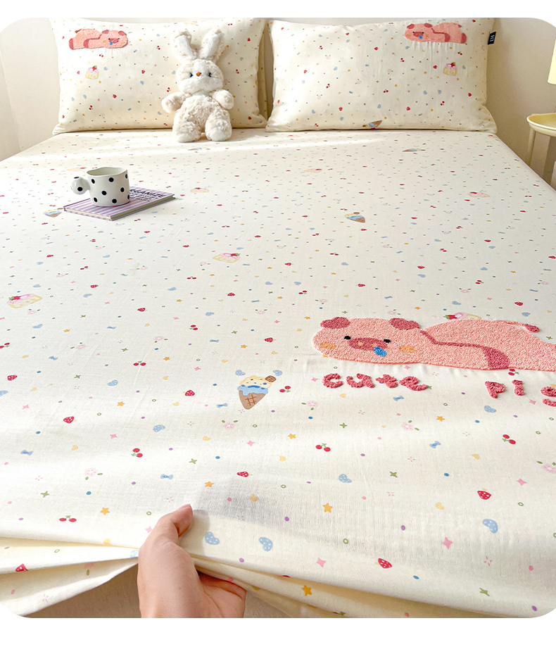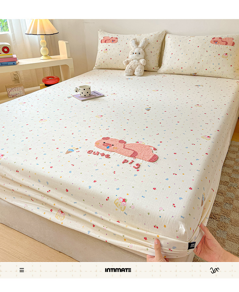 乐美家纺 2025新款懒洋洋全棉双层纱毛巾绣床笠三件套(提供买家秀) 扭扭猪