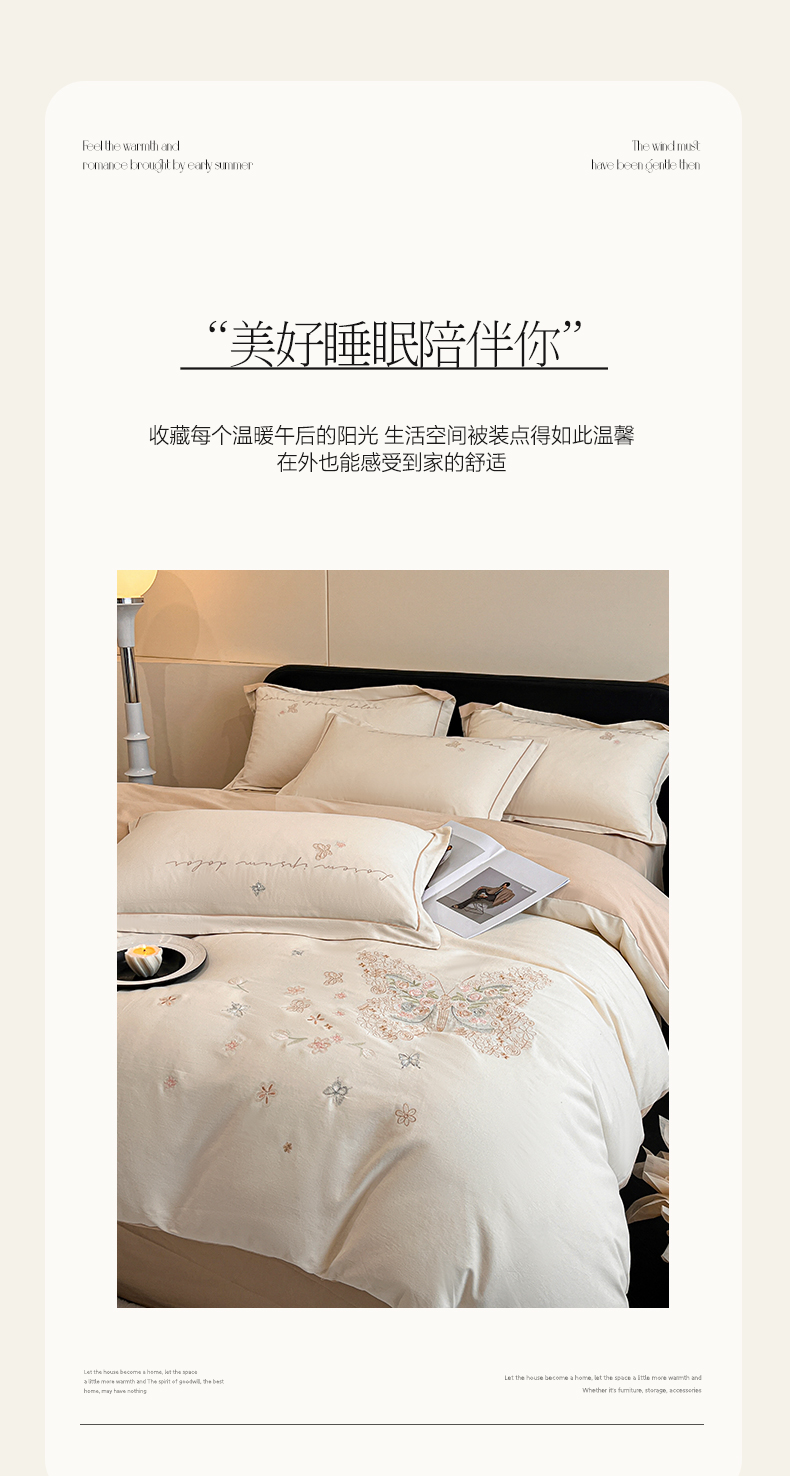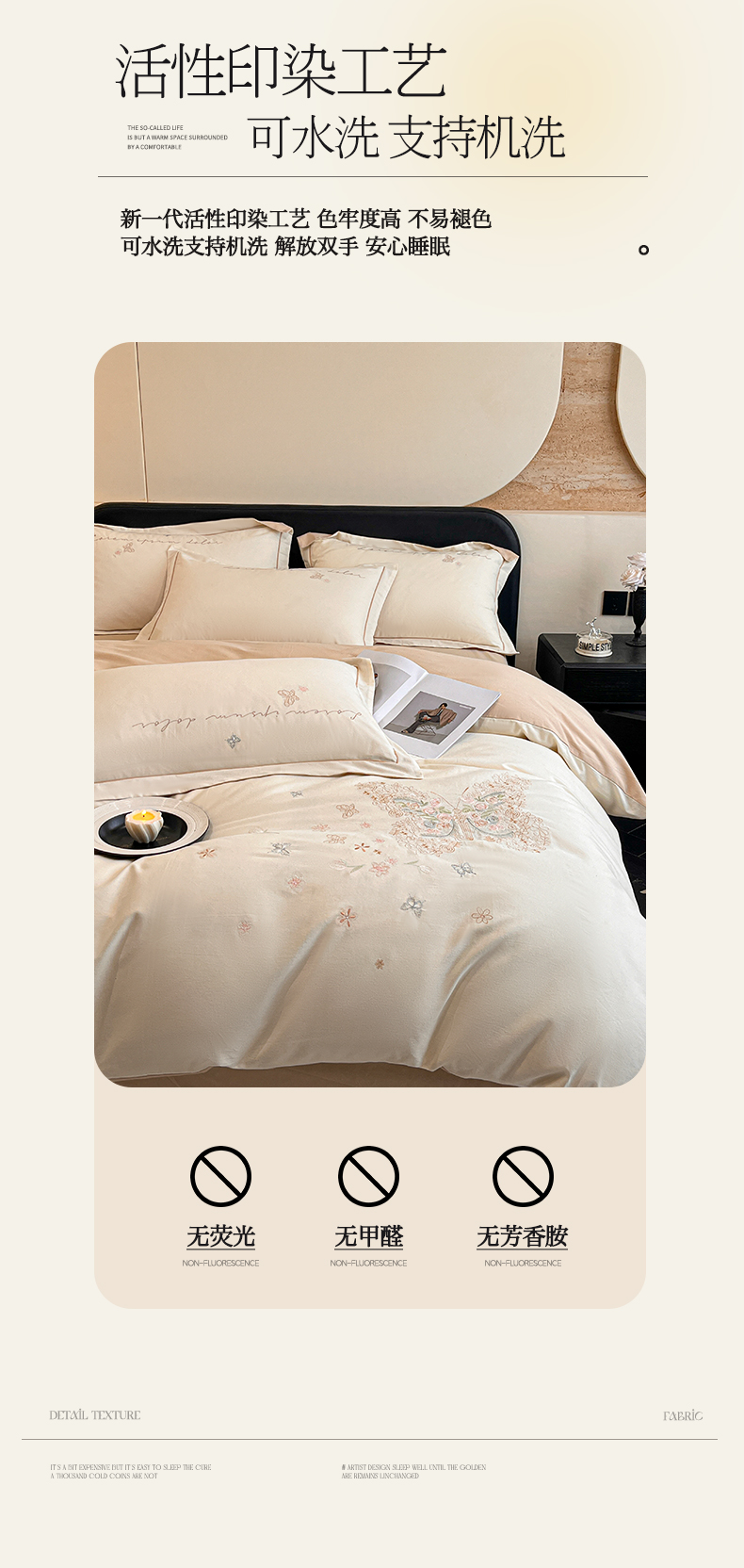 涵宸家纺 2025新款全棉磨毛刺绣四件套系列-花蝴蝶 花蝴蝶-奶白