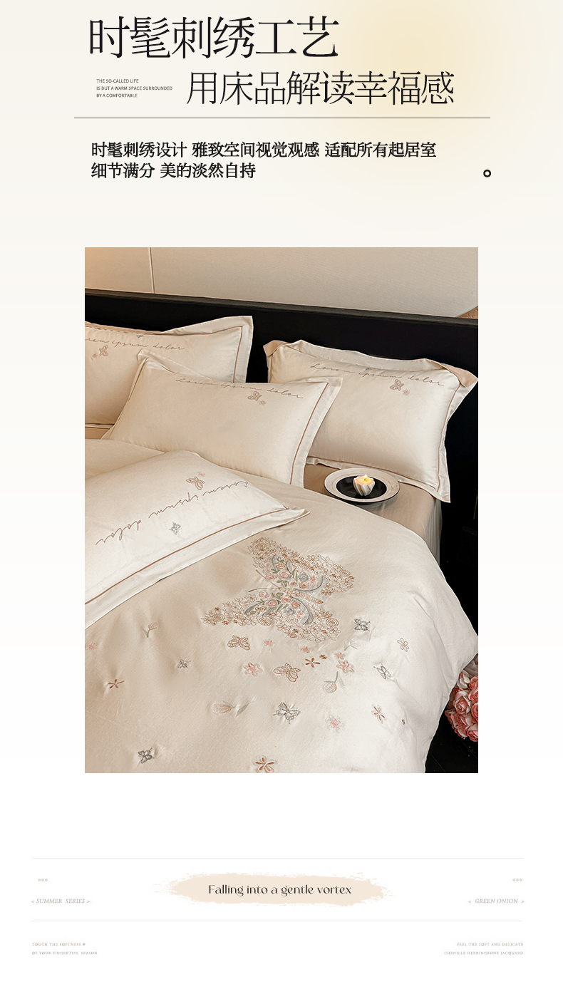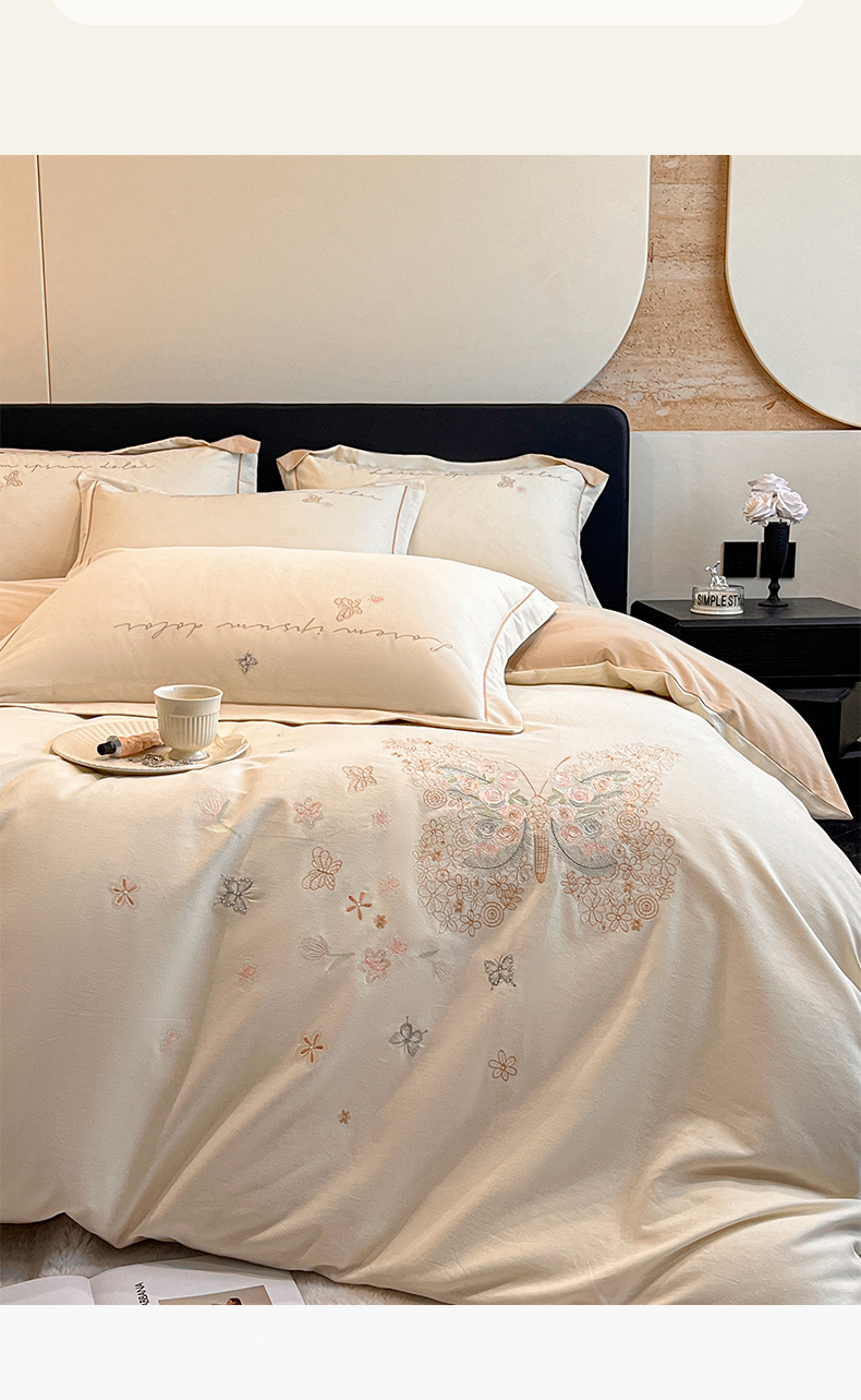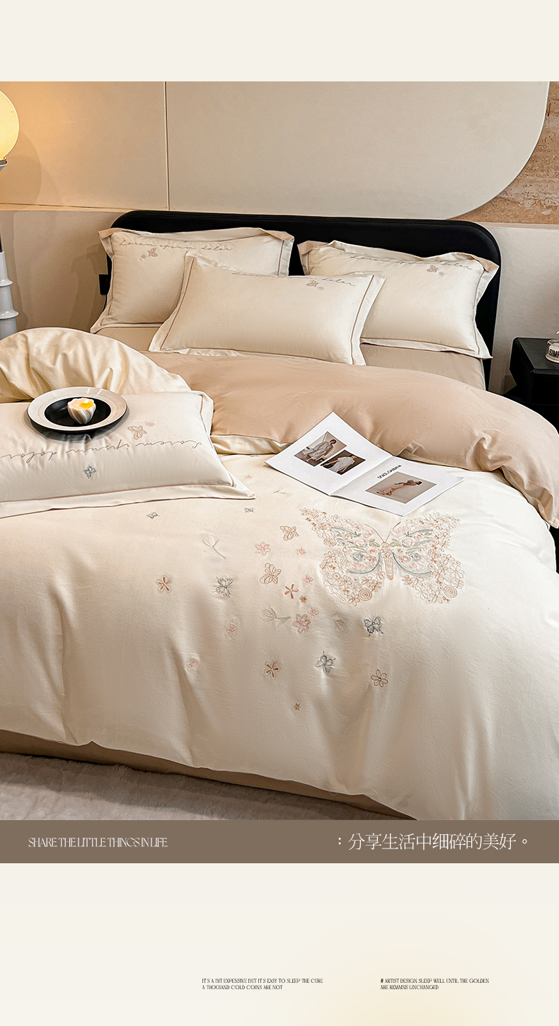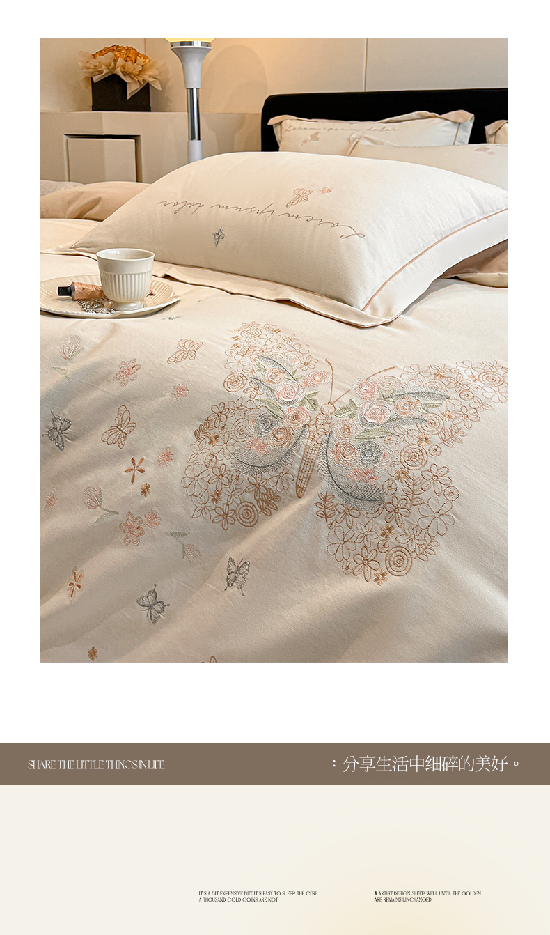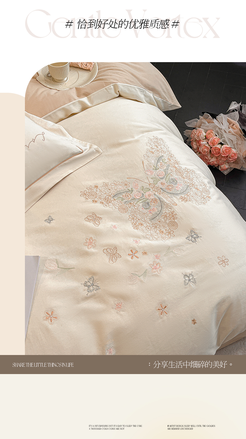 (总)涵宸家纺 2025新款全棉磨毛刺绣四件套系列-花蝴蝶,花蝴蝶-灰,花蝴蝶-奶白,花蝴蝶-浅粉