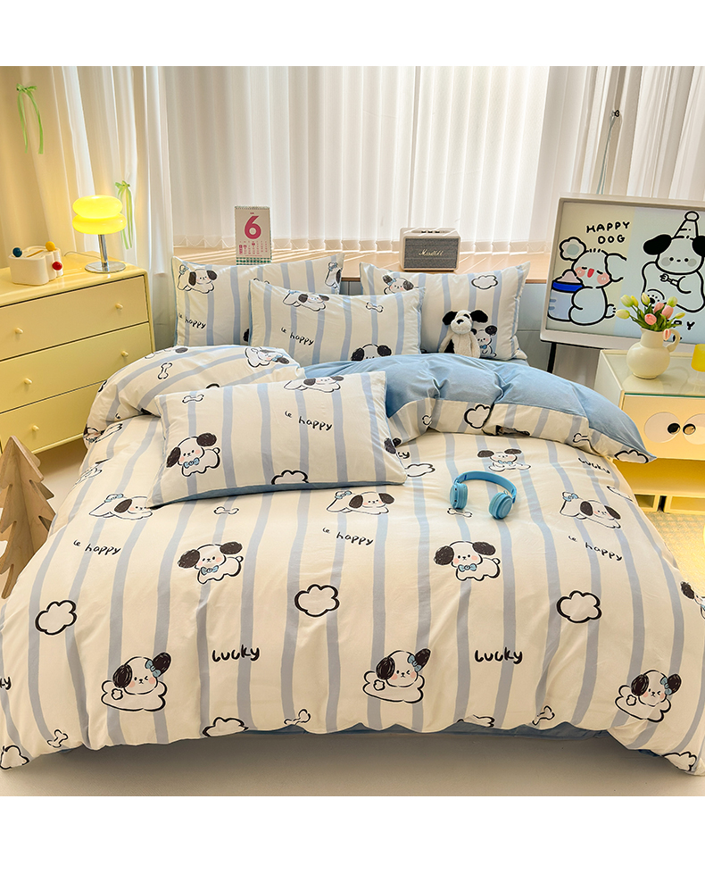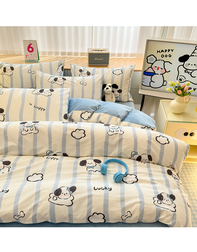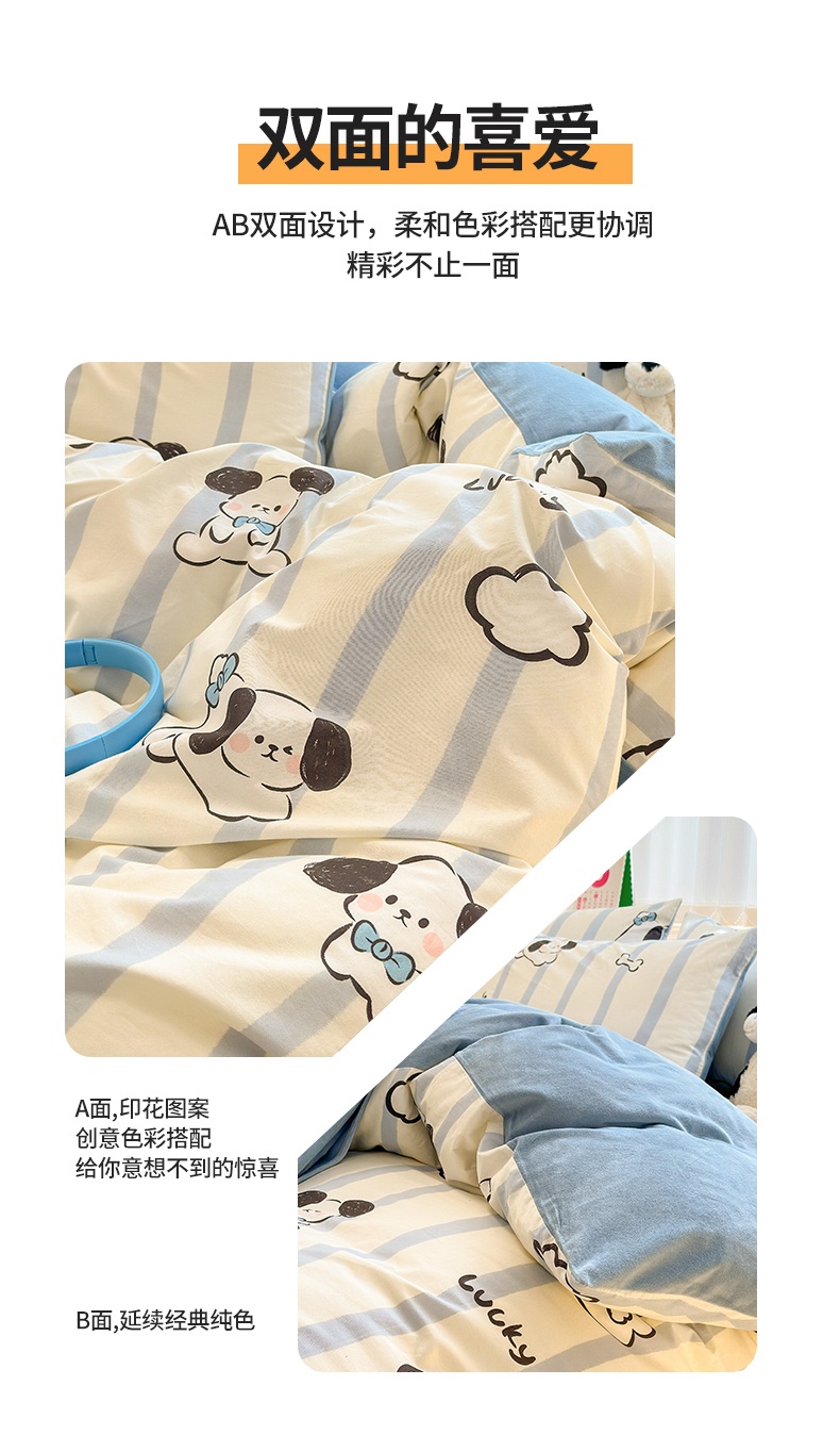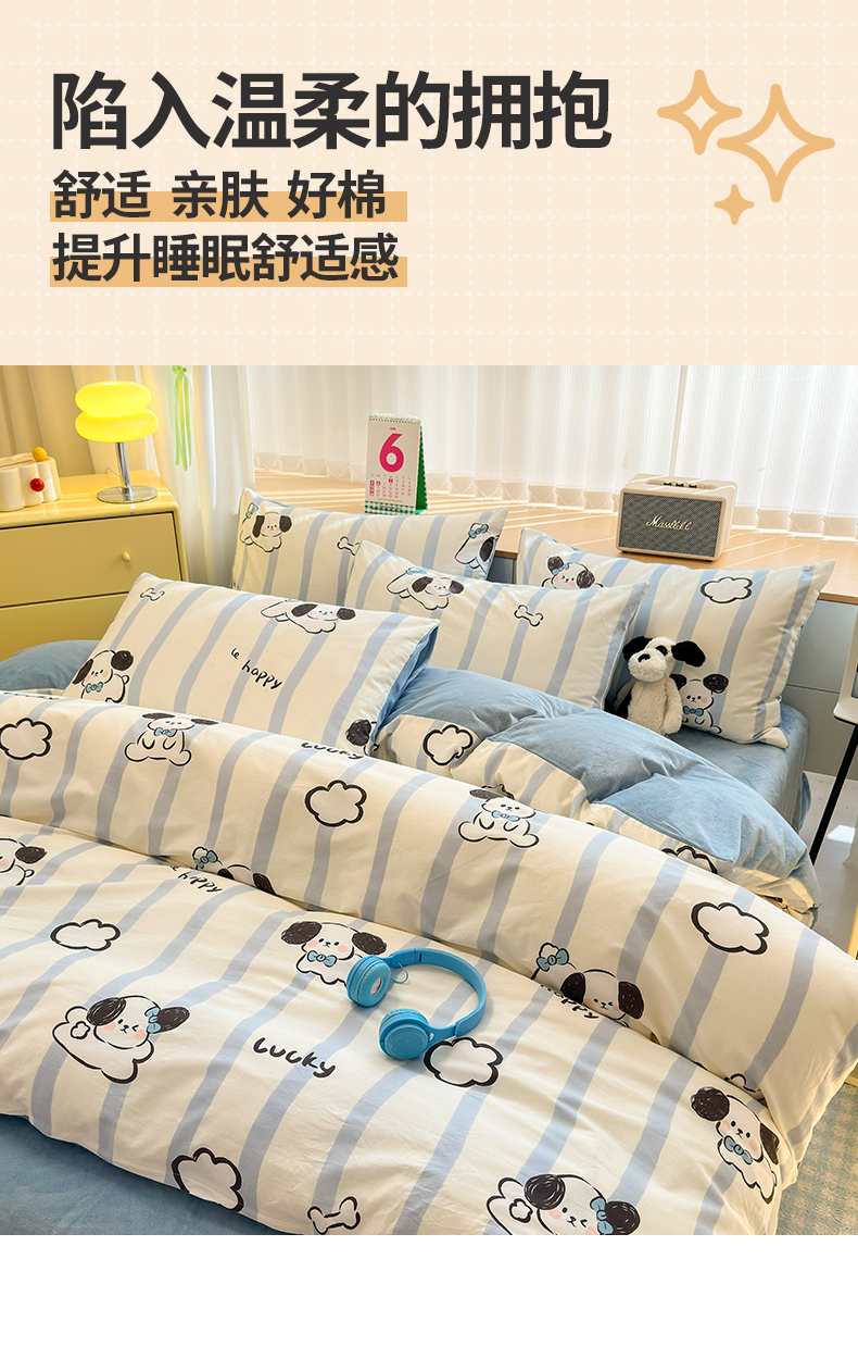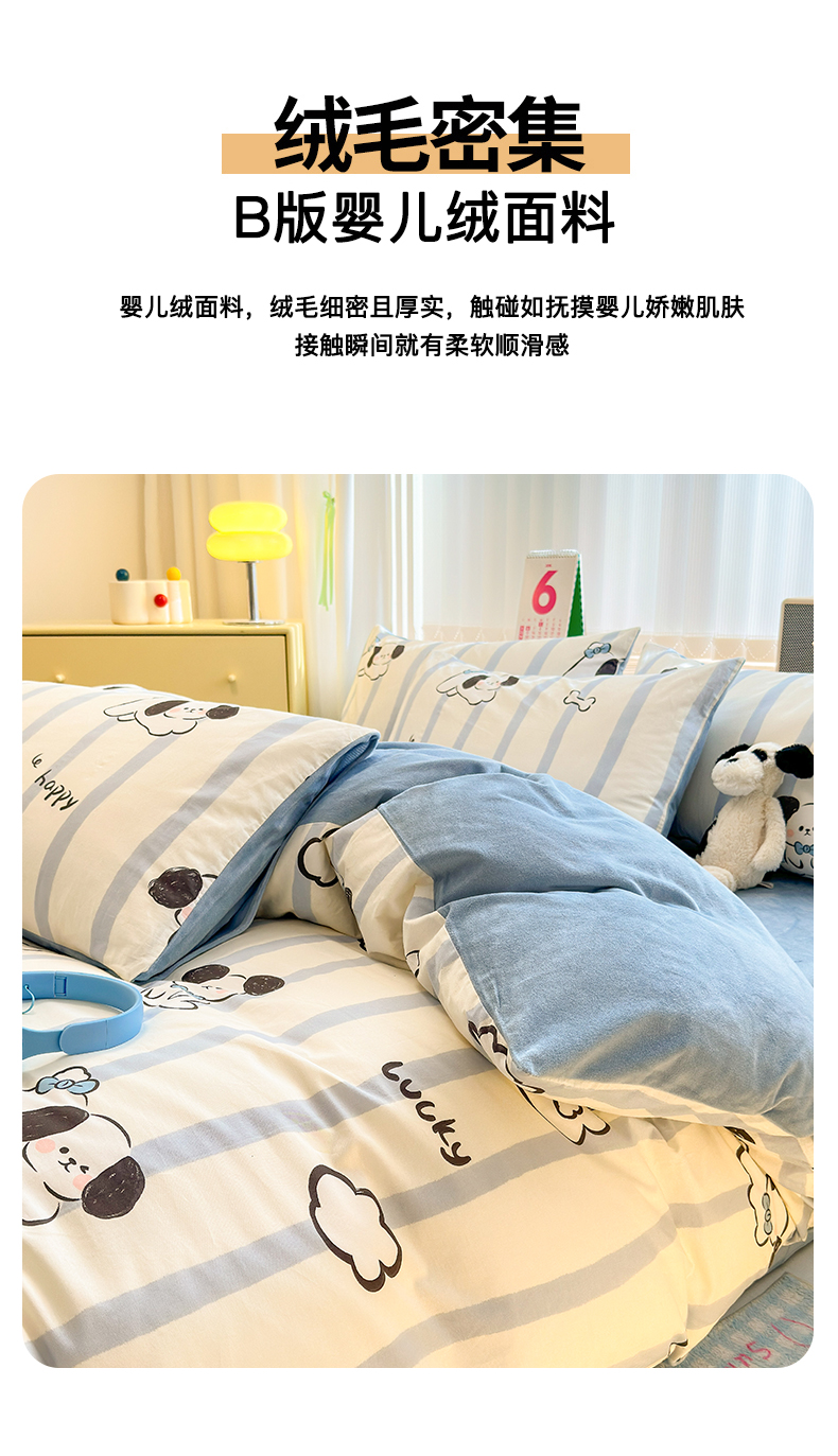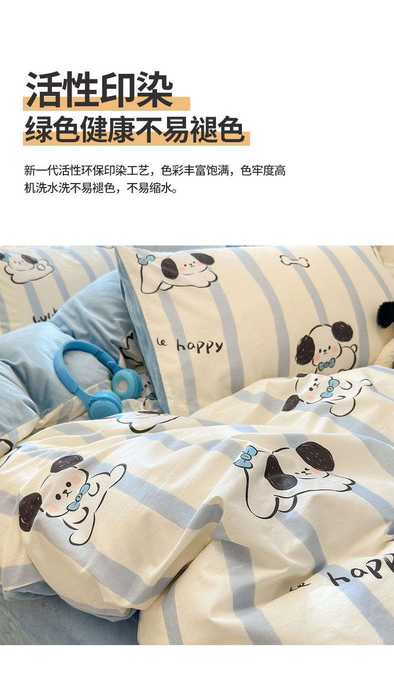 当前位置: 91家纺网 > 商品网购 > 床品套件 > 四件套 > 全棉普通四件套 > 清雅福 2025秋冬新品全棉印花棉加绒四件套系列 棉绒-条纹狗狗