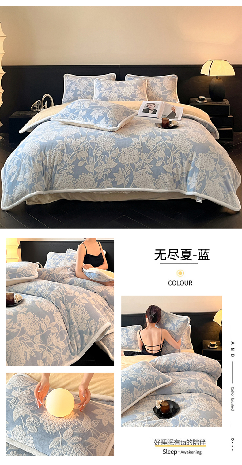 诺梵 2025新款8斤立体雕花牛奶绒四件套_控价标准高于139,加大高于149 无尽夏-蓝