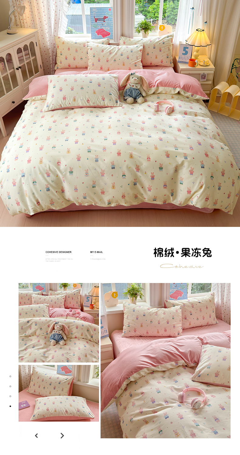 (总)清雅福 2026春夏新款INS小清新40支全棉13372四件套第一批,棒棒糖女孩,春之约定,点点小狗,动物聚会,豆丁小熊,粉心狗,富贵狗,果子象,含羞草,假日小狗