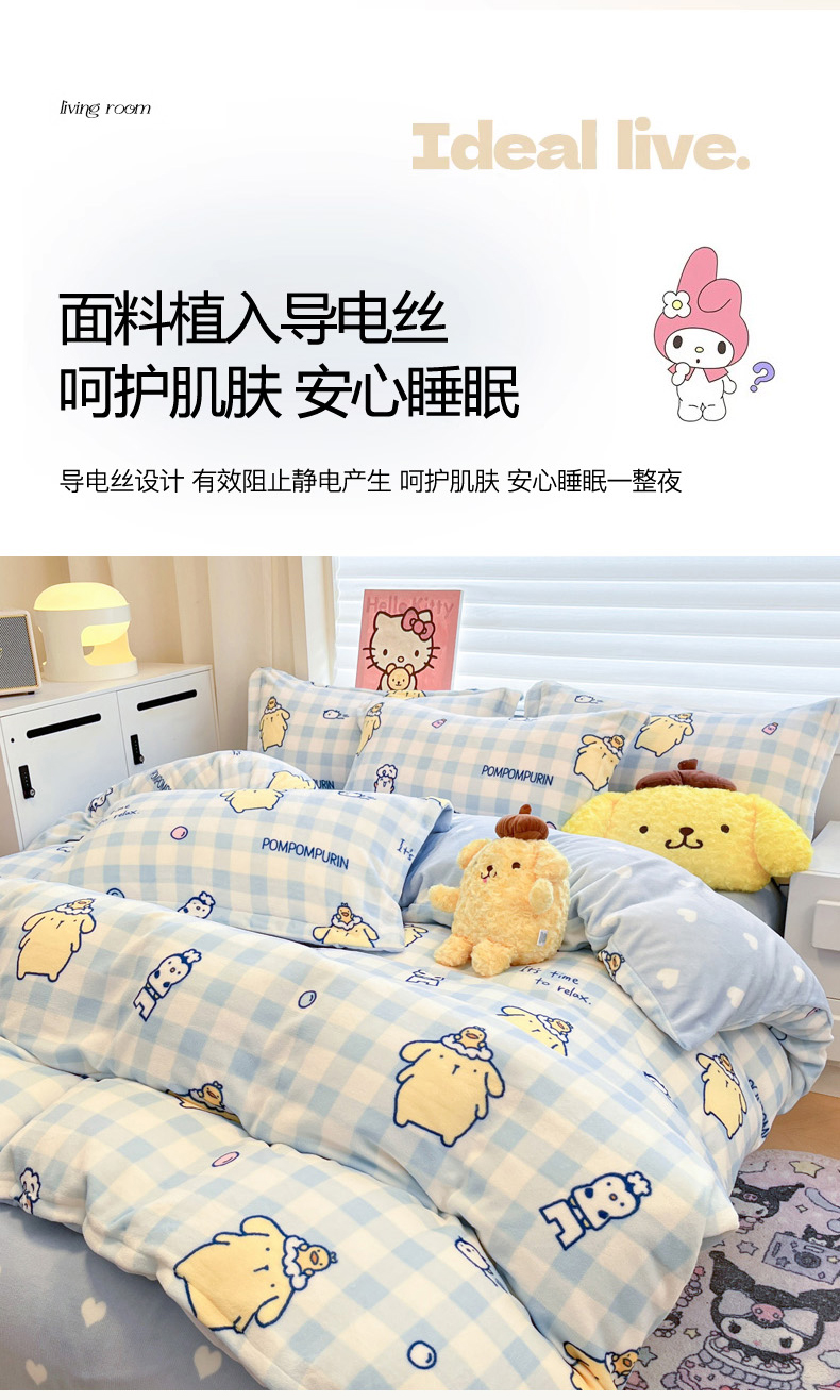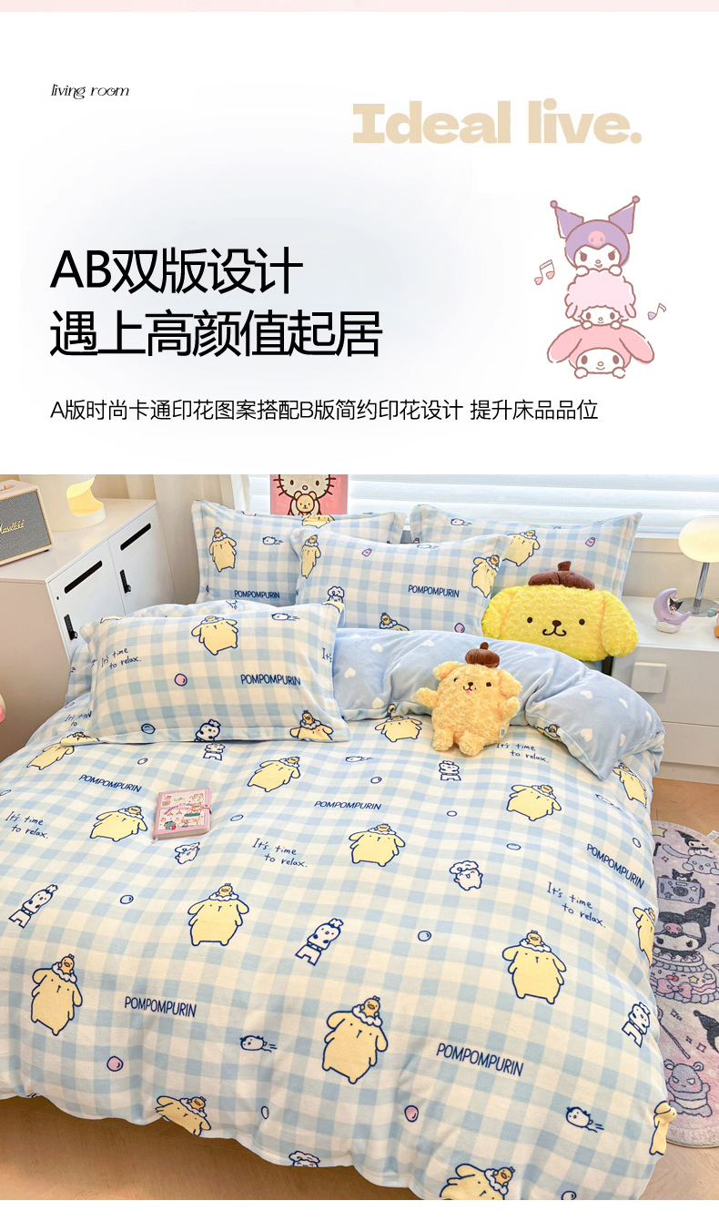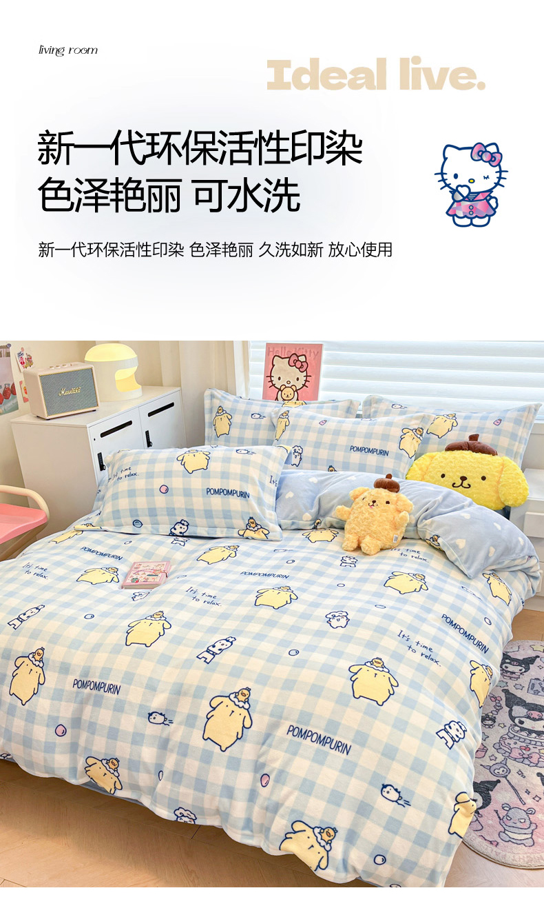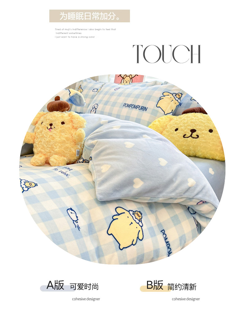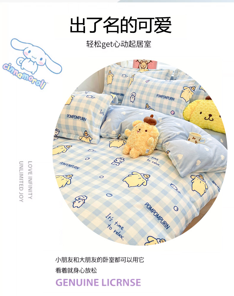 当前位置: 91家纺网 > 商品网购 > 床品套件 > 四件套 > 牛奶绒四件套 > 暮思家居 2025新款三丽鸥正版授权高克重200克加厚保暖卡通牛奶绒四件套 牛奶绒-泡泡布丁狗