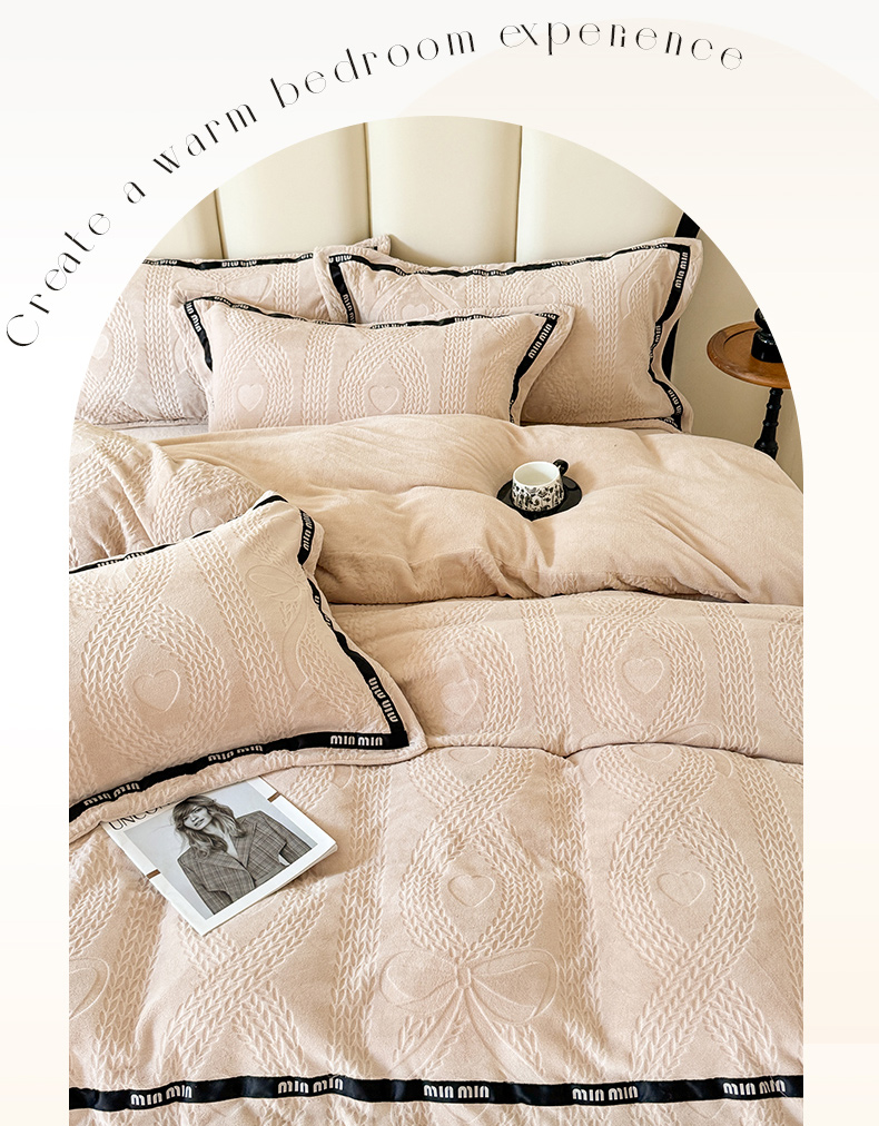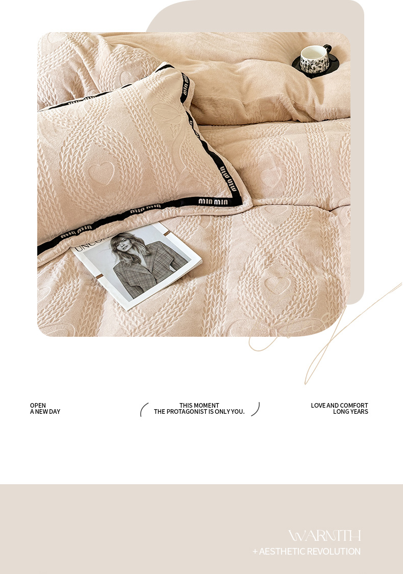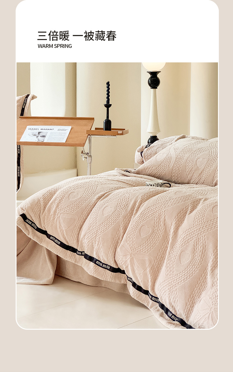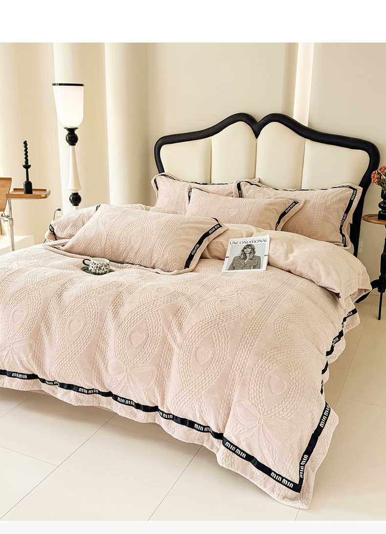 当前位置: 91家纺网 > 商品网购 > 床品套件 > 四件套 > 牛奶绒四件套 > 潮邦创意家居 2025新款冬季雕花牛奶绒四件套-简逸黑钻 简逸黑钻-玉色
