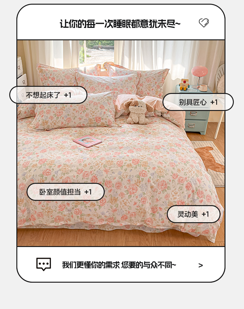 当前位置: 91家纺网 > 商品网购 > 床品套件 > 四件套 > 全棉普通四件套 > 花梦欣 2025新款全棉印花单品系列-四件套花恋