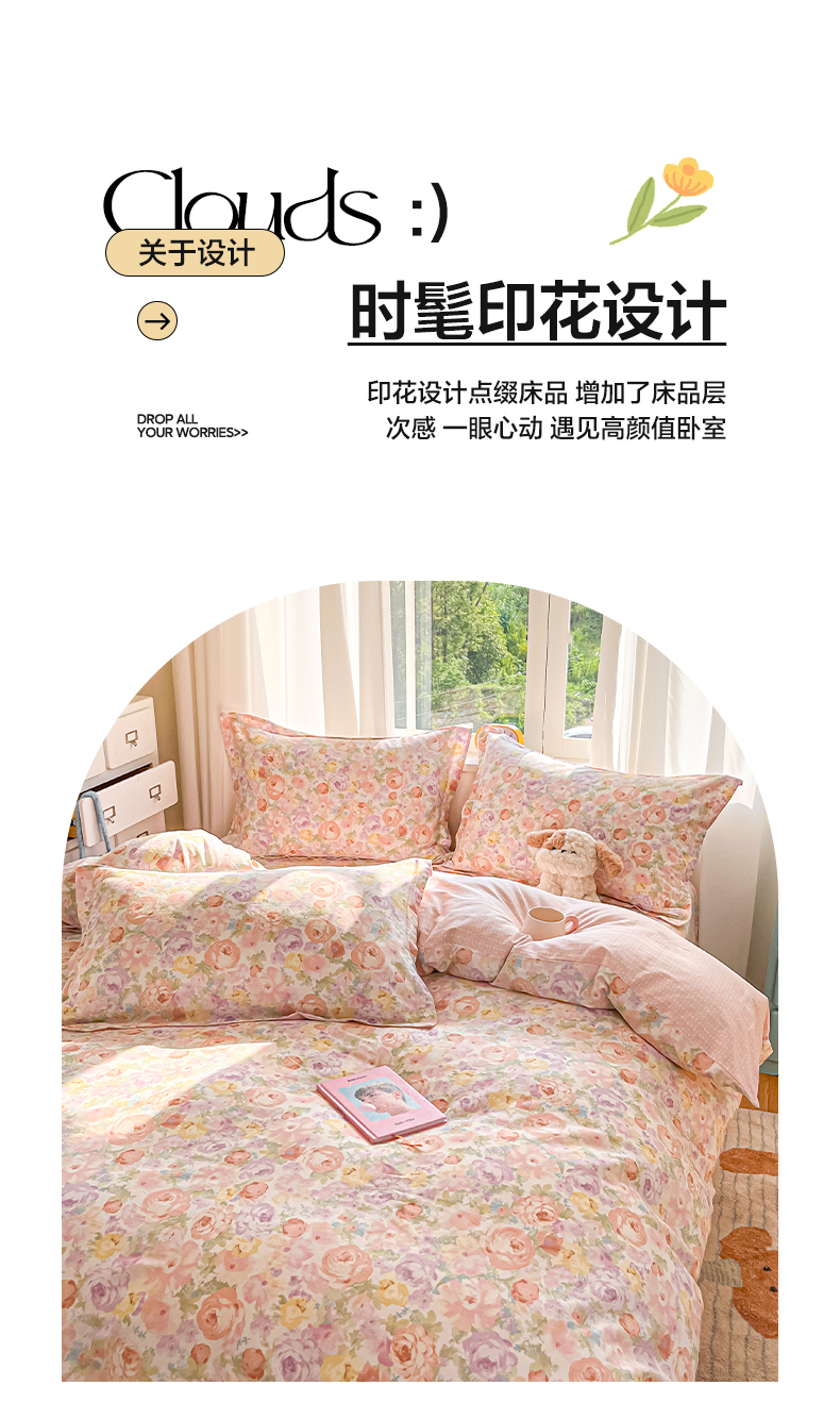 花梦欣 2025新款全棉印花单品系列-四件套花恋,花恋