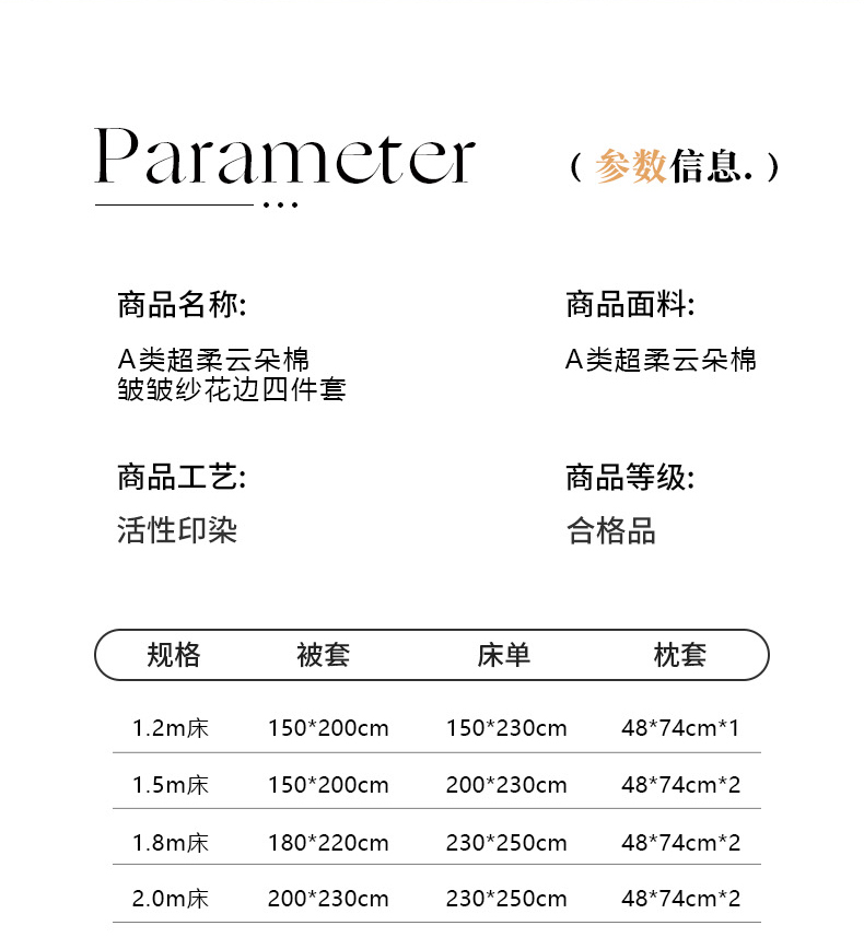【床笠款】1.5四件套-被套200x230 | ¥74.00 |