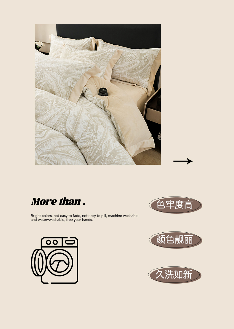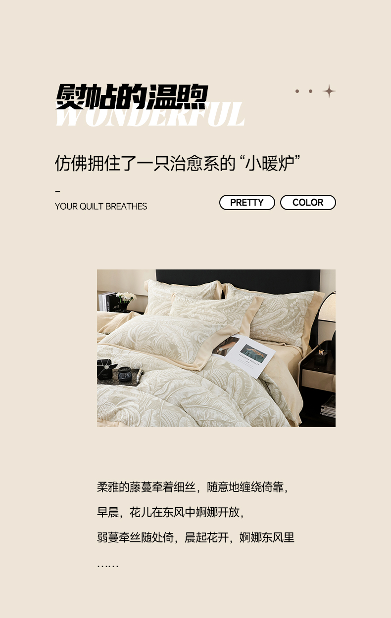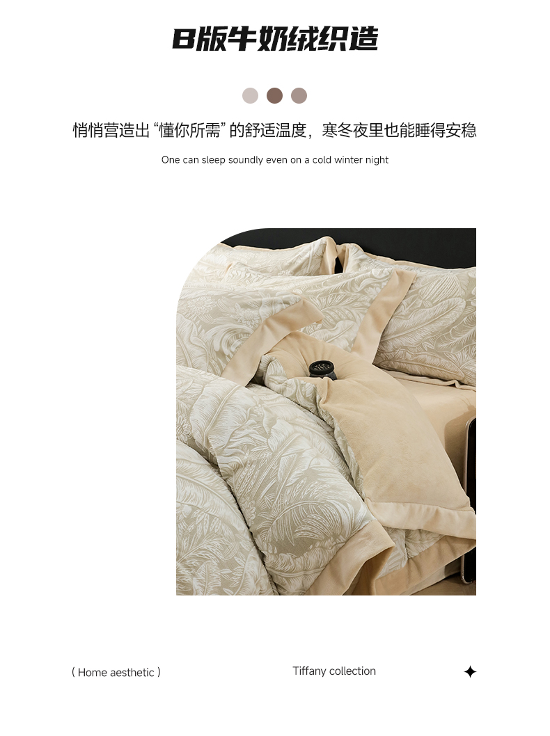 商品名称:千姿坊 2025新款冬季雕花牛奶绒加厚保暖四件套复古风轻奢烂花床单被套床上用品 一叶倾城-浅咖