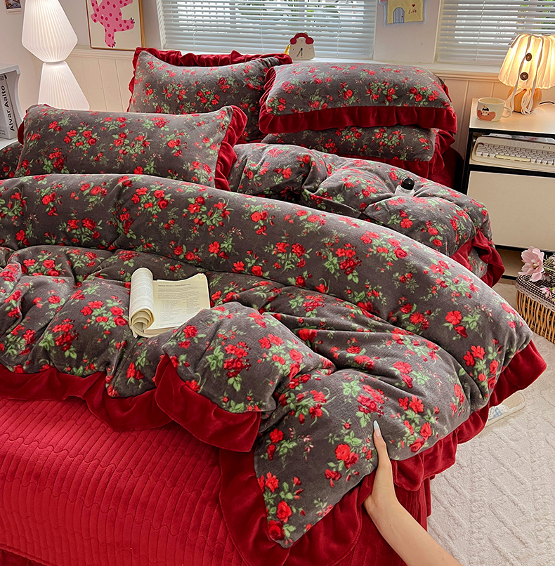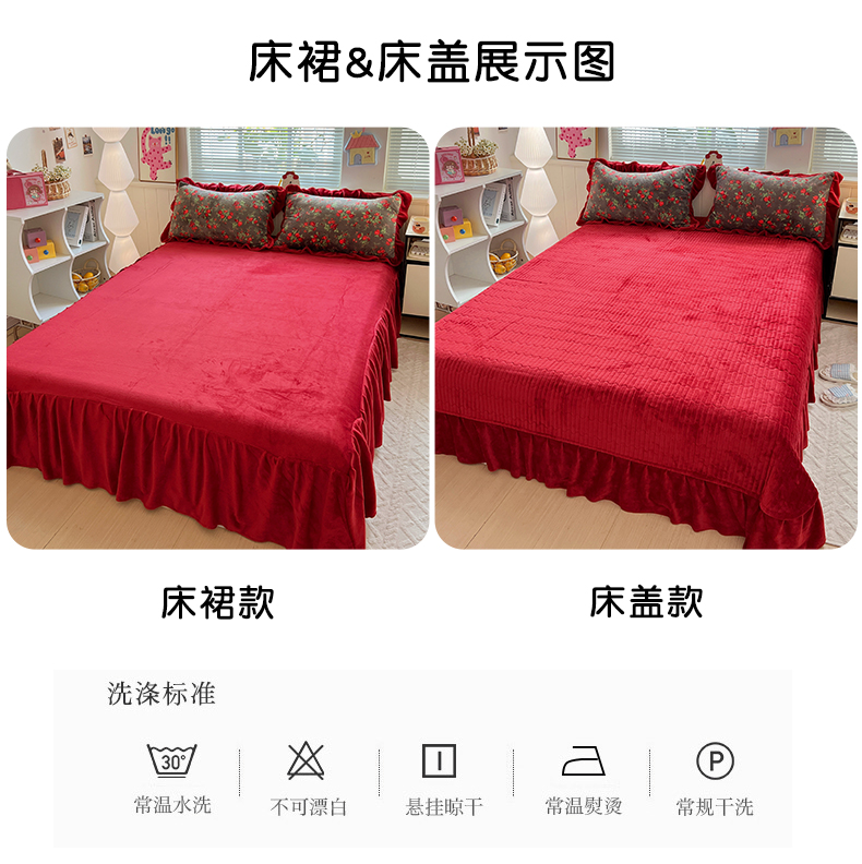 当前位置: 91家纺网 > 商品网购 > 床品套件 > 四件套 > 牛奶绒四件套 > 富米莱(原臻工厂) 2025新款热卖舒适花边牛奶绒床盖床裙床单四件套 心尖尖-红