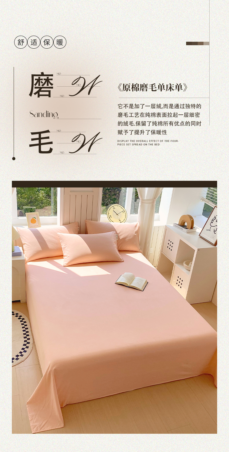 春皖家纺 2025新款原棉磨毛单床单 床单单件-风格一 丽人粉