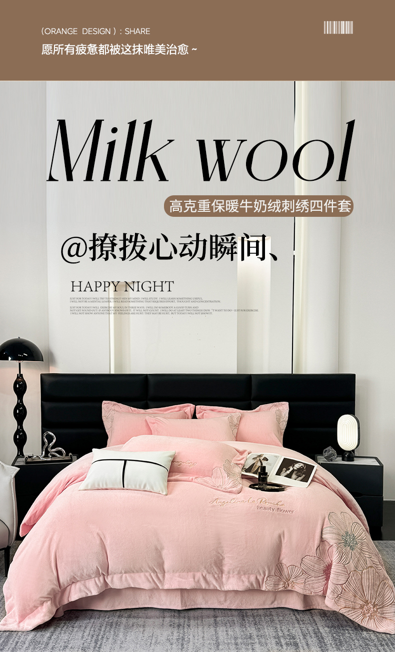 (总)星蕴家纺 2024新款220克全消光牛奶绒四件套--绮丽,奶咖,奶油黄,牛仔蓝,温柔粉