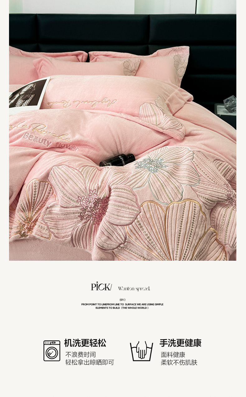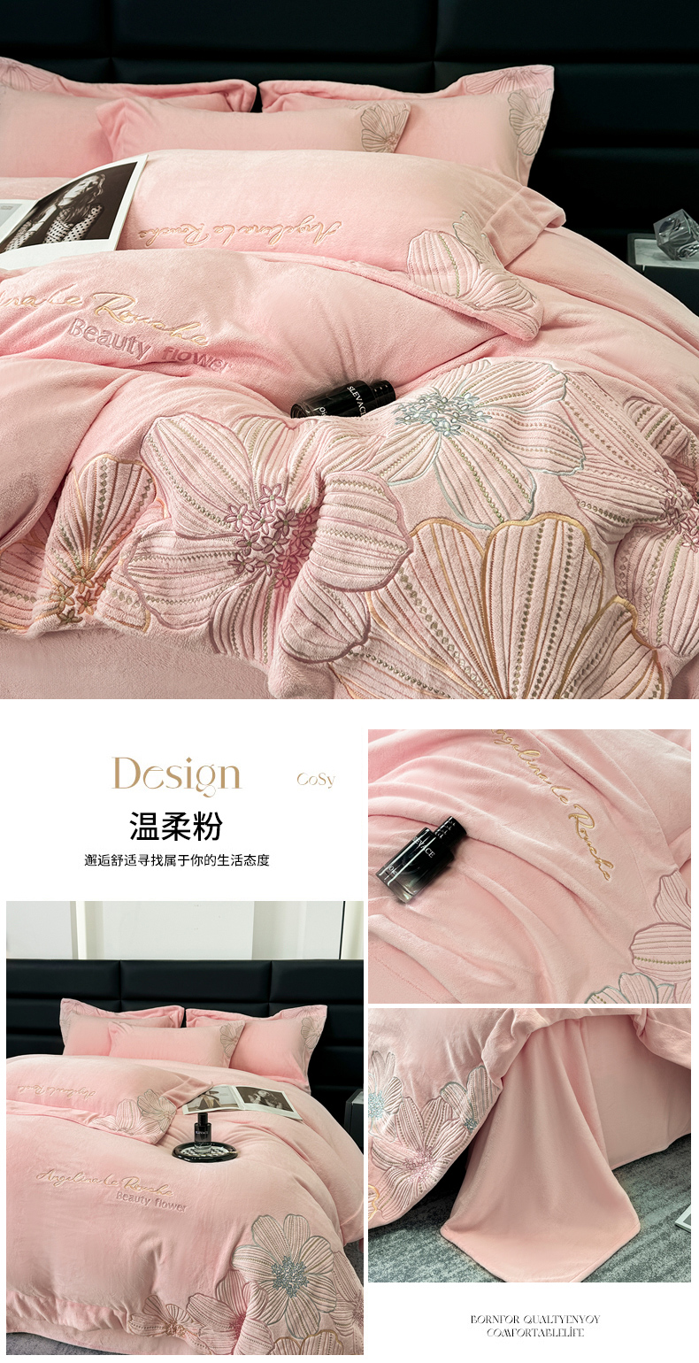 (总)2025新款全消光牛奶绒线条花刺绣+宽边四件套-绮丽