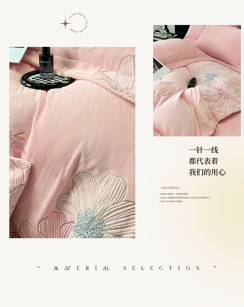 (总)星蕴家纺 2026新款A类新疆全棉刺绣四件套-千禧,高级灰,千禧粉,奶昔白,浅香槟