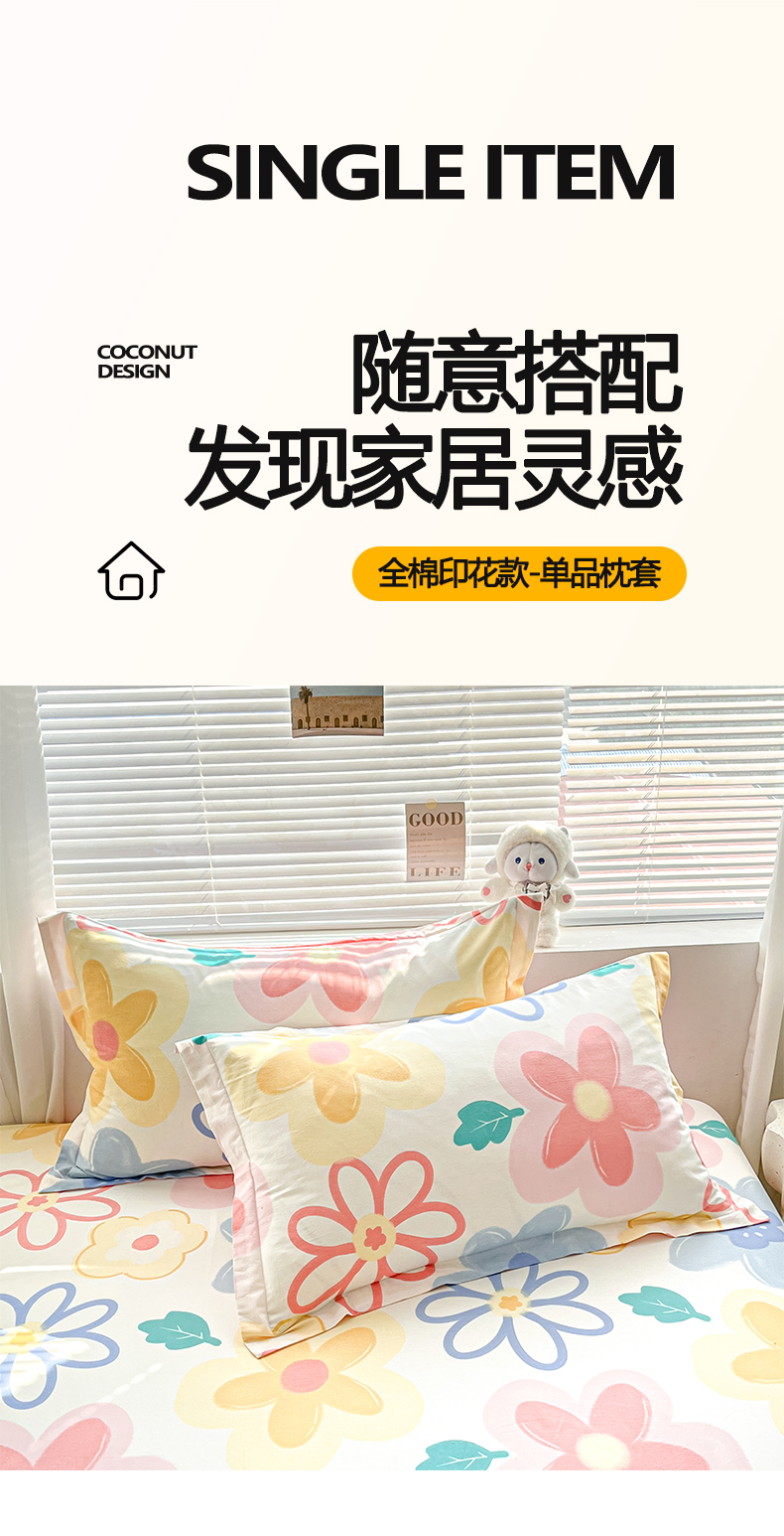 商品名称:涵宸家纺 2026新款亲肤舒适全棉印花单枕套-68系列 总 枕套-爱恋