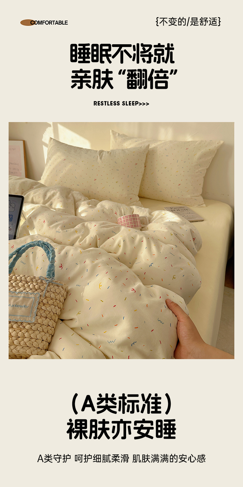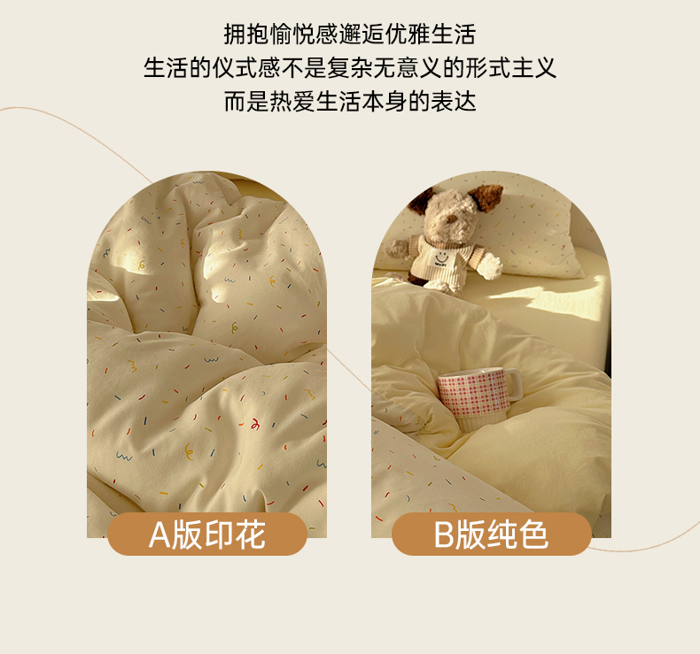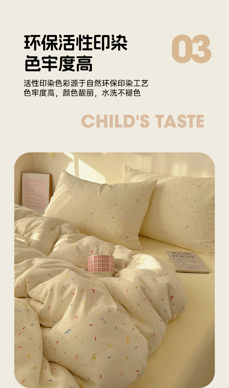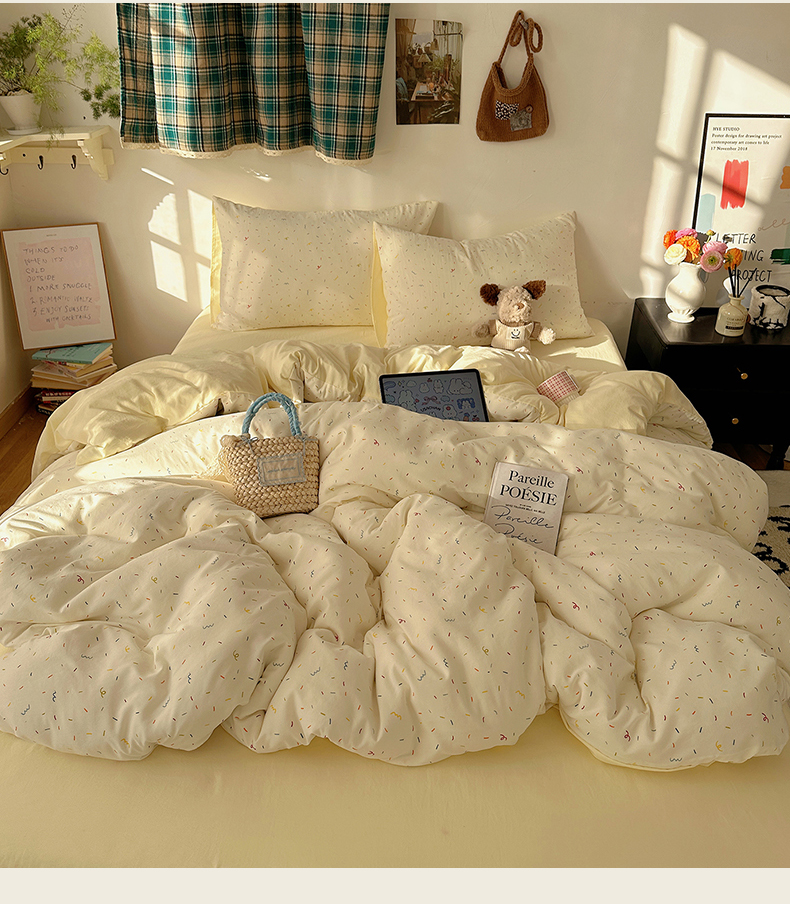 当前位置: 91家纺网 > 商品网购 > 床品套件 > 四件套 > 化纤普通四件套 > 初夏家纺 2026 新款水洗棉四件套A类卡通简约风床上三件套被套被罩【提供买家秀】 芝士碎