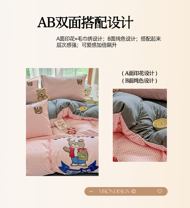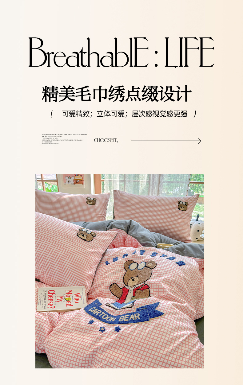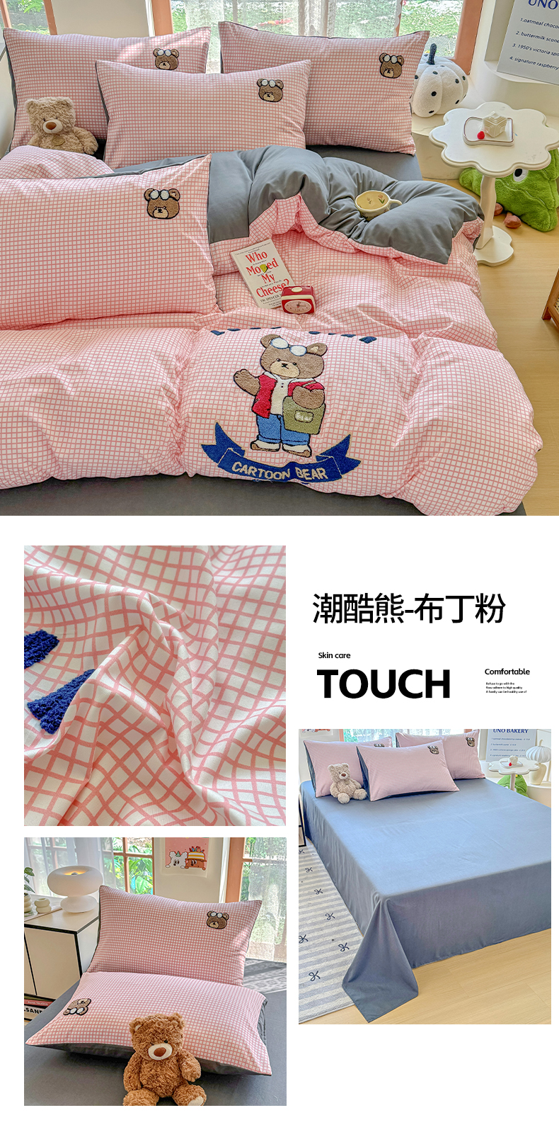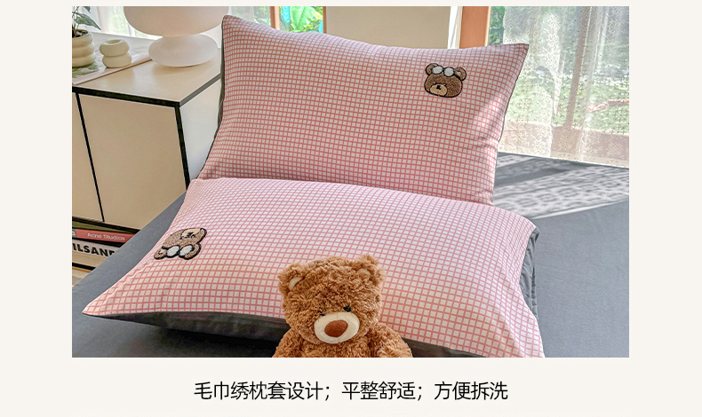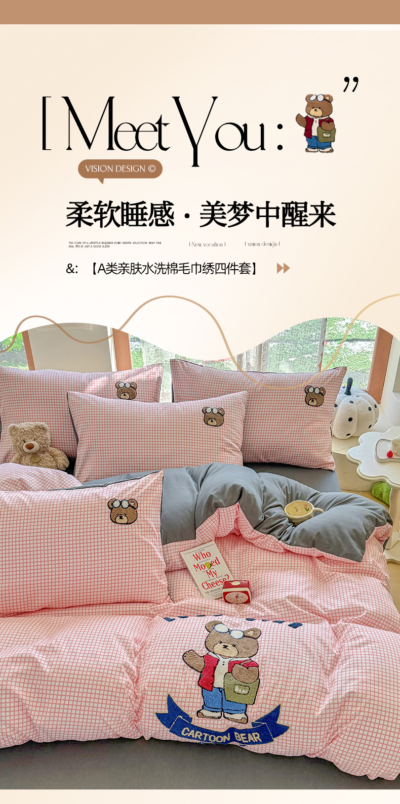 当前位置: 91家纺网 > 商品网购 > 床品套件 > 四件套 > 水洗棉四件套 > 优卡迪家纺馆 2026新款A类亲肤水洗棉毛巾绣系列四件套下载文件包含买家秀 潮酷熊-布丁粉