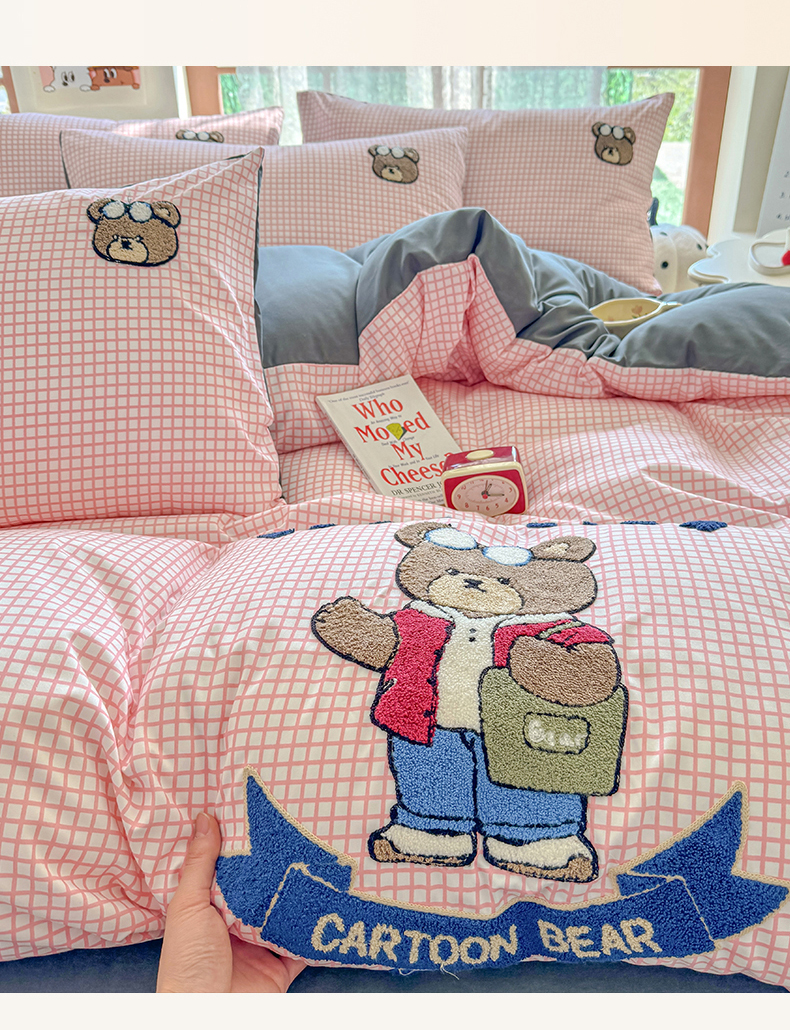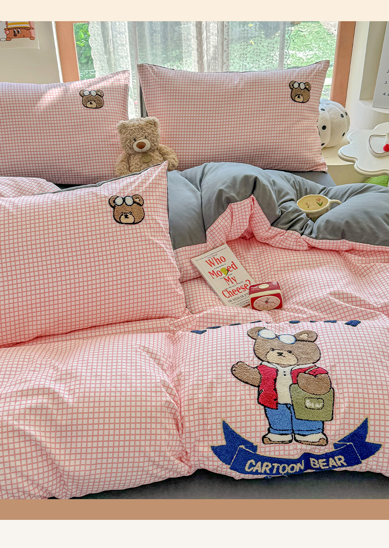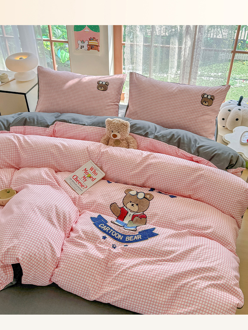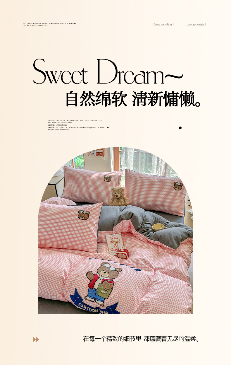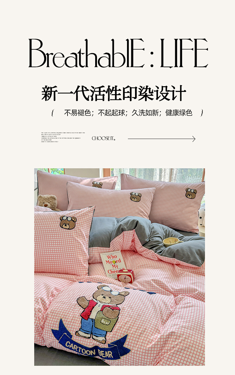 当前位置: 91家纺网 > 商品网购 > 床品套件 > 四件套 > 水洗棉四件套 > 优卡迪家纺馆 2026新款A类亲肤水洗棉毛巾绣系列四件套下载文件包含买家秀 潮酷熊-布丁粉