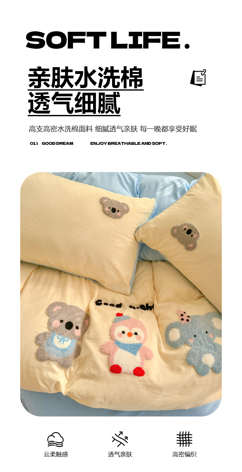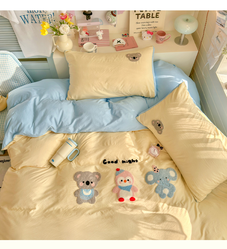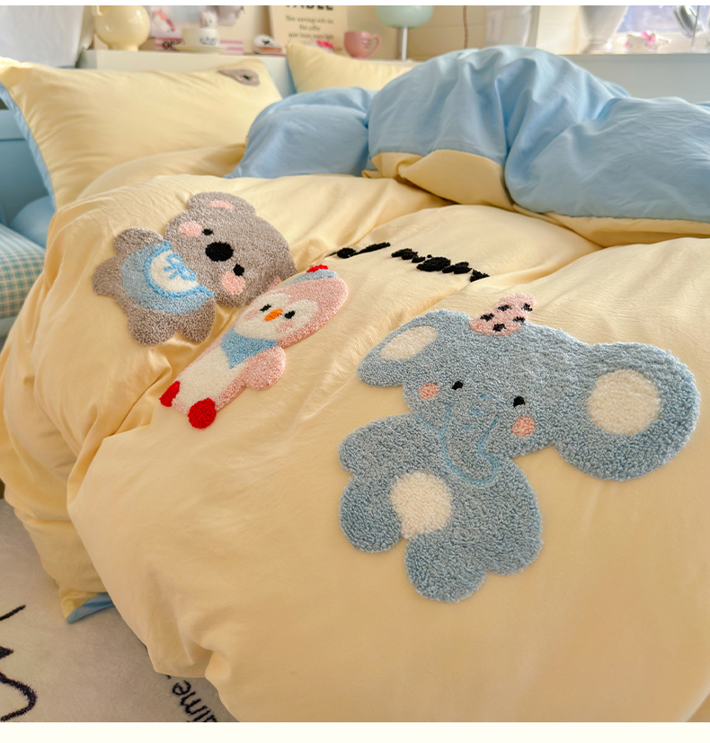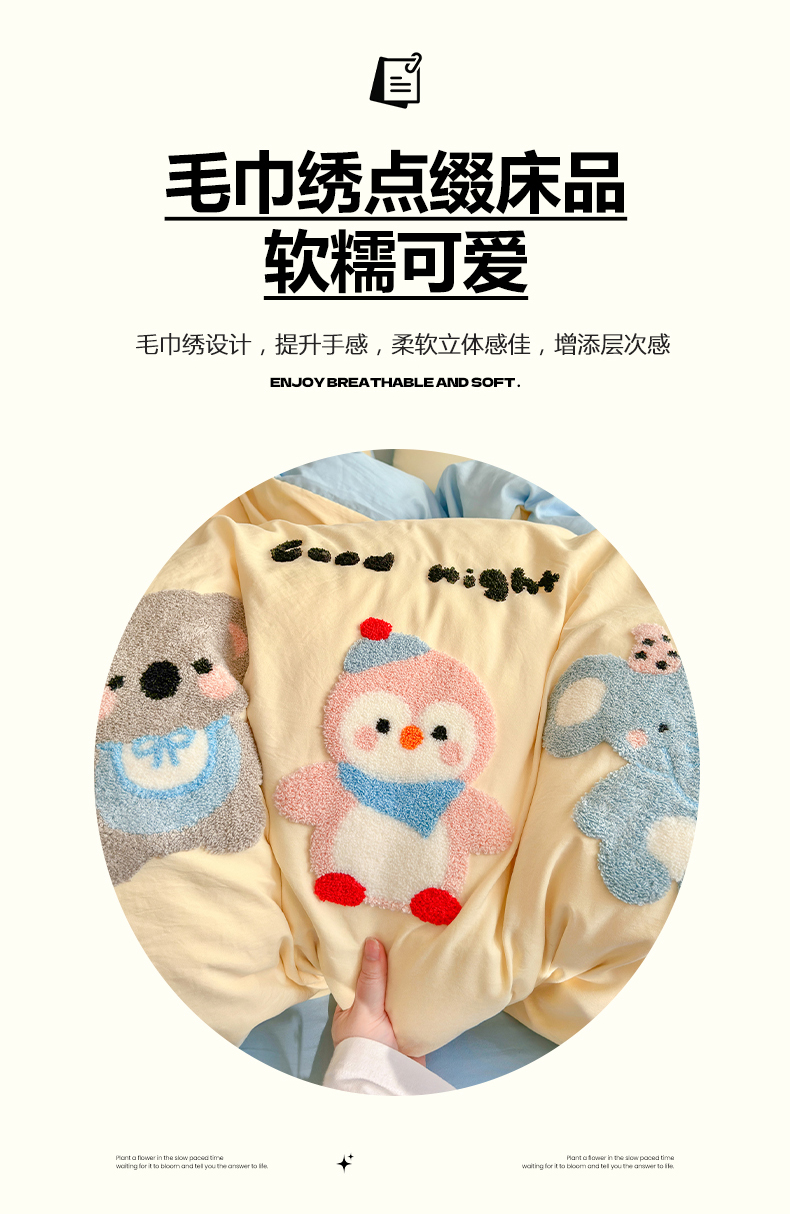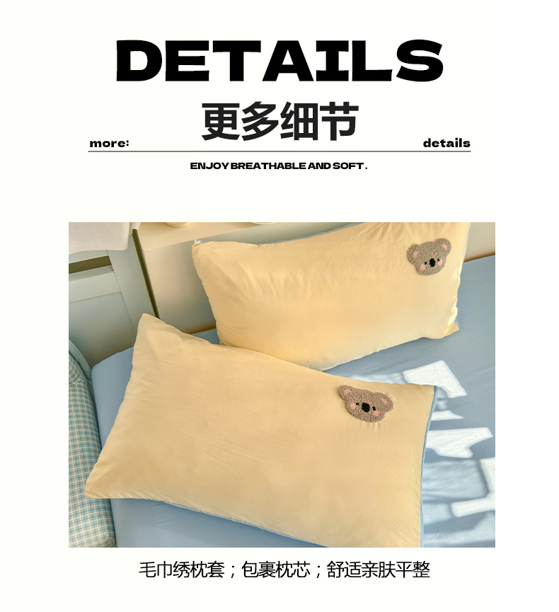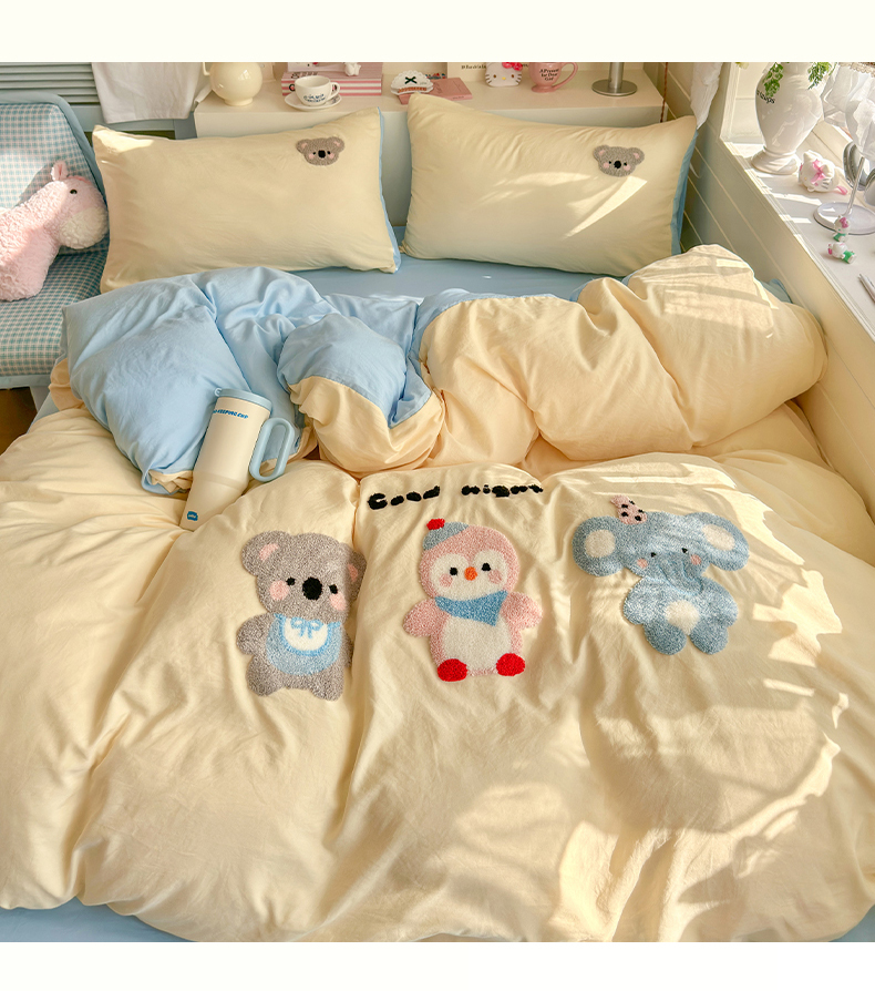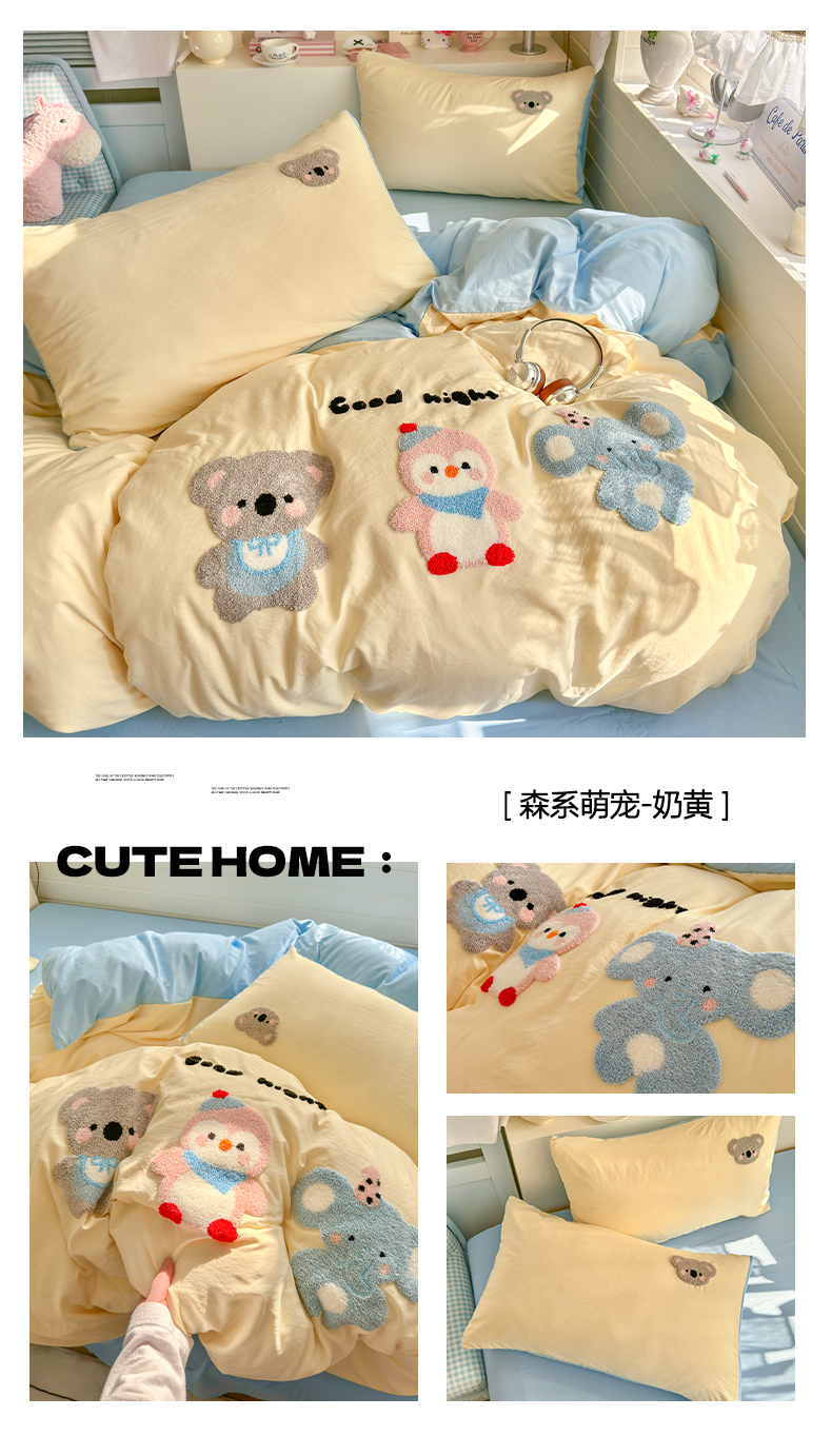 当前位置: 91家纺网 > 商品网购 > 床品套件 > 四件套 > 水洗棉四件套 > 优卡迪家纺馆 2026新款A类亲肤水洗棉毛巾绣系列四件套下载文件包含买家秀 森系萌宠-奶黄