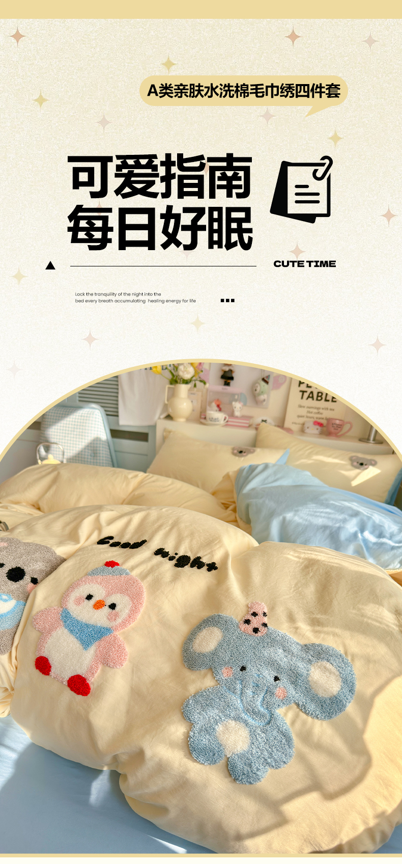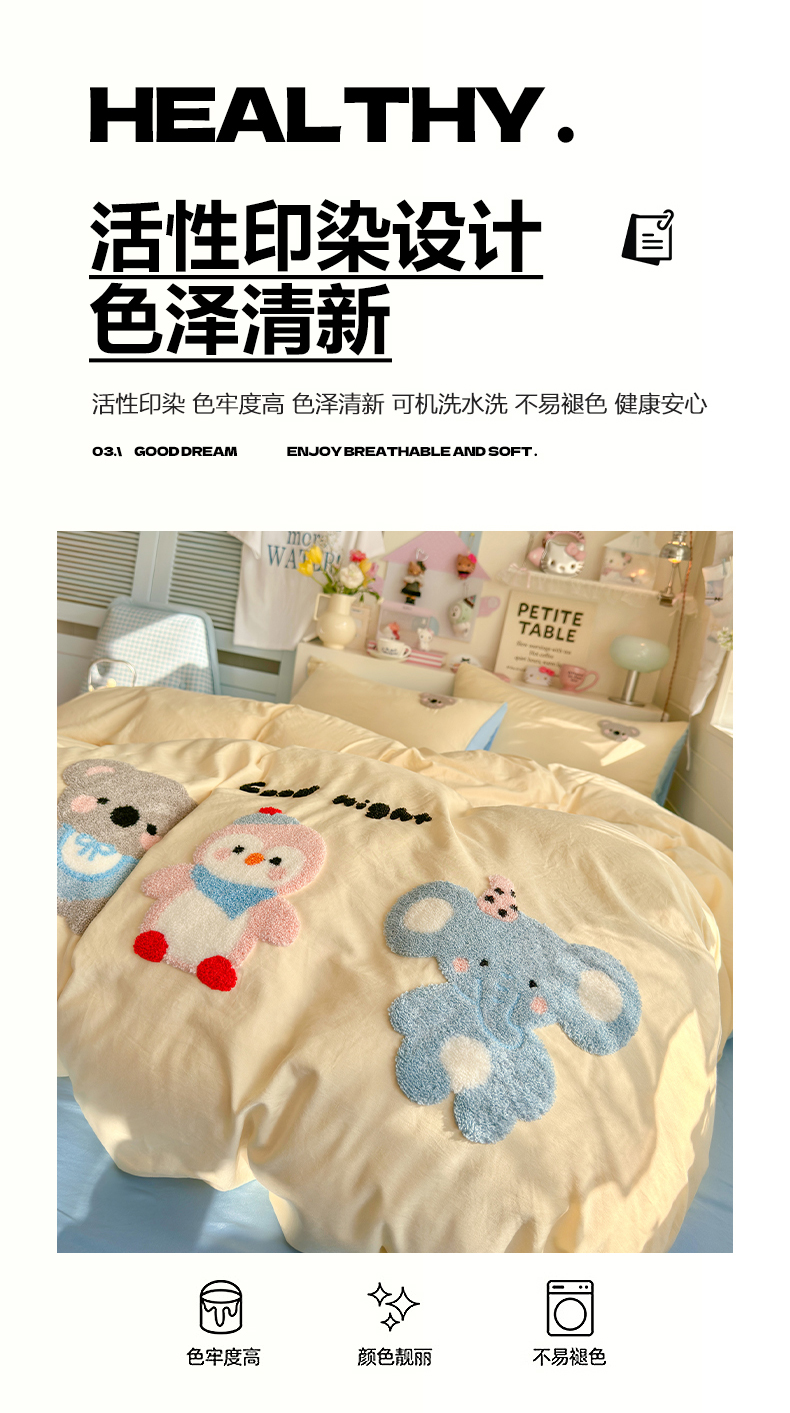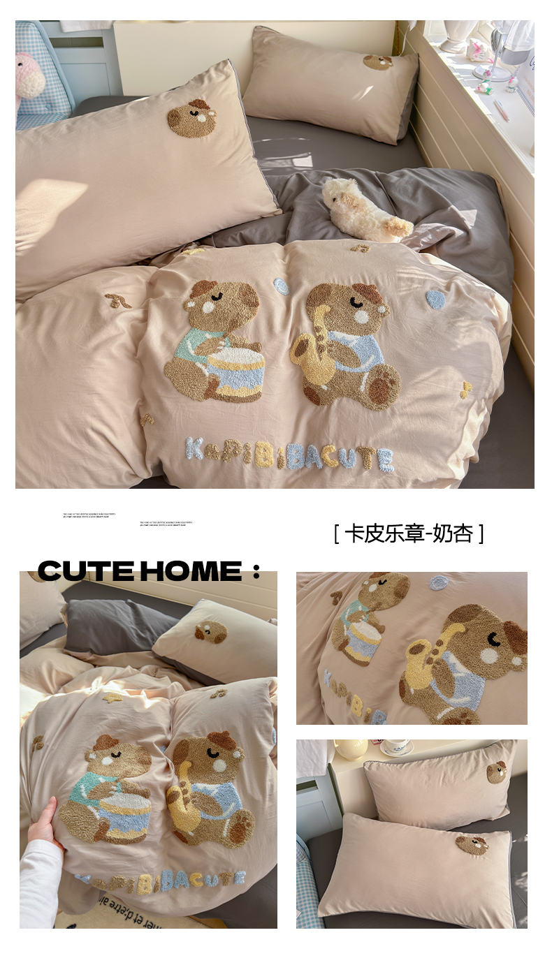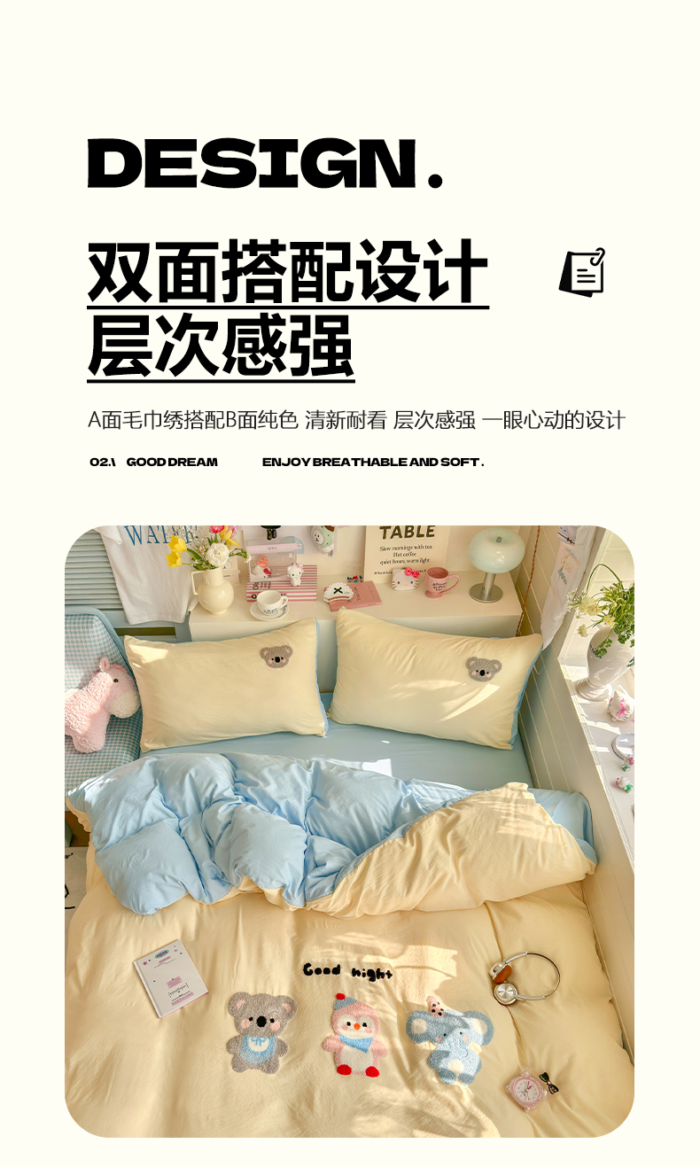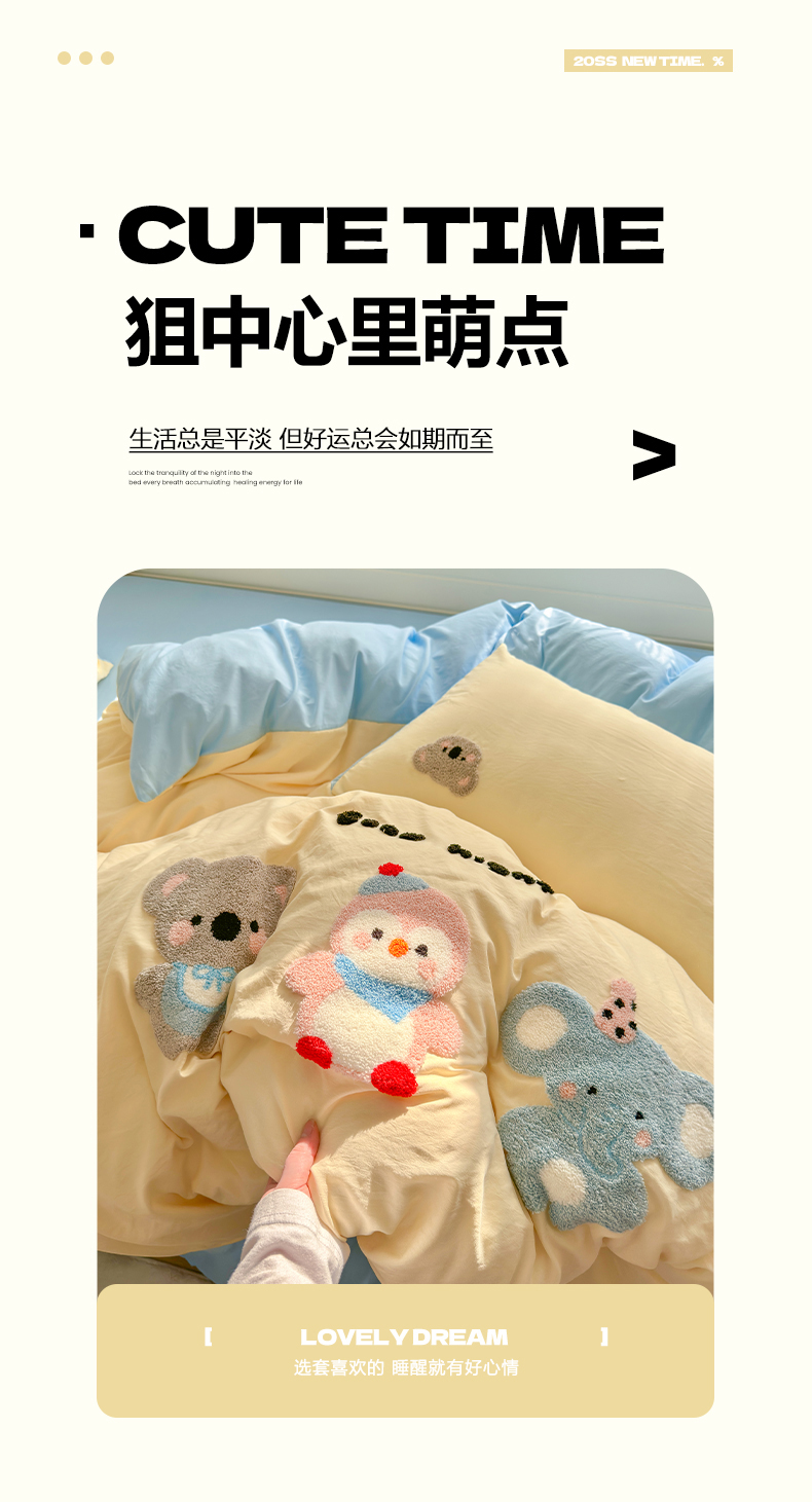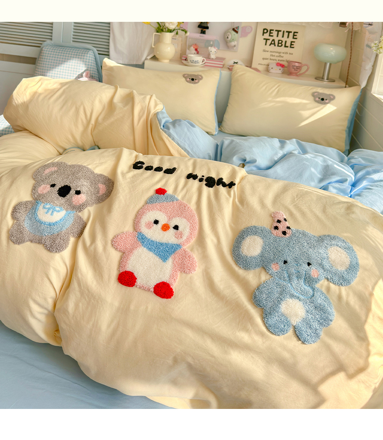 当前位置: 91家纺网 > 商品网购 > 床品套件 > 四件套 > 水洗棉四件套 > 优卡迪家纺馆 2026新款A类亲肤水洗棉毛巾绣系列四件套下载文件包含买家秀 森系萌宠-奶黄
