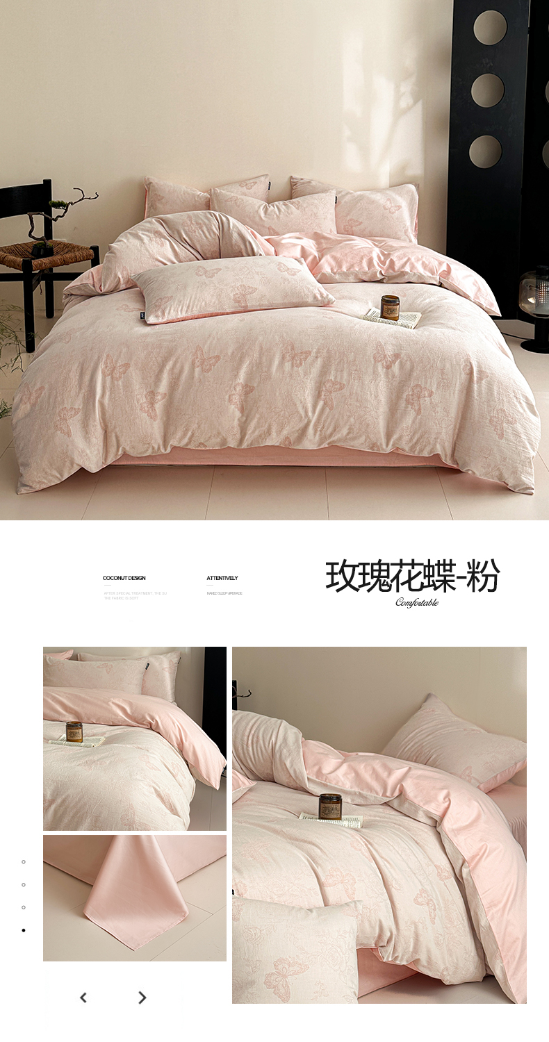 当前位置: 91家纺网 > 商品网购 > 床品套件 > 四件套 > 全棉普通四件套 > 涵宸家纺 2026新款全棉提花色坊系列四件套 墨棉-粉