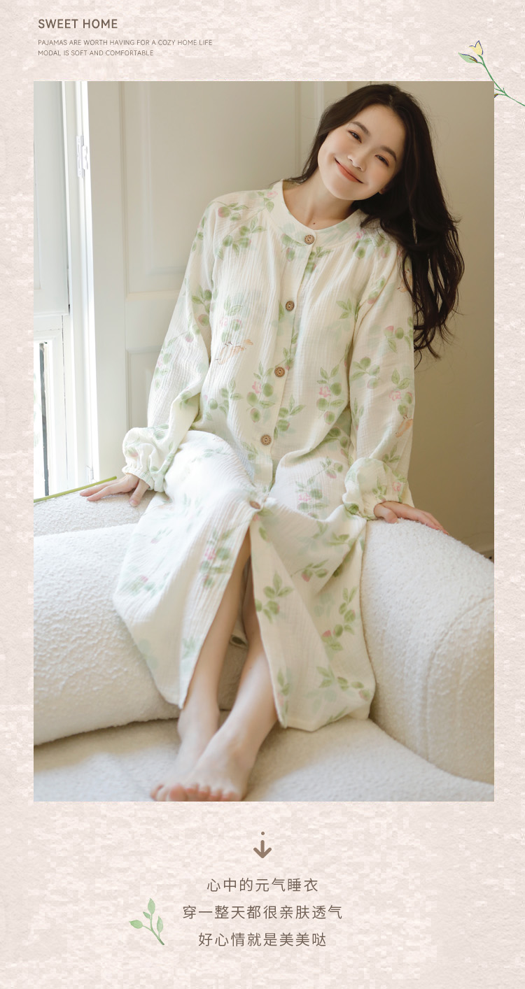 (总)洛兰沙家居馆 2026新款带胸垫纯棉纱布月子服待产裙春夏秋季孕妇哺乳睡裙喂奶医院进产房