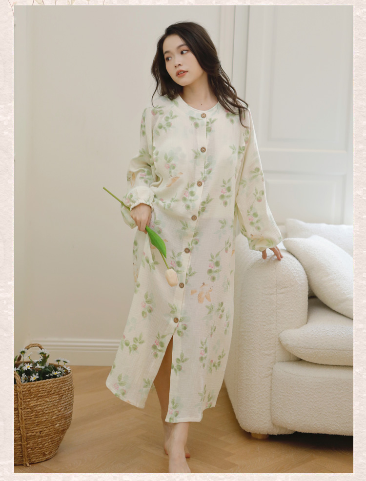 商品名称:(总)洛兰沙家居馆 2026新款带胸垫纯棉纱布月子服待产裙春夏秋季孕妇哺乳睡裙喂奶医院进产房