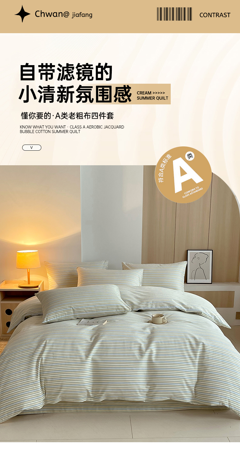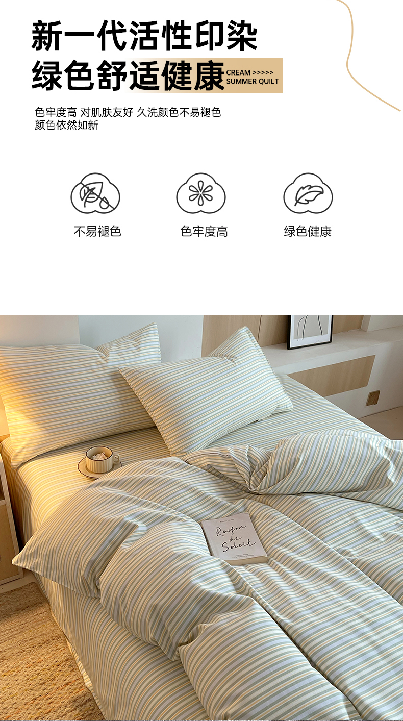 (总)春皖家纺 (提供买家秀)2026新款A类全棉针织凉感夏被,水蓝中条,烟蓝中条,中咖中条,棕红中条