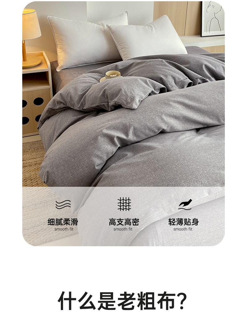 春皖家纺 2026高端直播热卖非遗A类全棉老粗布加厚床单款三件套-普通款单被套 墨攻