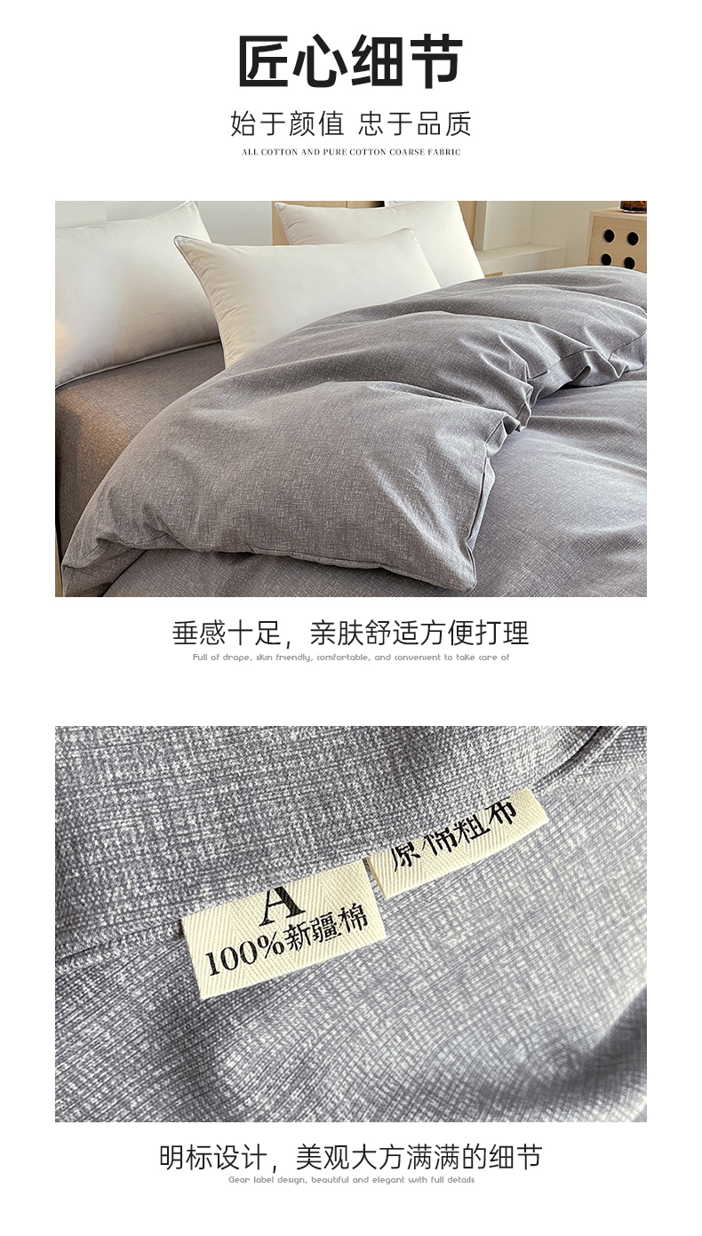 商品名称:春皖家纺 2026高端直播热卖非遗A类全棉老粗布加厚床单款三件套-普通款单被套 墨攻