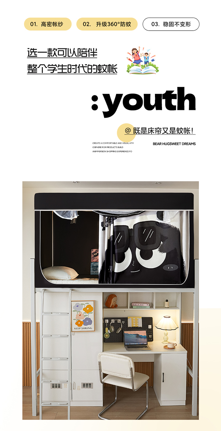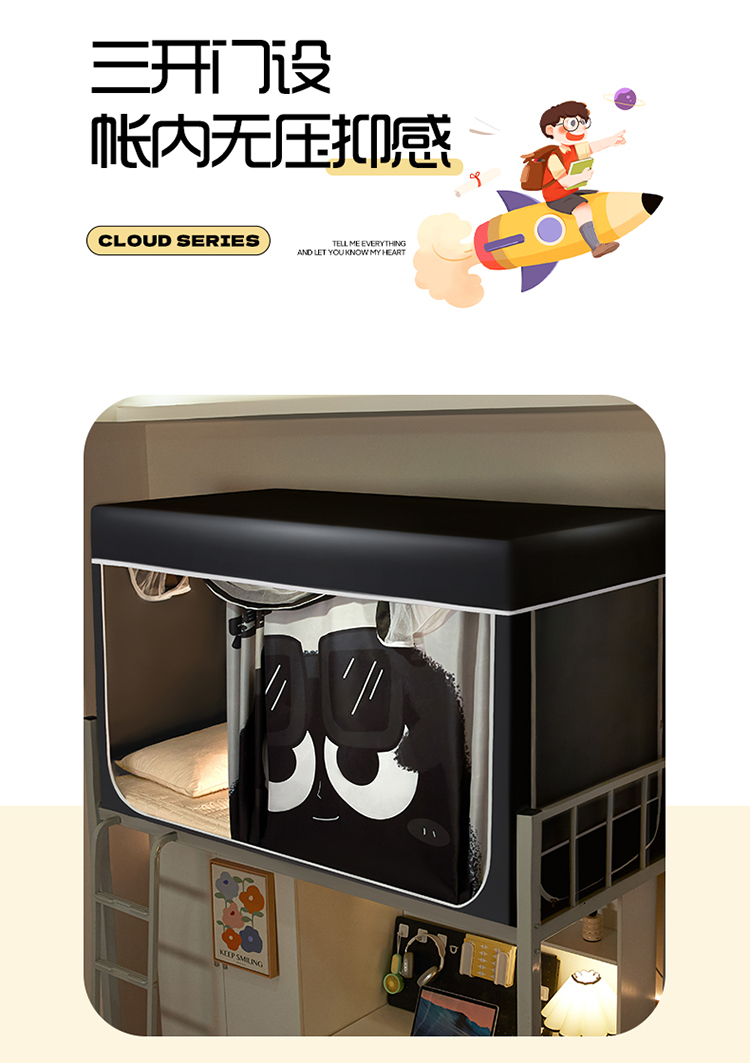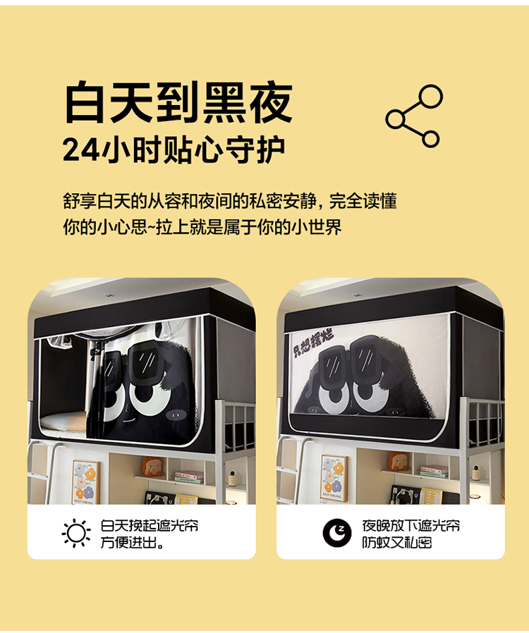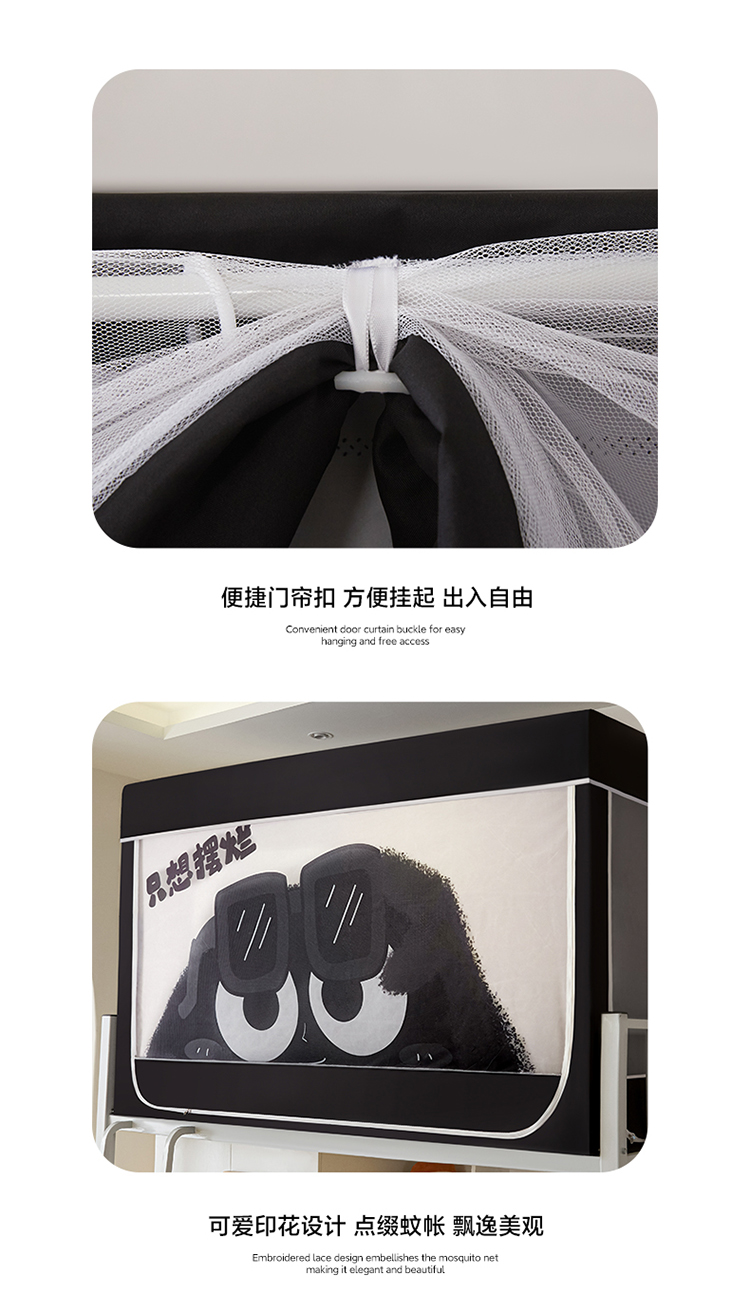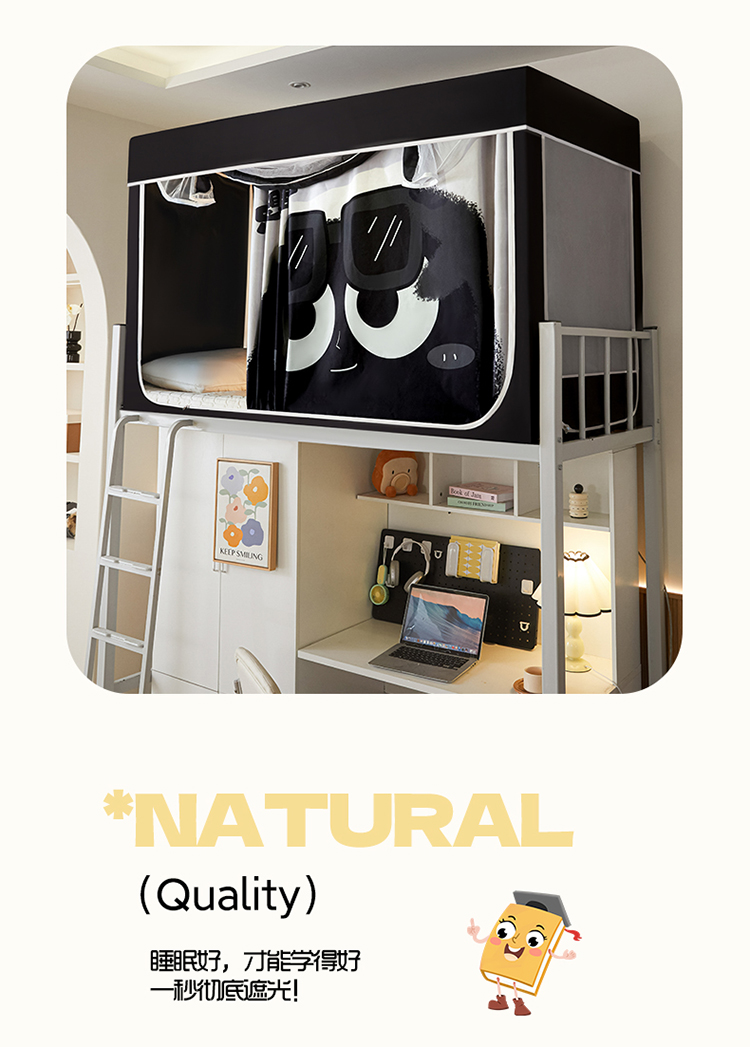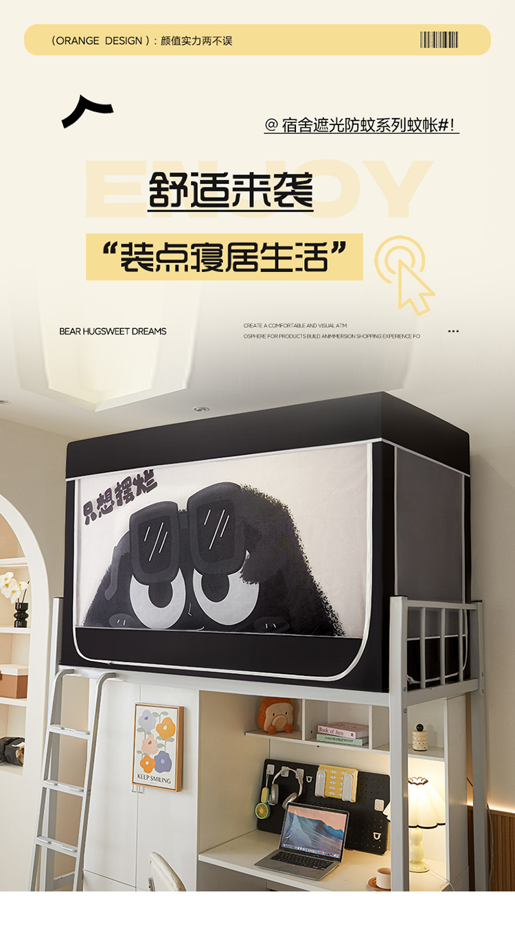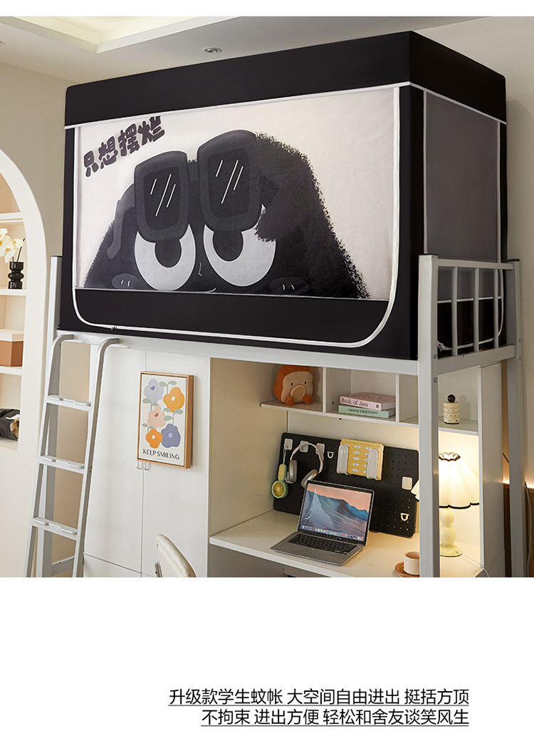 商品名称:初心家纺 2026新款99%五面遮光加厚涂层遮光大版数码印花带靠墙帘卡通学生蚊帐 摆烂芝麻球