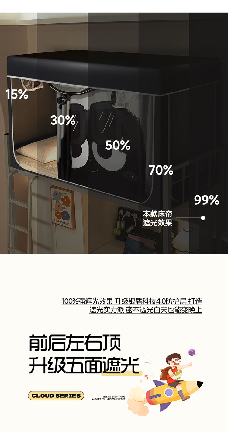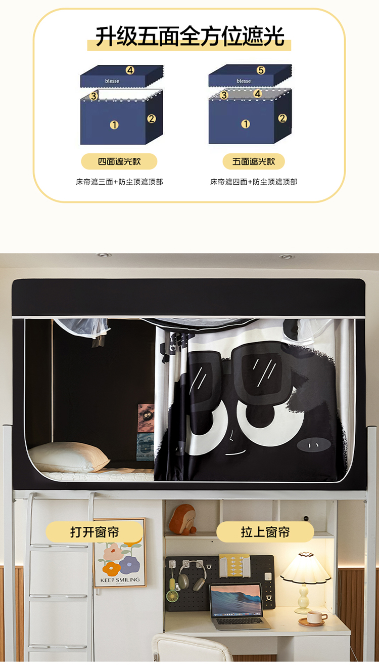 初心家纺 2026新款99%五面遮光加厚涂层遮光大版数码印花带靠墙帘卡通学生蚊帐 摆烂芝麻球